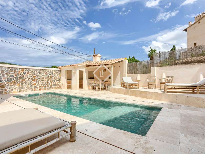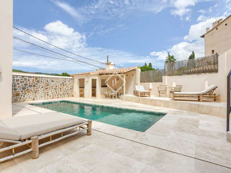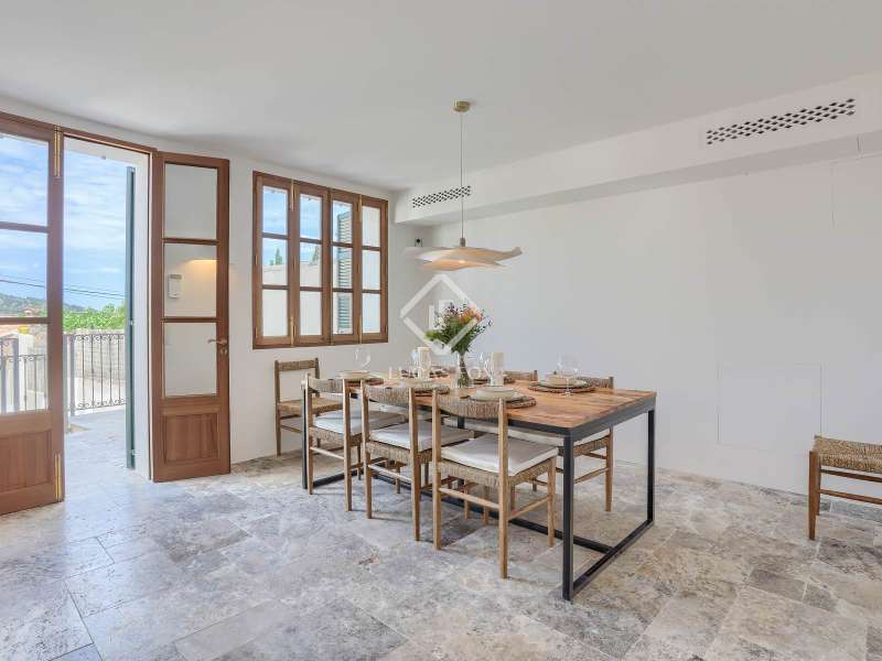 Tucked away on a quiet street just a short stroll from the heart of Sóller, this beautifully renovated property blends timeless charm with modern luxury. Original features like elegant hydraulic tiles and the traditional stair banister have been carefully preserved, while high-end materials and contemporary finishes bring a fresh, stylish feel. Step inside and be welcomed by a spacious entrance hall that flows into an open-plan kitchen with premium appliances, a bright dining area, and a cosy living room, both opening out to a lovely terrace that leads directly to the pool. It is the perfect setting for lazy summer afternoons or entertaining friends and family. Upstairs, we find three comfortable bedrooms, two with en-suite bathrooms and an additional guest bathroom. The top floor offers even more flexibility with another en-suite bedroom and a large multipurpose room that can easily serve as a second living room, studio, or extra bedroom. The lower level features a storage and machine room, plus a fantastic bonus space ideal for a home cinema, game room, or children’s play area, with direct access to the pool for endless summer fun. A separate building houses a private garage and a stylish guest suite with its own bathroom and sweeping views. Outside, the pool area invites you to relax with sun loungers, lush greenery, and a fully equipped summer kitchen with barbecue and a covered dining space. This is a rare opportunity to own a truly exceptional home in one of the most iconic villages of the Serra de Tramuntana, a UNESCO World Heritage Site. Whether looking for a tranquil holiday retreat or a year-round residence, this home offers space, comfort, and style in one of Mallorca’s most desirable locations. Please contact us today to schedule your private viewing.