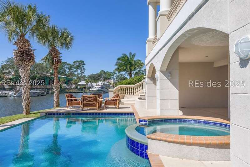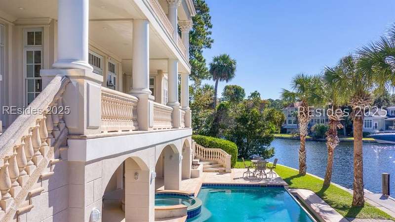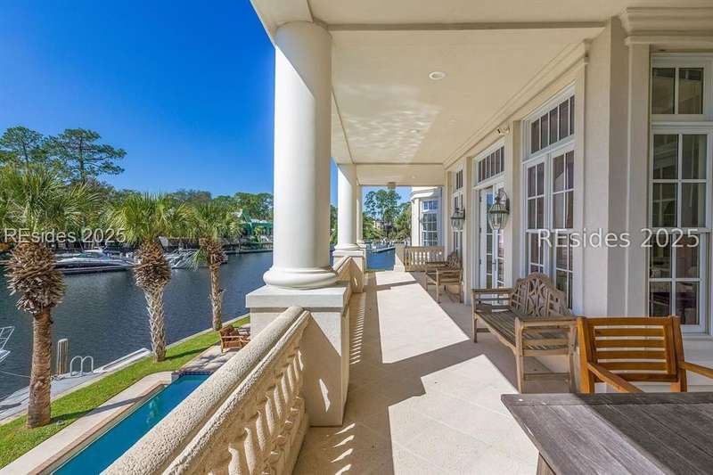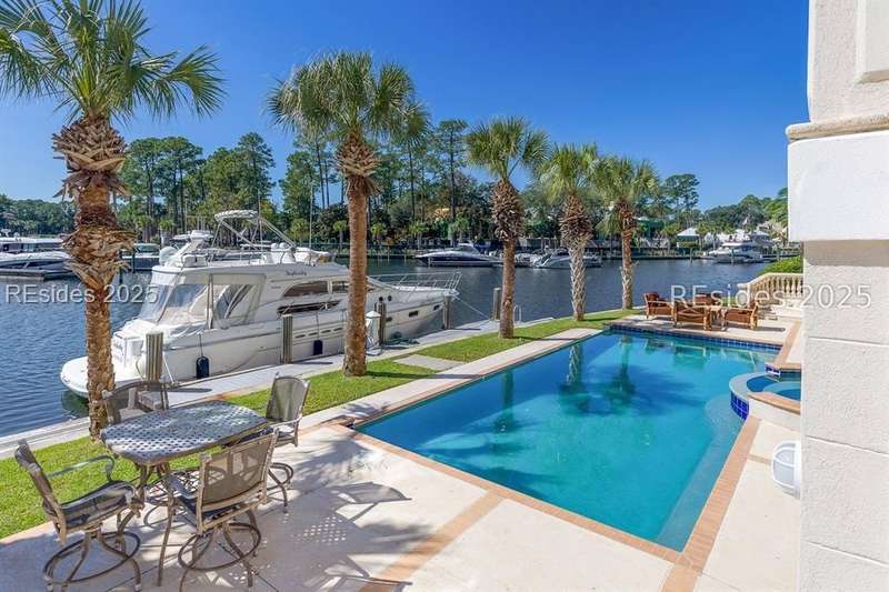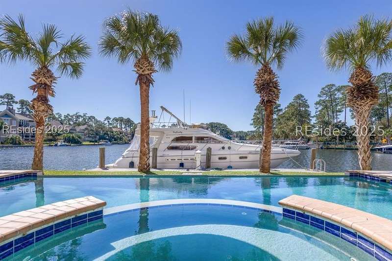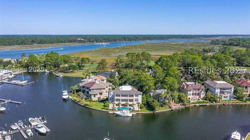 Experience stunning harbourfront living at 63 Bridgetown Road, where sweeping views of Wexford Harbour and the Clubhouse set the stage for breathtaking sunsets and elegant Lowcountry living. Two levels of rear decks, a 70' private dock, and a private pool with a covered lanai create an unmatched setting for outdoor entertaining and relaxation.Inside, the main level offers a spacious and thoughtfully designed layout perfect for both everyday comfort and hosting guests. The home features a formal living room, a cozy family room off of the spacious kitchen, a dedicated office, and a formal dining room. The main-level primary suite is exceptionally large, showcasing beautiful harbour views, dual walk-in closets, and luxurious finishes. A powder room, convenient laundry area, and easy elevator access complete this level, blending elegance with practicality.Upstairs, you'll find the second primary suite along with two additional ensuite bedrooms. A generous game room with a bar and full bath adds to the versatility of the space - it can easily serve as a fifth bedroom, media room, or entertainment area. A second laundry room adds convenience for upper-level living.On the ground level, a finished drive-through garage offers exceptional functionality with room for four or more vehicles-a rare feature in Wexford that combines practicality with luxury.As a Wexford resident, you'll enjoy world-class amenities including a private marina, championship golf, tennis and pickleball courts, croquet, clubhouse dining, a resort-style pool complex, and a vibrant year-round social calendar. Exciting improvements are underway - an expanded Clubhouse and a brand-new Harbour Center are scheduled for completion in April 2026, enhancing Wexford's already unmatched lifestyle experience.With timeless design, versatile living spaces, and spectacular sunset views, 63 Bridgetown Road stands as a truly remarkable waterfront residence in one of Hilton Head Island's most distinguished private communities.
