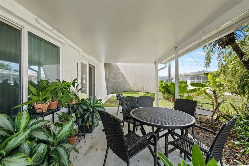 Located in Mainlands of Tamarac by the Gulf, this updated residence offers the comfort of a detached home with the ease of condominium living. The 2-bedroom, 2-bath layout includes 1,598 sq ft of bright, open living space with luxury vinyl flooring throughout and ceramic tile in wet areas. The renovated kitchen features stainless steel appliances, granite countertops, a subway tile backsplash, and ample cabinet storage. In addition to the living room and dining room, the rear enclosed Florida room offers flexible space for a TV room, home office, or alternate dining area. Enjoy both indoor and outdoor living with a covered front porch--an inviting space to greet neighbors--and a rear covered lanai that provides a private retreat for outdoor dining, entertaining, or relaxing. Additional highlights include an attached one-car garage with a dedicated laundry area, central air, and windows on all four sides for abundant natural light. Just down the block you will find the community pool and clubhouse which hosts ongoing social activities. The association fee covers exterior maintenance, roof, lawn care, and community amenities. Convenient to shopping, dining, golf, and Gulf beaches, this move-in ready home offers comfort, convenience, and an active adult lifestyle. Schedule a showing today to experience all this home has to offer.