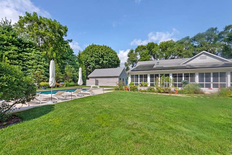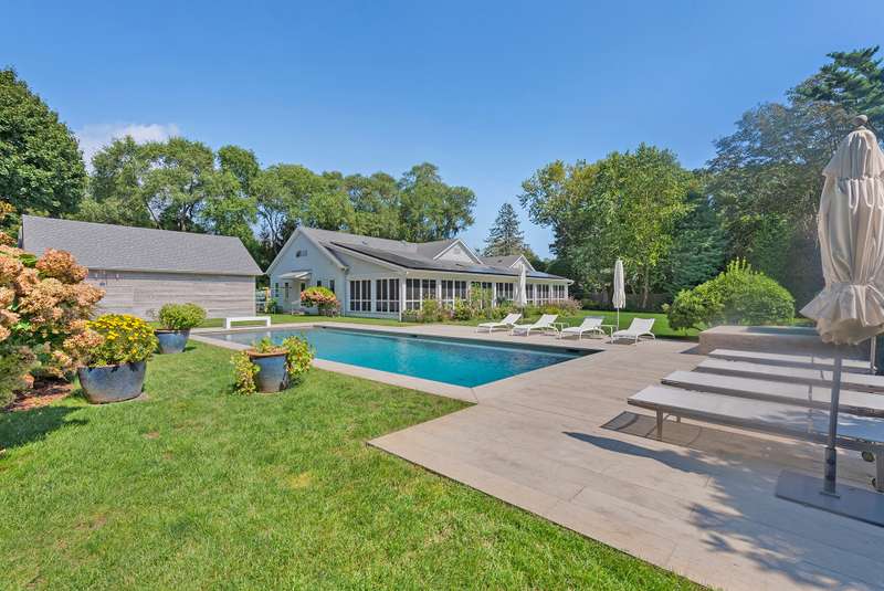 Stunning one-level home beautifully appointed with stellar art in the center of East Hampton Village set back from the road and down a long driveway. You can entertain outside on the large 1,000-square-foot screened-in porch with Italian-designed furniture in front of a gas fireplace. Outdoor gas and charcoal grills. Expansive magnificently landscaped backyard with 15 x 50 gas-heated gunite pool and 8 x 8 spa. Chef's kitchen with Viking stove, Sub Zero refrigerator, two dishwashers, and large center island opening to the living area with gas fireplace and dining area filled with natural light. Split floor plan with two bedrooms on one side and two bedrooms on the other, each with its own TV and ensuite baths. Additional room to be used as den or office. Sonos system, Apple TV, organic vegetable/herb garden (will be maintained by gardner), and composting vessel. Perfect summer rental in East Hampton Village, affording privacy but where everything is just moments away. AVAILABLE 9/19/25 THROUGH 10/5/25 FOR $22K. Listing ID: 898208