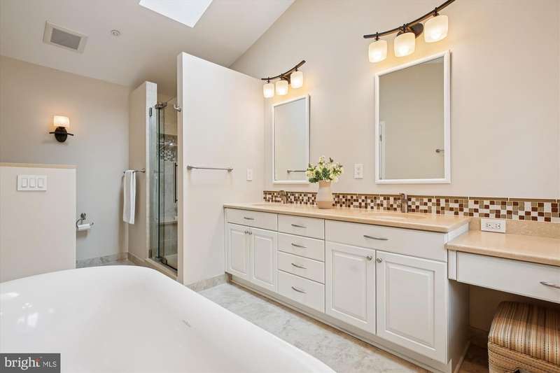 This is it! A Fallstone townhome with all the updates, meticulously maintained by conscientious owners. Almost all windows replaced with Pella Windows and a custom Weather Shield french door in the kitchen (2013-2019). The roof was replaced with designer shingles, along with enlarged gutters, downspouts and a Vellux skylight in the primary bath (2017). Outside, new shutters adorn the entrance (2025), and in the back, enjoy life from the Trex deck with maintenance-free Azek trim with built-in flower boxes (2018) and enhanced landscaping for beauty and privacy. The inside is freshly painted in Benjamin Moore Maritime White, for that perfect neutral palate. The foyer opens to the living and dining spaces, and a powder room. Next, you'll enjoy the thoughtfully-designed gourmet kitchen, with an island, tons of cabinet space, and room for an eating space. Upstairs, the primary suite has a spacious walk-in closet, and a spectacular renovated primary bath with dual vanities, a custom shower and a free-standing Victoria & Albert soaking tub. You'll also find two more bedrooms and a hall bath. On the lower level, you'll find a full bath, the laundry room, garage access, and a big, walk-out space with a fireplace to name your own adventure! Playroom? Office? Guest Suite? All this, more updates too numerous to list here, and the convenience of the Fallstone location, with Whole Foods, Starbucks, restaurants, all close by, along with Red Line Metro, the Bethesda Trolley trail, and major commuter routes. This one is a must see!