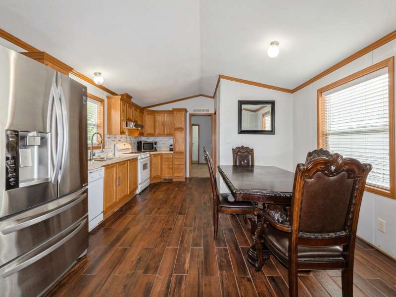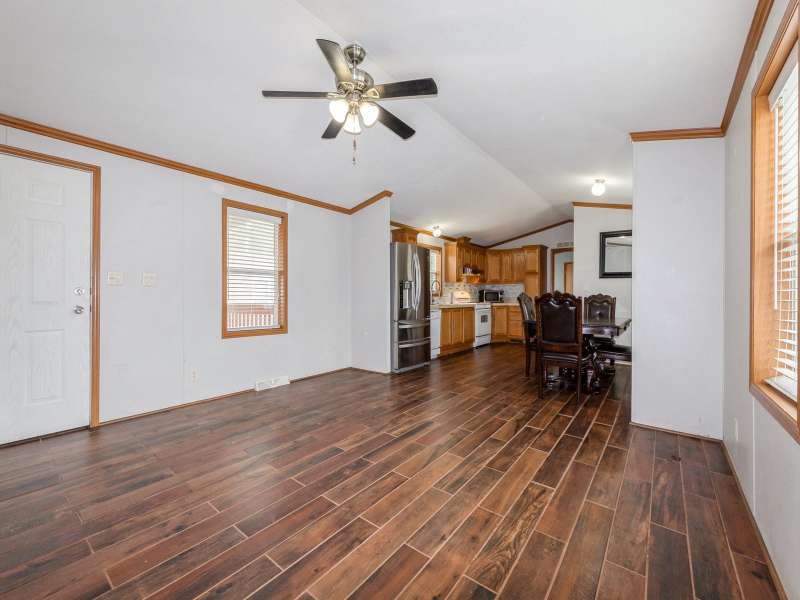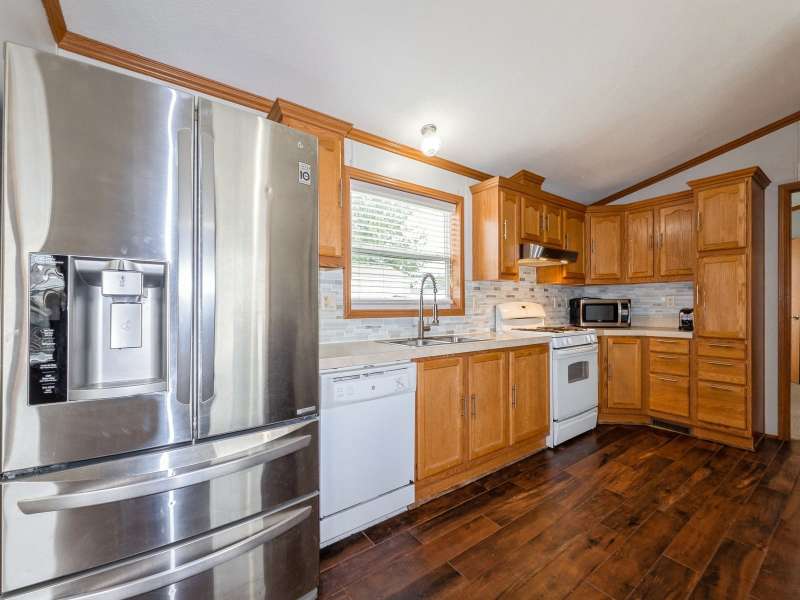 This home offers comfortable & affordable living. It has 3 bedrooms, 2-baths with an open concept design. The floors are tiled in the main living areas which looks great & is easy to maintain. The kitchen has been upgraded including newer appliances. Other features include a covered porch & a large lot and a garage can be added. This home is near all of the Waukee amenities; shopping, dining, schools, parks, & the Warrior Bike Trail. Parks lot rent is $772/ month