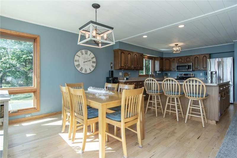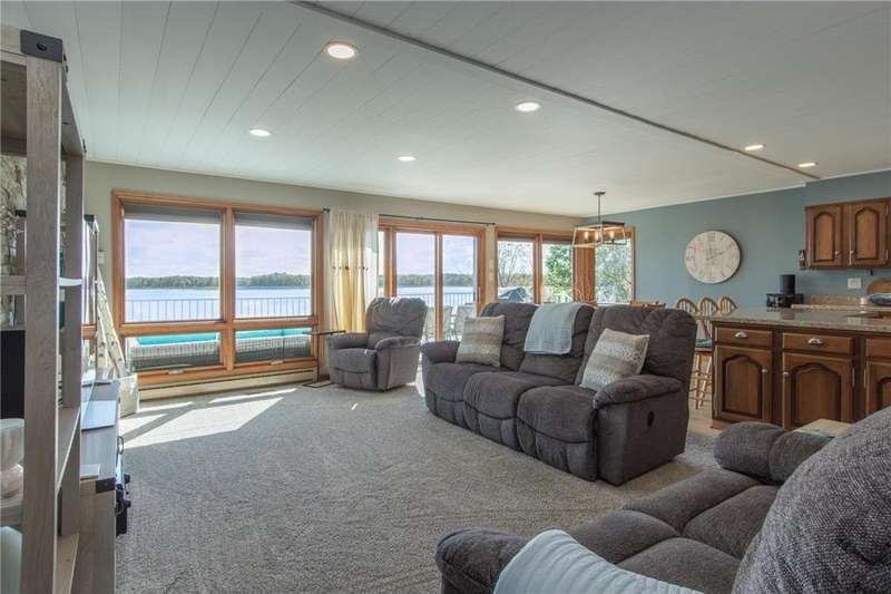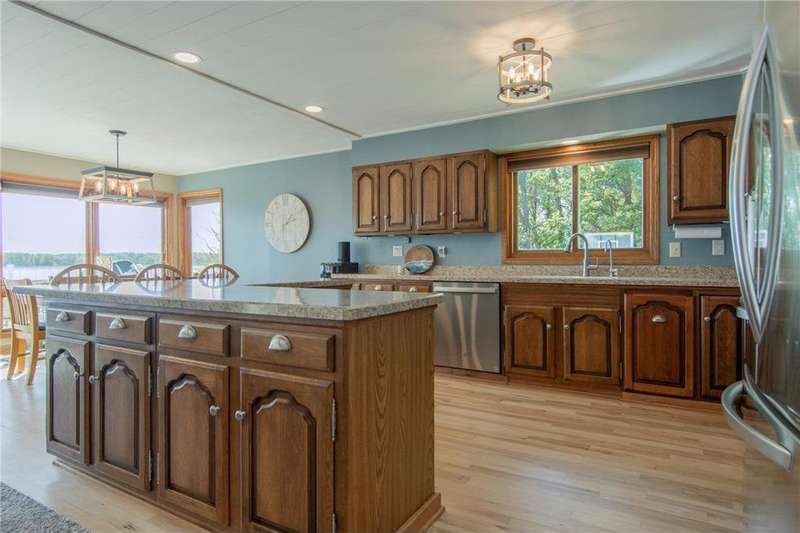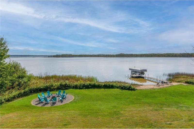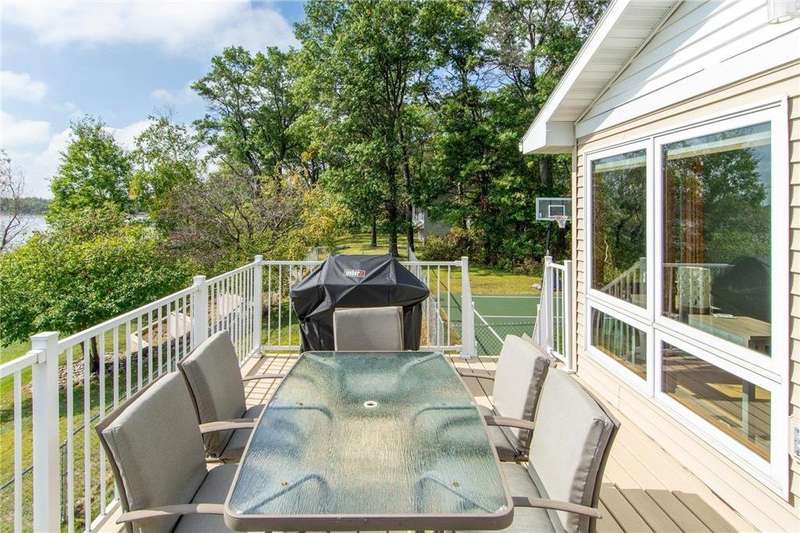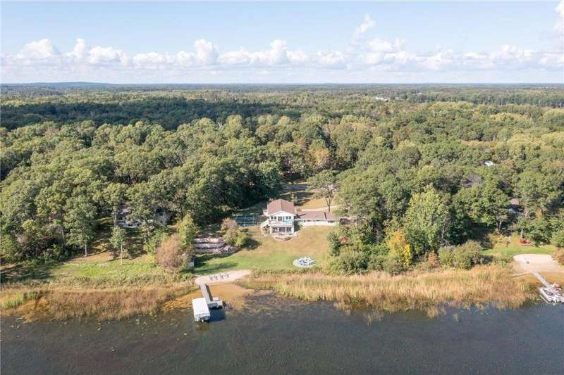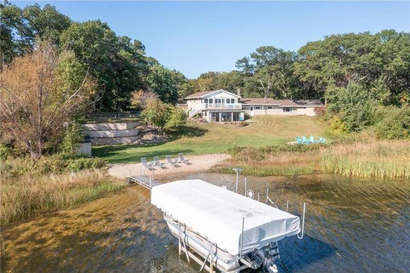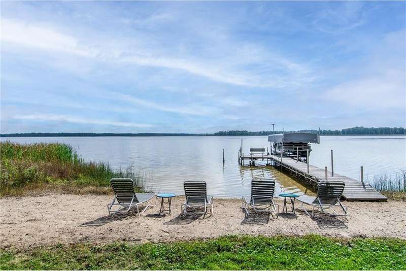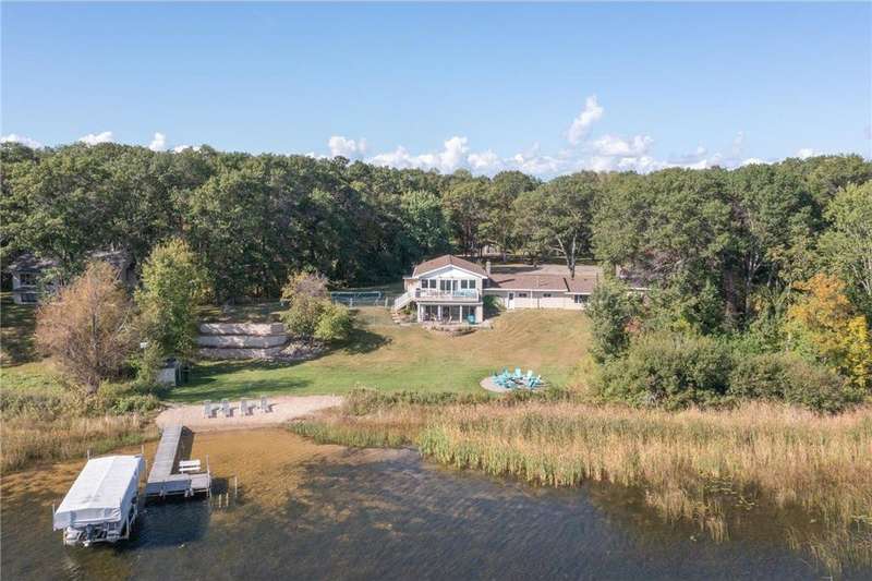 Welcome to your dream lake home on Red Sand Lake – a private paradise offering 242 feet of pristine, sandy lake frontage and 1.38 acres of beautifully maintained land. Wake up to breathtaking sunrises and sweeping lake views in this spacious 5-bedroom, 3-bath home, thoughtfully updated and loaded with amenities for year-round enjoyment. Exterior Features: Crystal-clear lake frontage with a sandy bottom – ideal for swimming and water sports, Outdoor pickleball/sport court for active living, Expansive deck spaces perfect for entertaining and relaxing, Firepit area with new rock, tarp, and edging (2021), 2-car heated/insulated attached garage + 2-car detached garage, New roof (2023) and fresh exterior paint (2021), Gutter guards installed (2023) Interior Highlights: Open-concept main level with lake views from nearly every room, Large living room overlooking the water, Gourmet kitchen with stainless steel appliances, center island, refinished wood floors, and updated ceiling (2023), Sun-filled dining and living spaces with many windows facing the lake, Primary suite with ¾ bath that has heated floors and ample closet space, Two additional main-level bedrooms and a full bath, Spacious mudroom/entry with added closet space. Lower level features:, Cozy family room, Lake-facing sunroom, Rec/game room, Sauna, Two additional bedrooms and a ¾ bath with heated tile floors, Dedicated laundry room, Recent Improvements (Since 2019): Interior: All walls and ceilings painted, New carpet throughout (2022), Anderson Renewal windows (west side), Ceiling fans in entry and all upper bedrooms, Updated lighting throughout, Kitchen & Main Living Areas: Suspended ceilings removed, New dishwasher (2023), Nickel gap ceiling added (2023). Bathrooms: Upstairs & basement bathrooms fully updated (vanities, mirrors, lighting, fixtures, ceilings, etc.) , Master shower door and faucets replaced (2020), Bonus/Game Room: Fully painted and trimmed, New lighting and window treatments, Ceiling and venting updated (2023). Laundry Room: Ceiling removed, cabinets painted, new lighting and hardware. Mechanical: New sump pump and wall drainage (2025), Grinder pump replaced (2023) Entry: New LVT flooring (2023). Whether you're looking for a family home, lakefront retreat, or entertainer’s paradise, this beautifully updated property on Red Sand Lake has it all — space, style, privacy, and recreation. Schedule your private showing today and experience lakeside living at its finest!