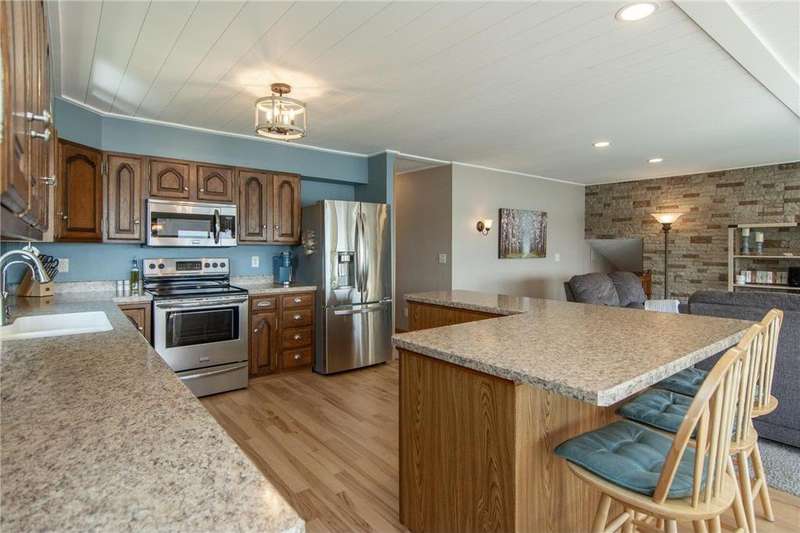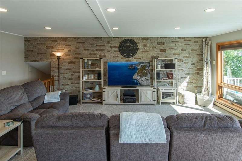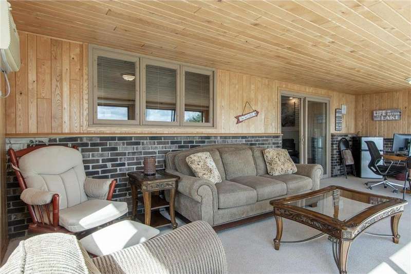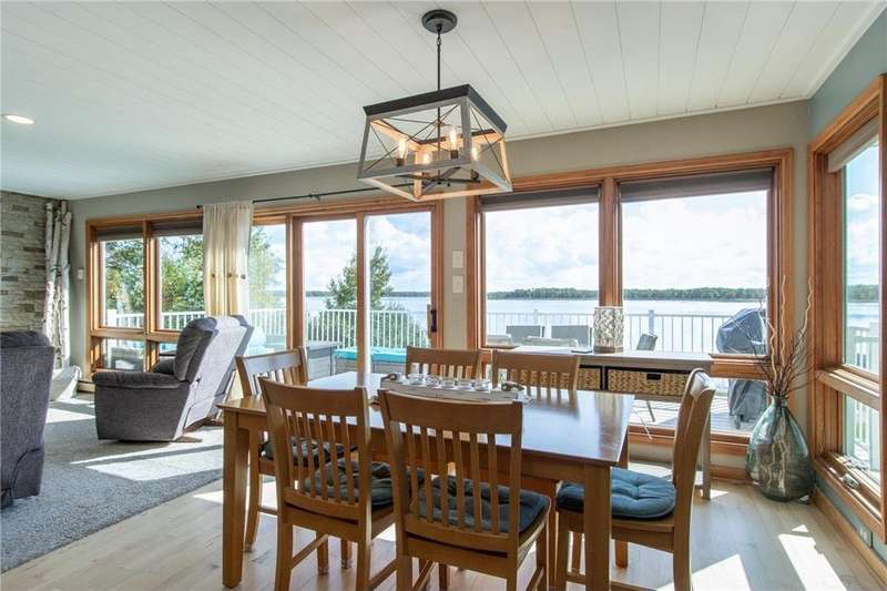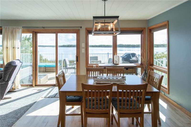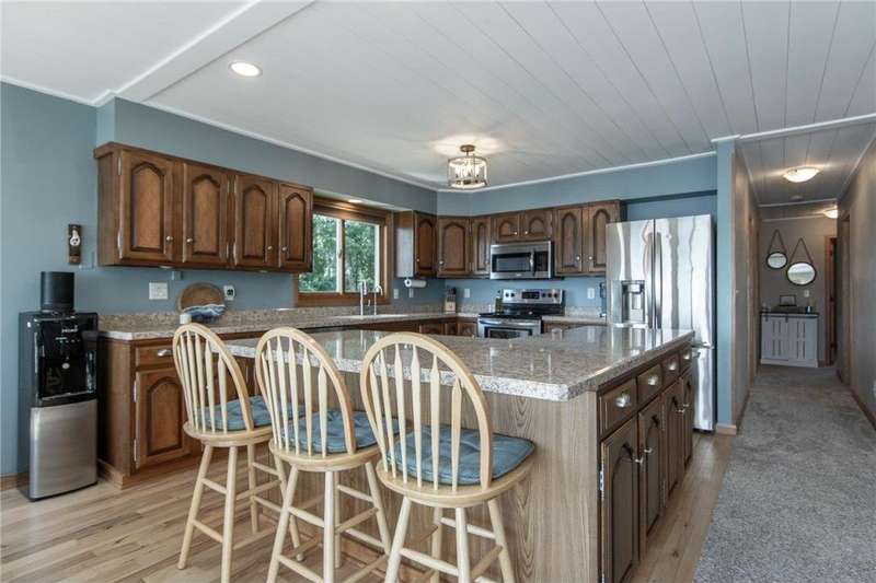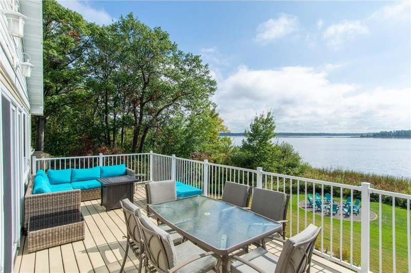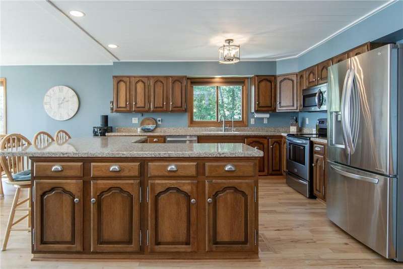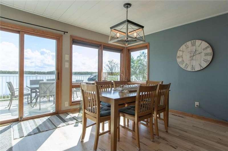 Welcome to your dream lake home on Red Sand Lake – a private paradise offering 242 feet of pristine, sandy lake frontage and 1.38 acres of beautifully maintained land. Wake up to breathtaking sunrises and sweeping lake views in this spacious 5-bedroom, 3-bath home, thoughtfully updated and loaded with amenities for year-round enjoyment. Exterior Features: Crystal-clear lake frontage with a sandy bottom – ideal for swimming and water sports, Outdoor pickleball/sport court for active living, Expansive deck spaces perfect for entertaining and relaxing, Firepit area with new rock, tarp, and edging (2021), 2-car heated/insulated attached garage + 2-car detached garage, New roof (2023) and fresh exterior paint (2021), Gutter guards installed (2023) Interior Highlights: Open-concept main level with lake views from nearly every room, Large living room overlooking the water, Gourmet kitchen with stainless steel appliances, center island, refinished wood floors, and updated ceiling (2023), Sun-filled dining and living spaces with many windows facing the lake, Primary suite with ¾ bath that has heated floors and ample closet space, Two additional main-level bedrooms and a full bath, Spacious mudroom/entry with added closet space. Lower level features:, Cozy family room, Lake-facing sunroom, Rec/game room, Sauna, Two additional bedrooms and a ¾ bath with heated tile floors, Dedicated laundry room, Recent Improvements (Since 2019): Interior: All walls and ceilings painted, New carpet throughout (2022), Anderson Renewal windows (west side), Ceiling fans in entry and all upper bedrooms, Updated lighting throughout, Kitchen & Main Living Areas: Suspended ceilings removed, New dishwasher (2023), Nickel gap ceiling added (2023). Bathrooms: Upstairs & basement bathrooms fully updated (vanities, mirrors, lighting, fixtures, ceilings, etc.) , Master shower door and faucets replaced (2020), Bonus/Game Room: Fully painted and trimmed, New lighting and window treatments, Ceiling and venting updated (2023). Laundry Room: Ceiling removed, cabinets painted, new lighting and hardware. Mechanical: New sump pump and wall drainage (2025), Grinder pump replaced (2023) Entry: New LVT flooring (2023). Whether you're looking for a family home, lakefront retreat, or entertainer’s paradise, this beautifully updated property on Red Sand Lake has it all — space, style, privacy, and recreation. Schedule your private showing today and experience lakeside living at its finest!