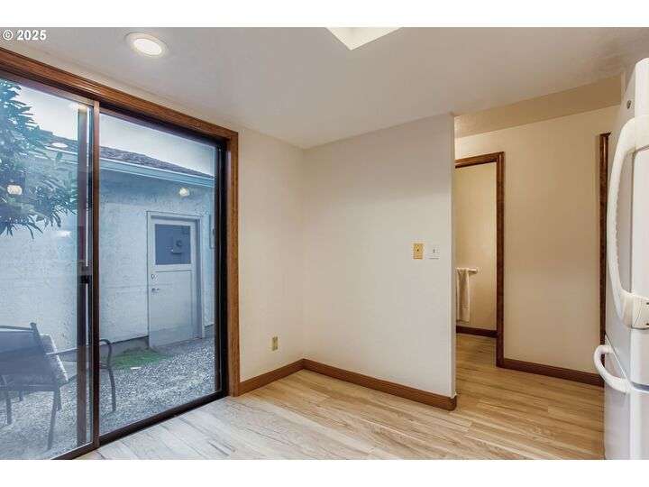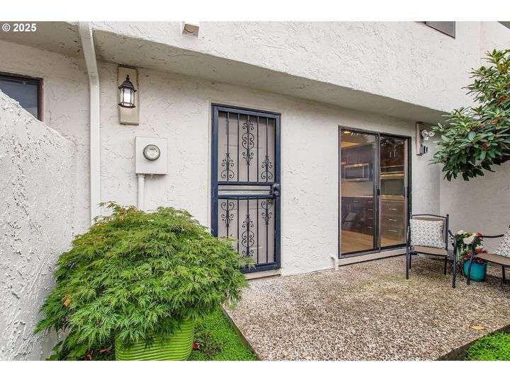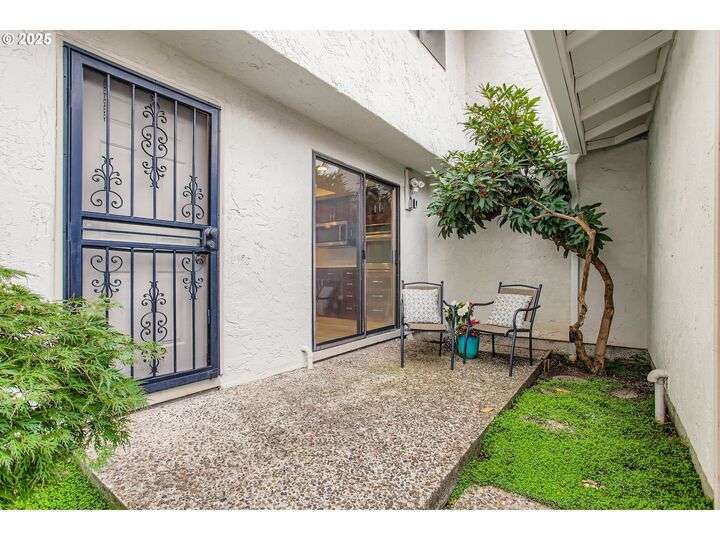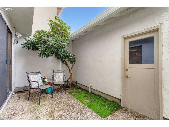 Charming Mediterranean-style condo featuring two private courtyard patios that evoke the feel of a European villa. The enclosed backyard is a lush retreat with a Japanese Maple and a Redbud Forest Pansy tree creating a green oasis. Inside, the spacious living and dining area is filled with natural light from large picture windows and warmed by a cozy gas fireplace. The kitchen, remodeled in 2018, offers a newer cooktop, oven, dishwasher, and garbage disposal. Upstairs, both bedrooms include beautifully remodeled bathrooms, complemented by new carpet and fresh interior paint throughout. Additional highlights include a 1-car garage and a new roof and gutters in 2024. HOA amenities cover water, sewer, garbage, clubhouse access, exterior maintenance, beautifully maintained grounds, and ample guest parking.