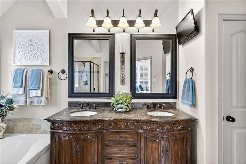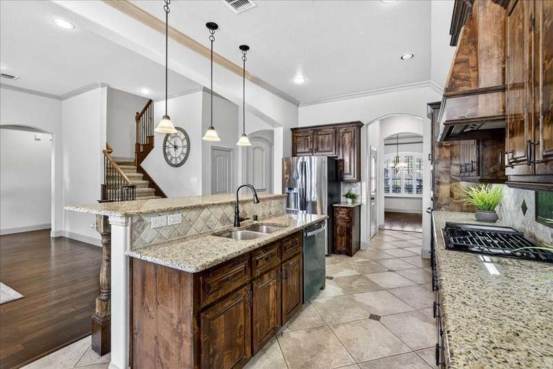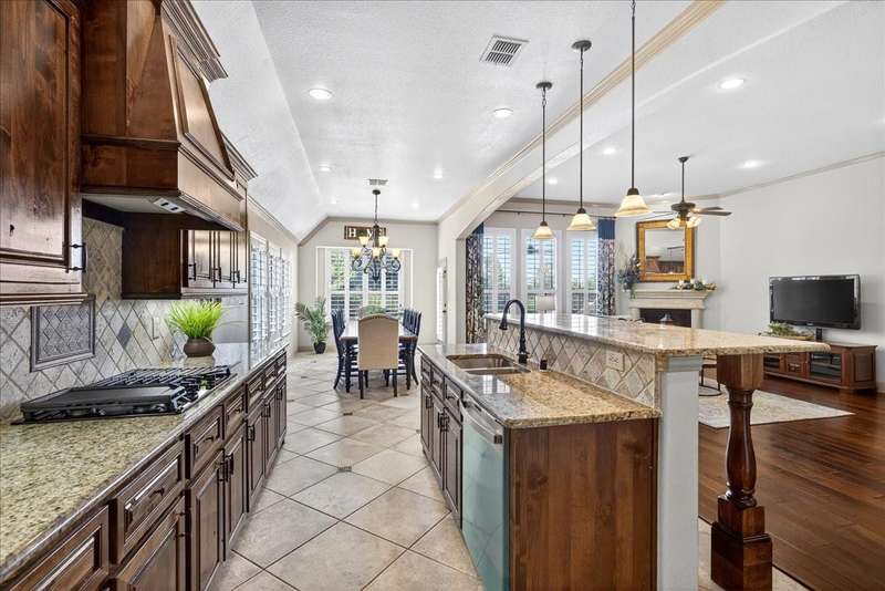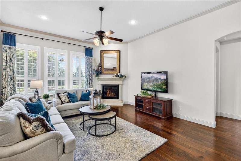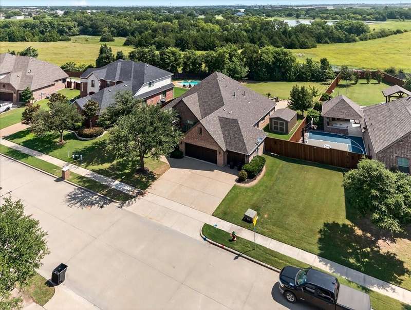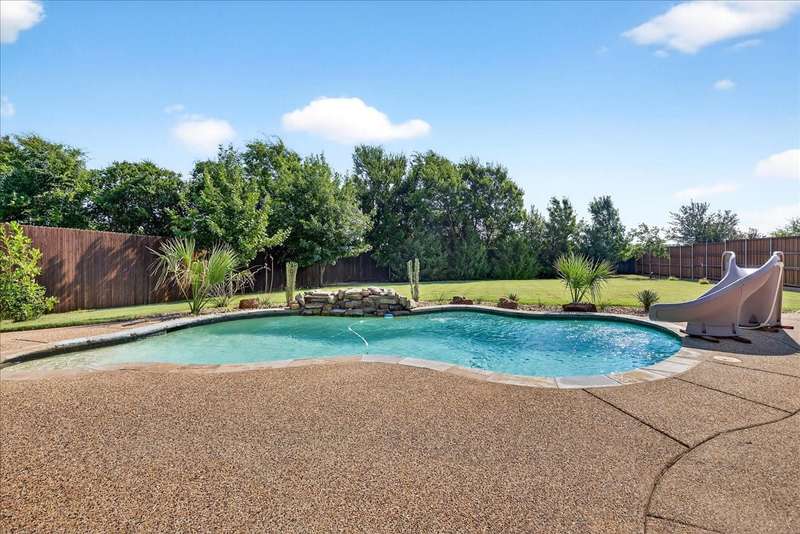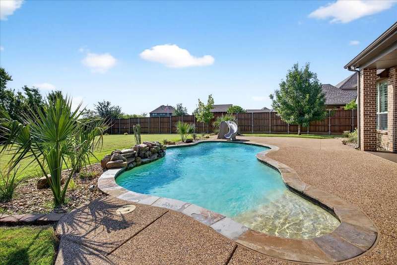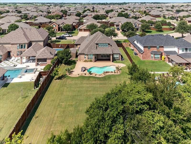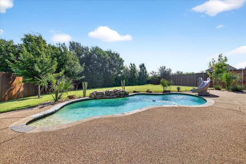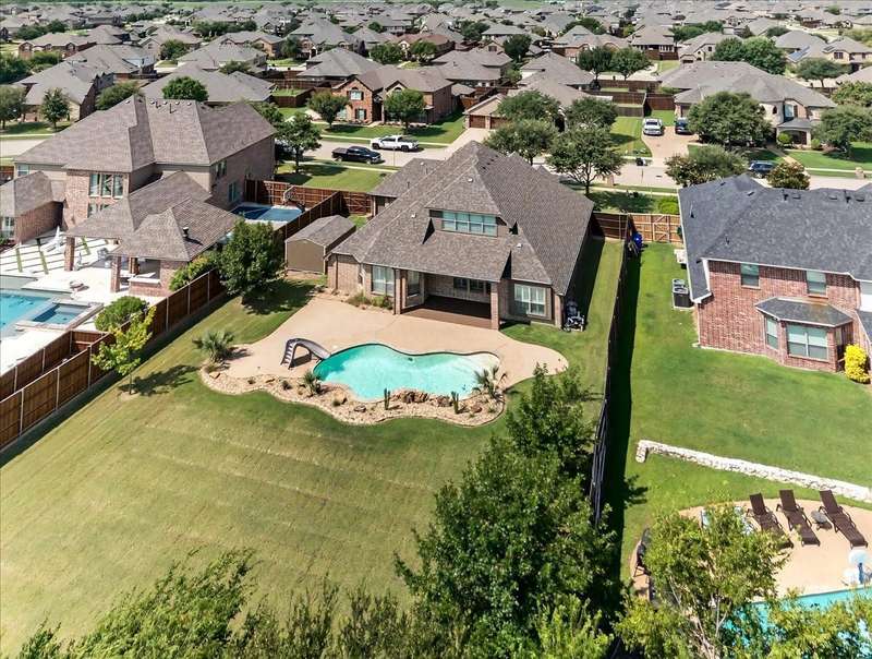 Summer Ready Home on Oversized Lot with Pool, Game Room and so much more, a delight to view!Welcome to this stunning 1.5-story home, set on a huge lot with beautiful curb appeal, brick and stone accents, and lush landscaping. The private backyard oasis features a sparkling gunite inground pool, covered patio, wood privacy fencing, and a large storage shed, perfect for relaxing, entertaining, and enjoying Texas summers.Inside, youll love the open concept layout with rich wood flooring throughout the entry, living, dining, hallways, and 4th bedroom or home office. Plantation shutters and abundant natural light add warmth and style. The spacious living area centers around a charming fireplace and flows seamlessly into the dining area and a well appointed kitchen with stainless steel appliances, knotty alder cabinetry, under cabinet lighting, breakfast bar, butlers pantry, walk in pantry, and extra large breakfast nook, all with backyard views.All bedrooms are located on the main floor, including a spacious primary suite with a large walk-in closet and a luxurious bath featuring dual vanities, a jetted garden tub, and separate walk-in shower. Two secondary bedrooms are tucked away for privacy, with easy access to the second full bath. A flexible home office with wood flooring can easily serve as a fourth bedroom to suit your needs.Upstairs, a large game room offers endless potential, media room, home gym, playroom, or second living space.Additional highlights include a 3 car garage with speckled epoxy painted floors, decorative lighting, ceiling fans throughout, and a fantastic location near major highways, shopping, dining, and Forney schools.This move in ready home truly has it all space, style, and a backyard built for year round enjoyment.