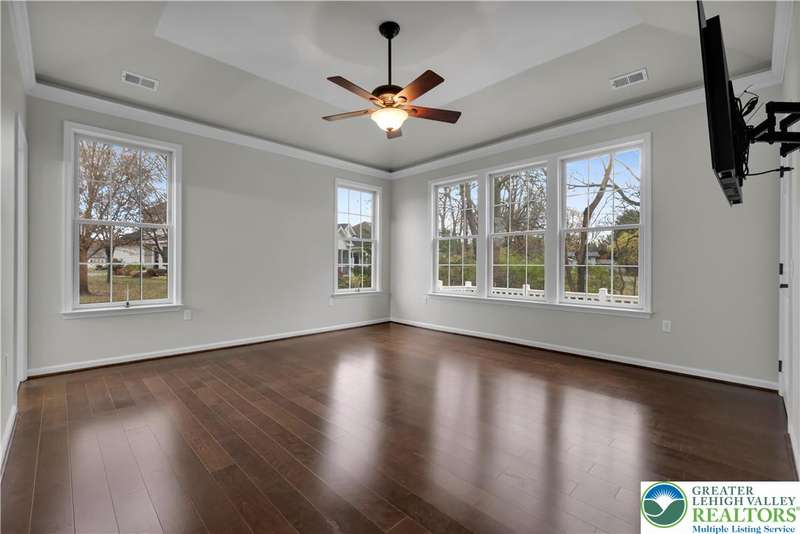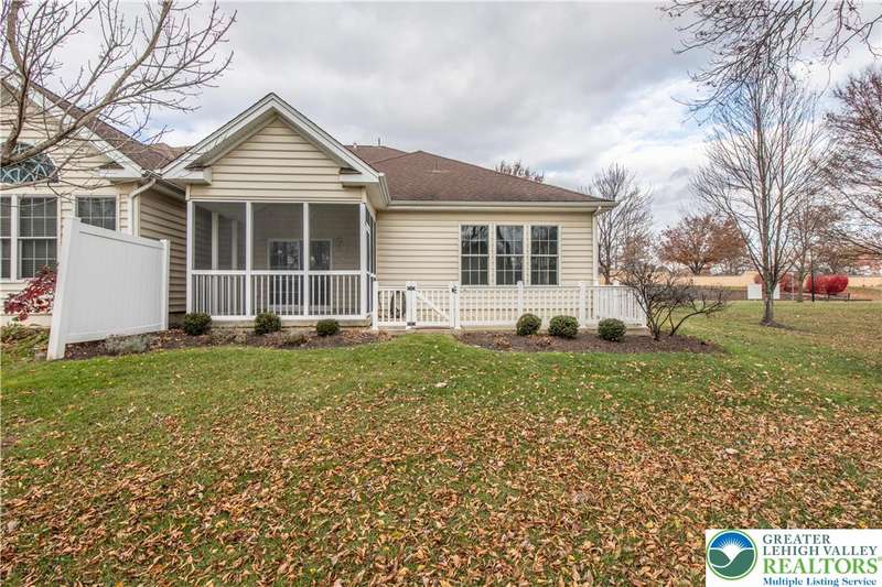 Discover one of the best active-adult, 55+ Communities in "Traditions of America at Hanover." Experience a low-maintenance, enjoyable life, w/resort-style amenities, including a vibrant clubhouse, heated outdoor pool, tennis/pickle ball courts and fitness center. This immaculate 2 Bdrm, 2 Bath Condo is perfectly situated on a spacious lot, w/a private tree-lined backdrop. Step inside to a sun-drenched, 2-story foyer, accentuated by a striking transom window and ceramic plank flooring. Fresh paint and gleaming wood floors flow seamlessly throughout the majority of the home, evoking a timeless and inviting elegance. The open floor plan leads you to a centrally located Kitchen, featuring high end finishes and a cozy breakfast area. A formal Dining Room distinguished by custom millwork and a built-in window seat, is the ideal space for entertaining. The Family Room, w/it's soaring vaulted ceiling, creates an inviting and spacious atmosphere. From here, step out to the screened-in porch and adjoining patio, where you can relax and enjoy the tranquil setting. The exquisite Primary Suite is a true sanctuary, enhanced by a striking tray ceiling that elevates the room and an abundance of windows that bathe the space w/natural light. The stunning NEW En-Ste offers a spa-like experience w/a large walk-in rainfall shower and a built-in shower bench. The 2nd Bedroom and hall Bath offer ample space for guests. An attached 2-car Garage and 2nd floor Bonus Room boasts convenience and added storage. Clear CO included.