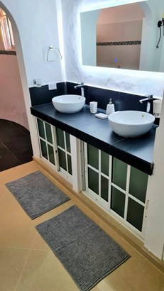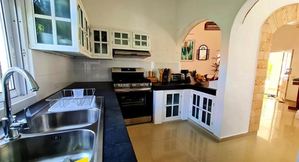 The 6 bedroom, 4 bathroom vacation rental villa in Sosua showcases two modern villas located in a tropical and private setting. The main villa features 4 spacious bedrooms, 3 bathrooms and the guest house features 2 bedrooms, 1 bathroom. The main Villa has an indoor open living area for entertaining large groups featuring cathedral ceilings, a breakfast bar, a chic dining area, and a brand new kitchen.