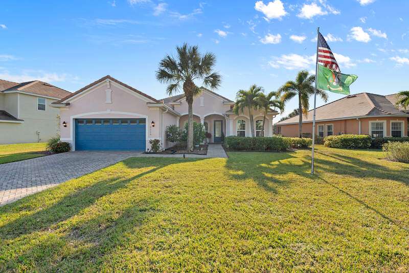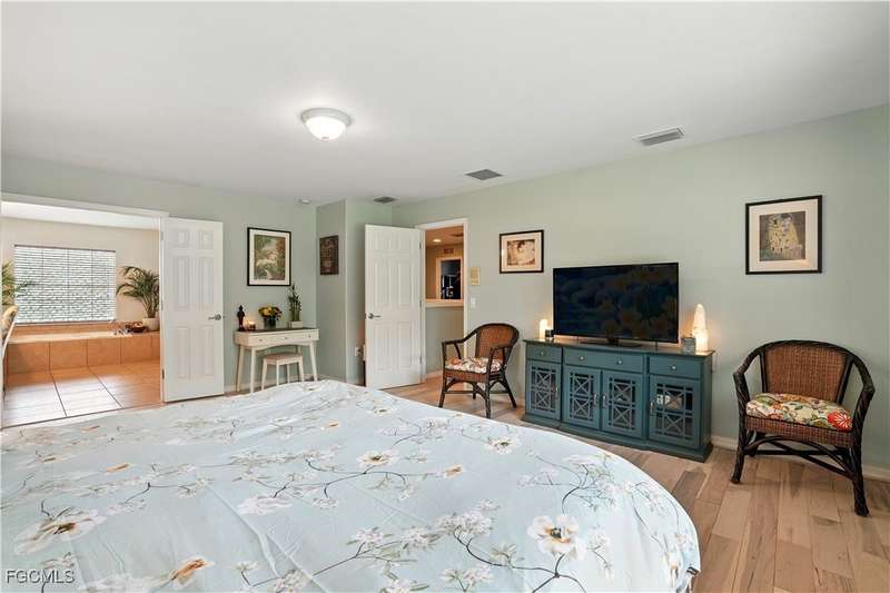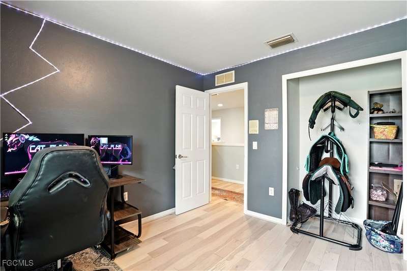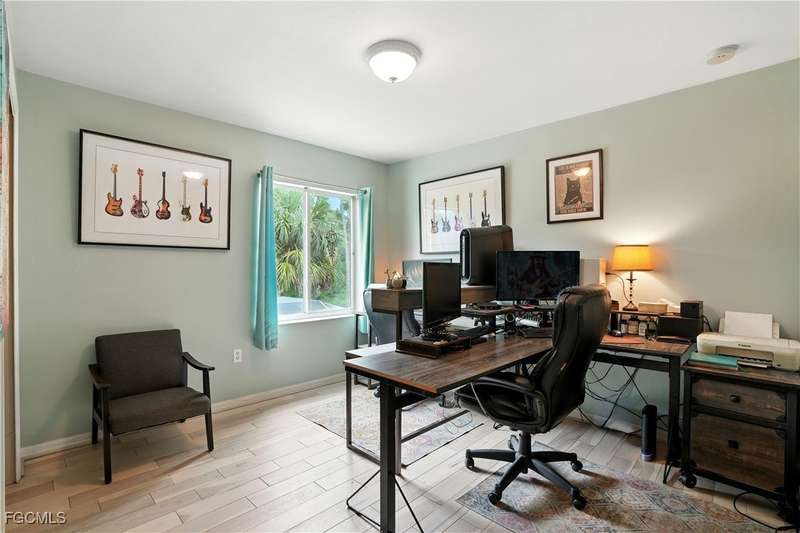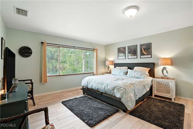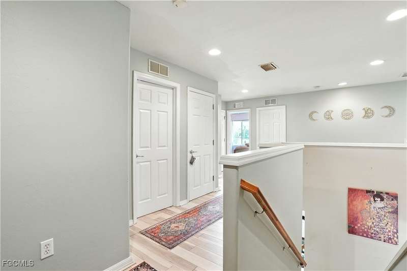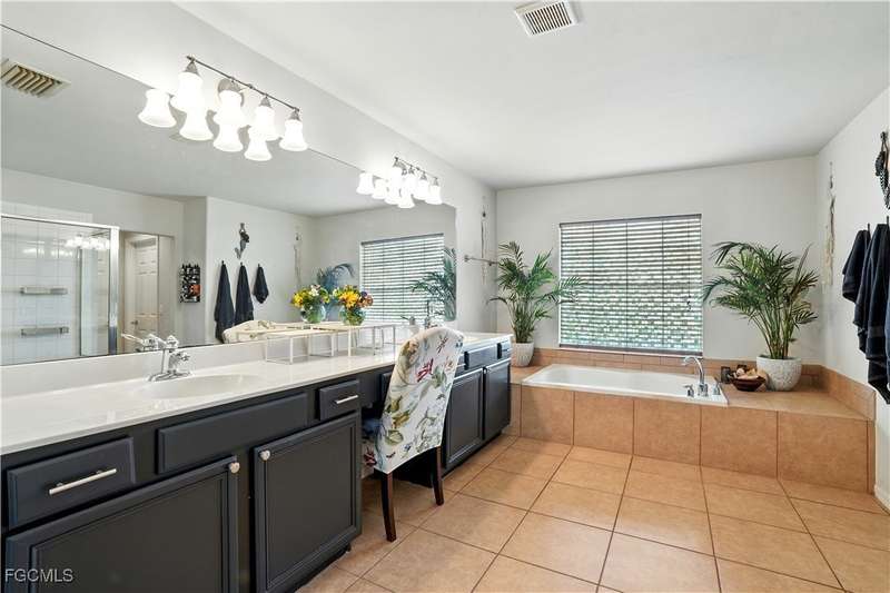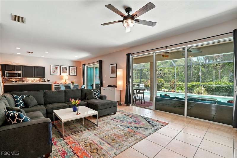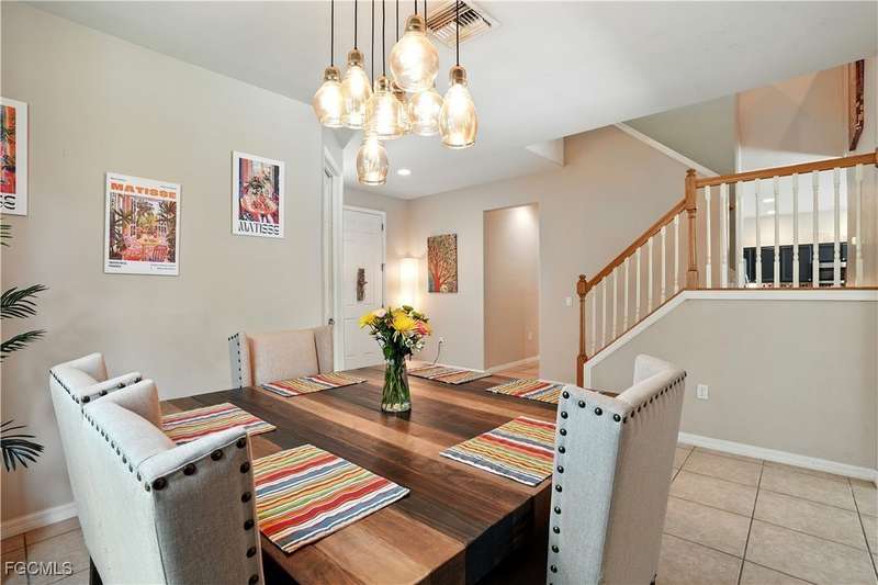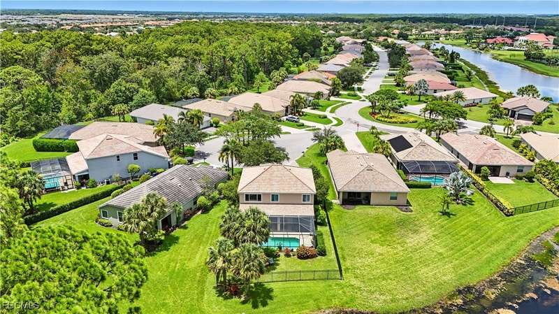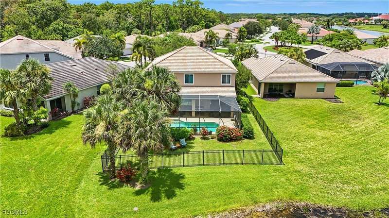 Discover this stunning two-story Pulte-built pool home offering 4 bedrooms plus a versatile den, perfectly situated on a quiet cul-de-sac with a fully fenced backyard and serene community lake and preserve views. Step inside to a welcoming foyer where the den and formal dining room provide flexible living options. The spacious family room seamlessly connects to a large kitchen featuring new quartz countertops, sink, and bar top (2024), tiled backsplash, pantry, and newer stainless steel appliances (2024/25) including a convection oven. The open floor plan makes entertaining easy while enjoying gorgeous views of the expansive screened lanai with pool and spa. The professionally installed Jacuzzi spa (2021), along with a half bath with pool access, enhances convenience. Upstairs, retreat to an oversized owner's suite with a large walk-in closet and picturesque lake and preserve views. The luxurious primary bath offers dual sinks, abundant counter space, a soaking tub, and a separate shower. Three additional bedrooms and a full bathroom with tub/shower combo complete the upper level. Recent upgrades include: HOA-approved fence (2021), 4 Ton / 16 SEER HVAC system (2022), solid hardwood flooring upstairs (2024), and a professionally cleaned and sealed tile roof (2024). Located in a gated community with resort-style amenities-including a large community pool, fitness center, pickleball courts, and more-this home offers over 2,800 sq. ft. of living space plus a private pool. Perfect for those seeking Southwest Florida living with privacy, convenience, and style!