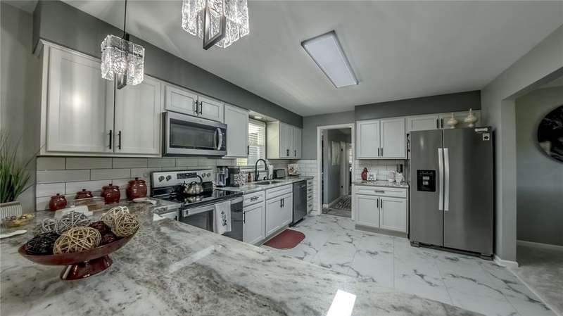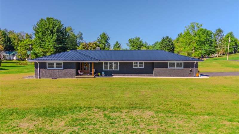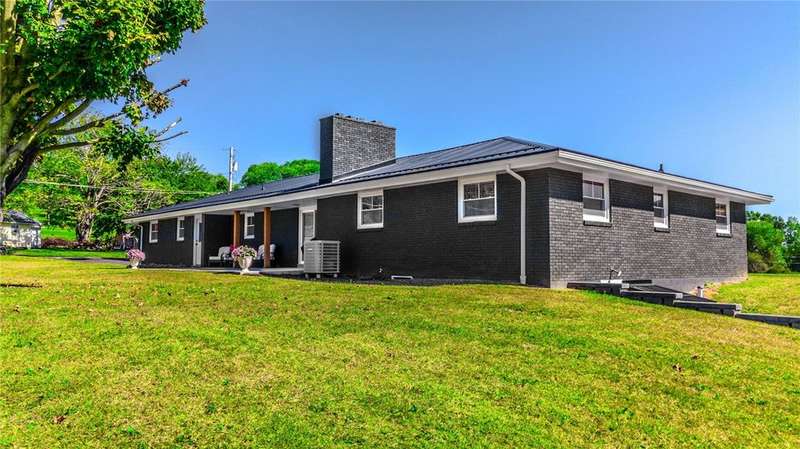 This meticulously maintained home is in the Frazier School District & located just minutes from Rt. 51. This sprawling all brick 4-bedroom ranch on 2 flat acres in Perry Twp has been tastefully updated and is move-in ready with everything NEW for you to enjoy! New metal roof, new paint & flooring, new kitchen w/appliances & granite countertops, two new full bathrooms, new concrete patio & sidewalks, new soffit & fascia, new 12x16 shed, new septic, new garage door & epoxy floor, new driveway & more! The open concept eat-in kitchen is perfect for entertaining guests. Generously sized bedrooms with ample closet space! The 4th bedroom would make a great home office! Mudroom conveniently located close to the garage & backyard ideal for kids/pets. Huge basement for storage or could be finished for additional living space. 2 fireplaces! Enjoy your morning coffee on the front porch or watch the sunset from your private covered back patio. One year HSA Home Warranty included! A must see!
