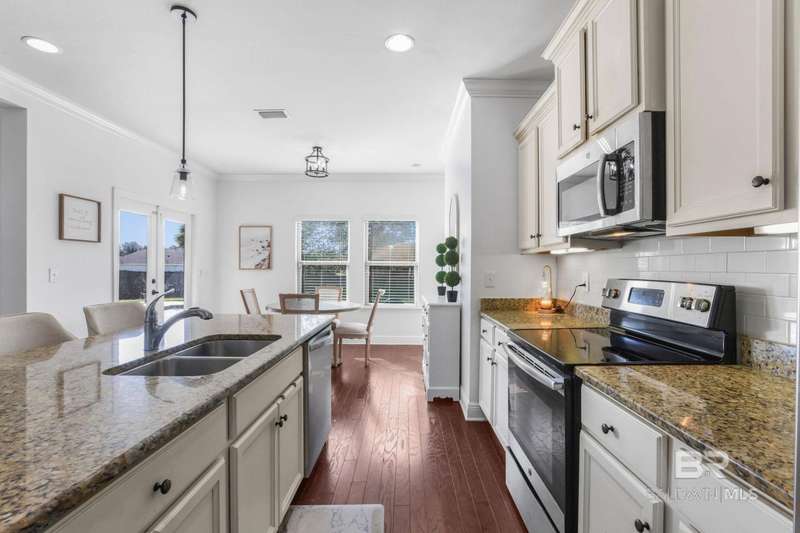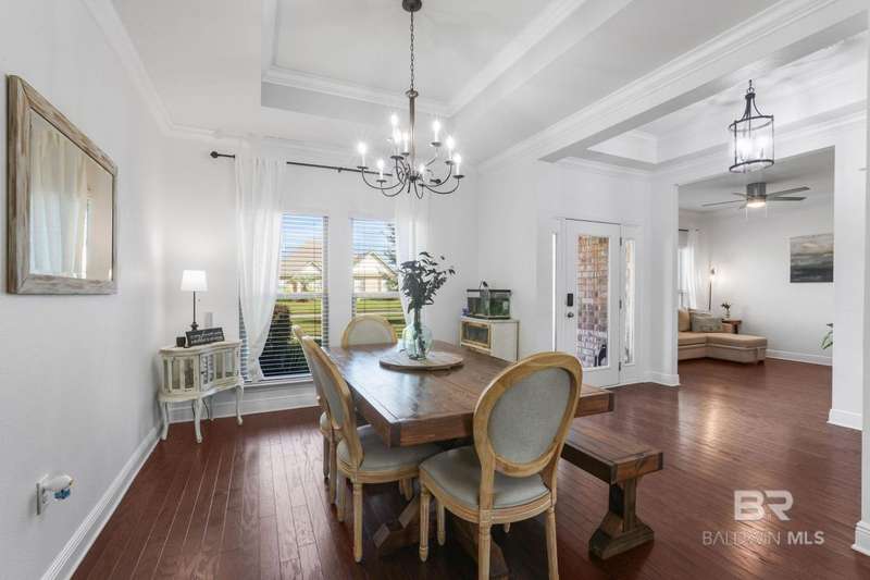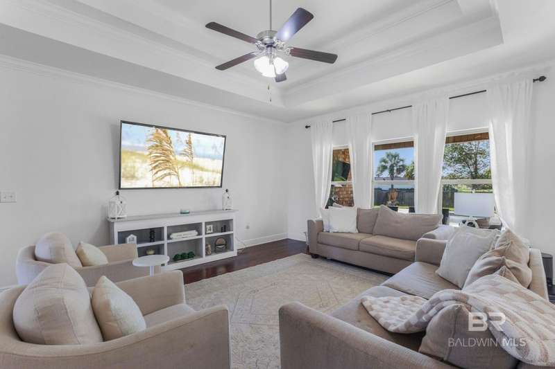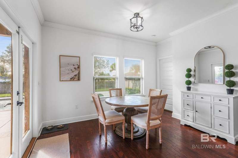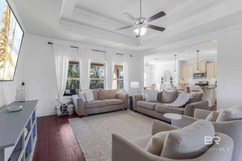 This beautifully maintained Gold Fortified 4 bedroom, 3.5 bath home offers 2,490 sq. ft. of elegant living in one of Gulf Shores' great neighborhoods. Located just one mile from the new Gulf Shores High and a quick golf cart ride to shopping, dining, and entertainment. Inside, you'll find fresh paint throughout, a separate office, formal dining room, and a bright breakfast area. The kitchen features custom pantry cabinets and overlooks a spacious living area great for entertaining. The primary suite offers custom built shelving, double vanities, a private water closet, and a separate tub and shower. Step outside to your backyard oasis. Complete with a gunite saltwater pool, newly painted cooling pool deck, and a brand new outdoor kitchen. The fenced yard and irrigated lawn make outdoor living effortless. Additional highlights include a laundry room with sink, a convenient half bath, and abundant storage throughout. Enjoy the peace of mind of Gold Fortified construction, plus the lifestyle of Craft Farms Golf Course living with easy access to the beach, schools, and the best of Gulf Shores. Buyer to verify all information during due diligence.