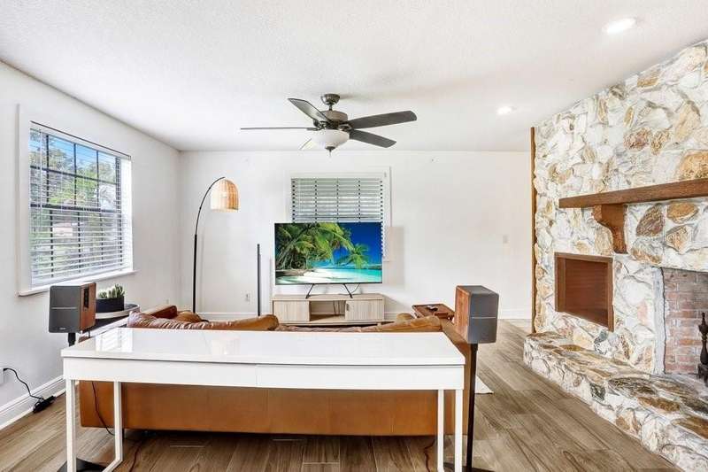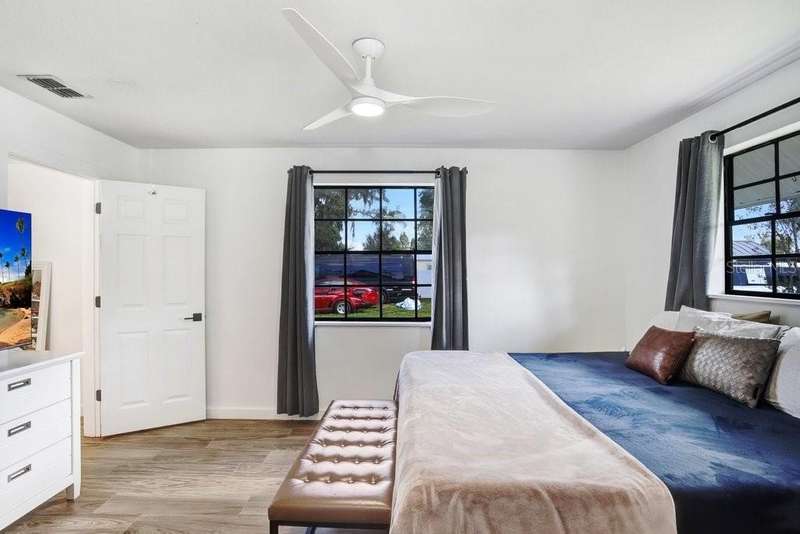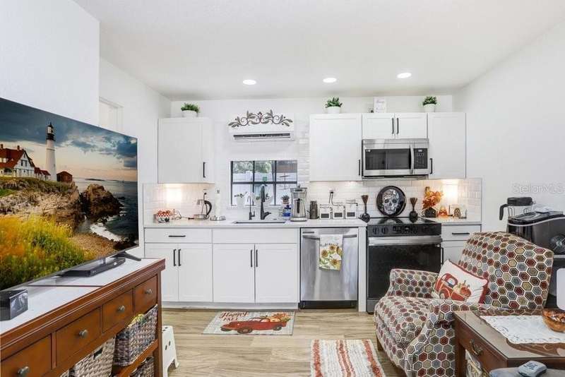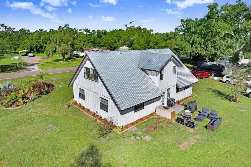 HUGE PRICE ADJUSTMENT! Country Living on 1 Acre and Conveniently Located Near Major Roads and Interstates. Enjoy the best of country living with city convenience. This beautifully renovated property sits on a full acre, offering peace, privacy, and easy access to shopping, dining, and commuter routes. The property includes a fully remodeled primary residence plus a modern ADU (Accessory Dwelling Unit) ideal for multi-generational living, a guest home, or rental income. The ADU has a proven rental history, previously earning $1,800 per month long-term or $3,000 to $3,500 per month short-term. Both homes have been completely renovated within the past two years with quality craftsmanship and attention to detail. The main home features new flooring throughout with no carpet, a fully remodeled kitchen with quartz countertops and updated appliances, cedar accents, new fixtures, lighting, hardware, doors, and valves. The primary suite is located on the main level with an updated ensuite bath and laundry area, while three spacious bedrooms and a remodeled full bath are located upstairs. The ADU is 544 square feet and includes two bedrooms, one bath, a full kitchen with quartz counters and tile floors, reverse osmosis system, split A/C units, washer and dryer, and a private porch. The ADU was completely renovated in 2024. The exterior offers fresh paint and new landscaping with underground drip irrigation on a timer. Both homes have brand-new 2024 metal roofs. The property includes a new septic system installed in 2021, recently pumped and inspected. Located in Zone AE with updated culverts and drainage that flows to a nearby retention pond, this property has had no flooding or storm issues. Recent updates include a new dishwasher and kitchen range in 2025, new roofs, A/C, water heater, tile, quartz counters, water softener, and complete interior renovations in 2024, interior paint in 2023, and exterior paint in 2022. Behind the white vinyl fencing is electric and septic hookup for your RV! This property is move-in ready, income-producing, and priced to sell. It offers the perfect combination of country charm, modern upgrades, and convenience. Schedule your showing today to experience all that this unique property has to offer.