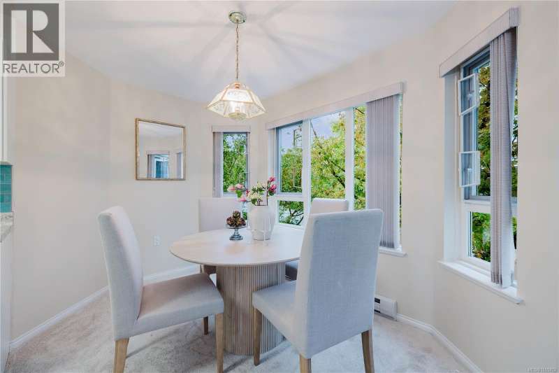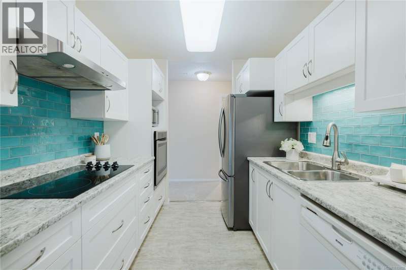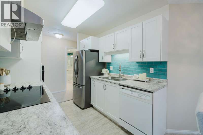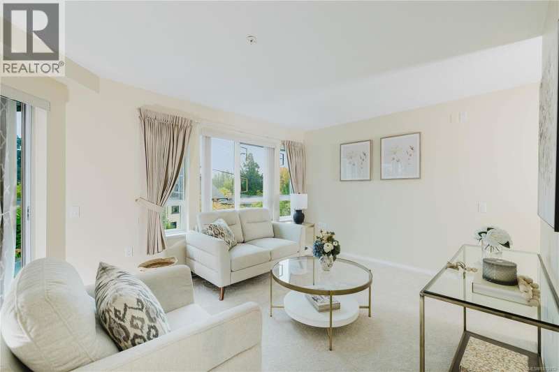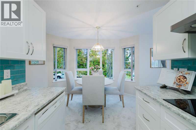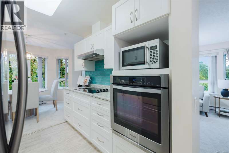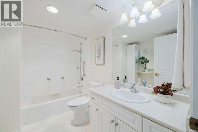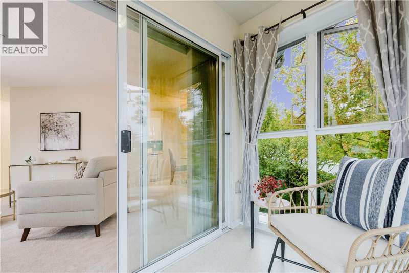 Welcome home, to this bright, elegantly updated 2-bedroom corner unit with views of Mt. Tolmie from your living room window. This is more than just a beautiful home, it's a community! Located at the very popular ''Ophir Place,'' the activities and amenity rooms at this property are amazing, and you will have many opportunities to spend time with your neighbours including the exercise room, lounge, library and activity room. Inside, this unit has been beautifully updated including new flooring throughout; an updated kitchen featuring quartz counters, shaker cabinets and stainless steel appliances; and 2 updated bathrooms. This beautiful condo also features a bright sunroom, huge in-suite laundry room, plenty of storage and a separate secure storage locker. Conveniently located just steps from grocery stores, banking, cafes, a pharmacy, many restaurants, and close to major bus routes. This is a 55+ strata and the strata fees include hot water, basic cable, phone and internet. (id:58403)
