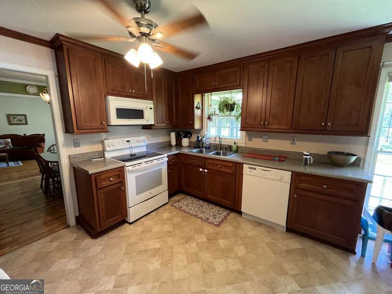 Hard to find 4 sided brick home in Maplewood Square subdivision. Large .6 acre lot with fenced in back yard that overlooks a pasture that runs along the Etowah river. This location provides privacy, quiet and beautiful sunsets in the evening that is enjoyed from the screened in porch. The living area includes a large living room, separate dining room and den. In the carport area is a 14'x14' storage room with power that has been used as an office in the past. Beautiful hardwood floors throughout.