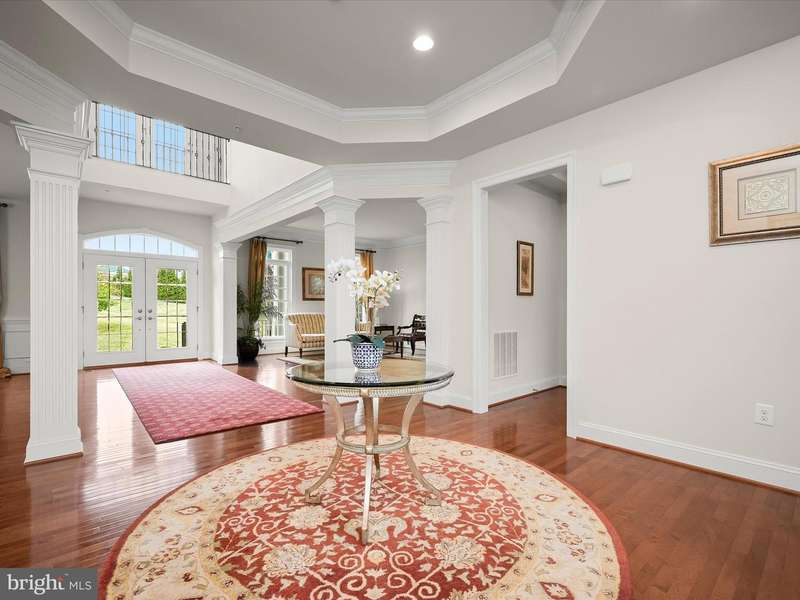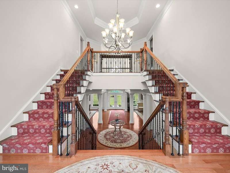 Welcome to this stately NV Mount Vernon residence in the sought-after Schooley Mill Farm community. Set on 1.14 acres with a private drive, this 6-bedroom, 5.5-bath transitional-style home impresses with a brick front, soaring columns that define the covered porch, professional landscaping, and hardscaping that includes exterior lighting, rear paver patios, a circular stone seating wall, and a serene koi pond with a bridge. Enjoy outdoor living on the composite deck with vinyl railings, framed by tree-lined views. A 3-car side-load garage with EV charging station completes the exterior. Inside, a dramatic two-story foyer with fluted columns, tray ceiling, crown moldings and dual chandeliers opens to formal living and dining rooms. A conservatory, private study with French doors, and a two-story family room with coffered ceiling, Palladian window, and gas fireplace set the stage for elegant living. The gourmet kitchen features a commanding center island, two breakfast bars, professional-grade stainless appliances, walk-in pantry, butler's pantry, and a breakfast room in the round with deck access. A mudroom with a built-in arrival bench and generous laundry room with custom cabinetry add everyday convenience. Upstairs, four ensuite bedrooms each feature private baths and walk-in closets, while the luxurious primary suite offers double French doors, tray ceiling, a sitting room in the round, and a spa-inspired bath with two separate vanities and three walk-in closets - one is an oversized bonus closet over the garage. A Juliette balcony adds charm between the secondary bedrooms. The daylight walk-out lower level is designed for daytime or evening entertainment with a full wet bar and back bar, recreation and card rooms, billiards space, media room, exercise room, two additional bedrooms with walk-in closets, a full bath, and abundant storage. This exceptional home blends timeless elegance, thoughtful design, and resort-style amenities in a spectacular location nearby one of Howard County's hidden treasures- Schooley Mill Park. Spanning 192 acres of meadows, woodlands, and wetlands, the park offers a peaceful retreat and abundant wildlife viewing. The park also features over four miles of scenic trails, a regulation-sized cricket field, baseball and softball diamonds, basketball and tennis courts, eight outdoor pickleball courts, and three public equestrian rings. Families and friends will enjoy the farm-themed inclusive playground, designed for children of all ages and abilities, with swings, slides, sensory play areas, and shaded picnic spots. With free parking, brand-new restrooms, water fountains, and multipurpose facilities, Schooley Mill Park is within walking distance and is a true community gem blending nature, recreation, and accessibility. Come home to a very special home and a very special location surrounded by opportunities to retreat in nature, or participate in robust outdoor activities for everyone of every age!