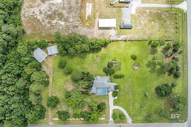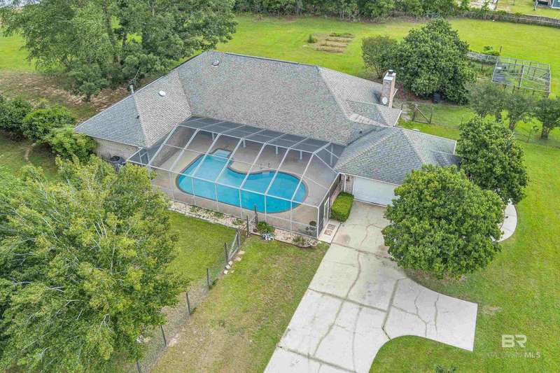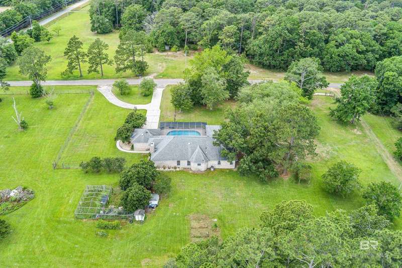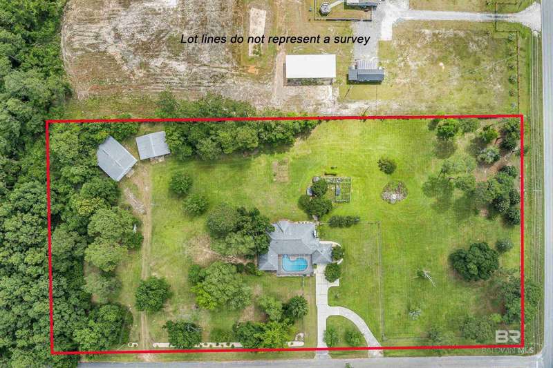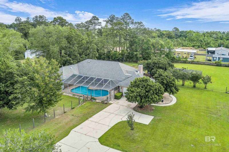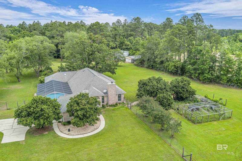 Beautiful home on 4.62 Acres with Swimming Pool, Metal Building and Workshop ? Minutes from Wolf BayThis spacious home, set on 4.62 acres, offers a peaceful setting just minutes from Wolf Bay and the Foley Beach Express. With an open floor plan, the home features a chef's kitchen equipped with granite countertops, quality appliances, and ample workspace. It's perfect for daily living and entertaining.The master suite provides a comfortable retreat, complete with a double-sided fireplace, oversized walk-in shower, dual vanities, and a jetted tub for relaxation. It's a space designed for comfort and privacy.Outdoor living is a highlight with over 2,000 square feet of screened-in pool and patio space?ideal for hosting or enjoying quiet moments. A 40x50 metal building offers significant storage or workspace, while a 12x30 workshop is perfect for any DIY projects.The converted double car garage is now a spacious fourth bedroom with its own private bath, offering flexibility for guests, an office, or extra living space.Located in a quiet area, this property provides the perfect balance of rural living while still being close to major roads, local amenities, and Wolf Bay. Whether you're looking for room to grow, a quiet retreat, or extra space for projects, this home offers it all. Buyer to verify all information during due diligence.