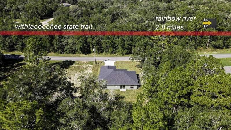 Under contract-accepting backup offers. Brand-new custom-built home offers 3-bedrooms, 2-bathrooms with a 2-car garage and is perfectly situated on nearly a quarter-acre lot with no side neighbor, offering added privacy and space. Inside, you’ll find an open split floor plan featuring quartz countertop, soft-close wood cabinets, waterproof luxury vinyl plank flooring, and stainless-steel appliances. Built with energy efficiency in mind, the home includes foam insulation and a 30-year architectural roof warranty for peace of mind. Enjoy relaxing on your covered front porch and take advantage of the convenient location—right across the street from the Withlacoochee State Trail and just minutes from Rainbow River. Only 20 minutes to Crystal River with direct access to the Gulf. This is Florida living at its best!