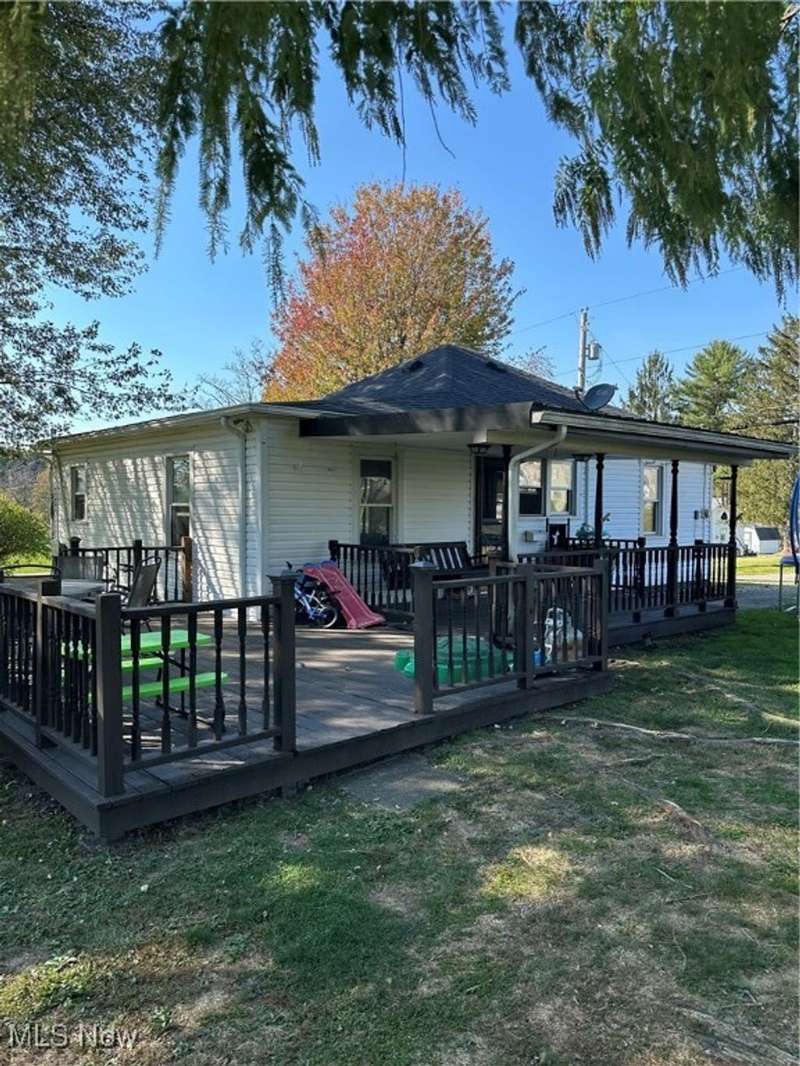 Cozy home featuring 2 bedrooms and 1 bathroom with nice open living and dining room all in one space. Kitchen includes microwave, stove and fridge. Unfinished basement holds laundry space, garage space for small car and plenty of additional storage. Just outside the kitchen entrance you have a covered porch with swing wrapped around the back side deck for additional living space when the weather is nice. The home sits on a spacious size lot in the village of Woodsfield featuring public electric, water and sewer, utilities with central air and forced air gas heat. In a nice neighborhood. Mineral rights currently owned by sellers will be included with purchase price. Schedule your appointment today!