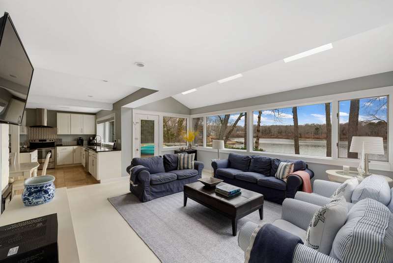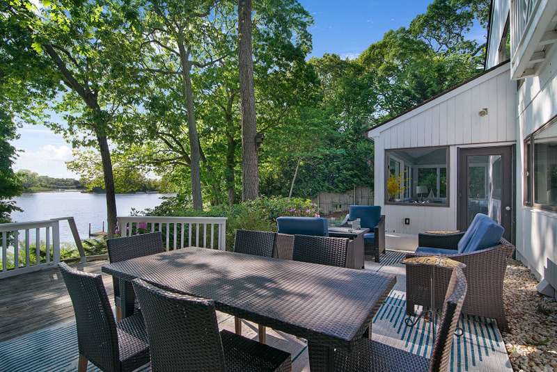 Rental Registry #: RP230332. Charming & magical waterfront property with spectacular views in prime Hamptons location off North Sea Harbor. Minutes to Southampton Village and Sag Harbor. Walk to Towd Point Beach. The property is on the water and features a private dock with room for a 22' boat as well as a jet ski floating dock and is completely navigable to Peconic Bay and the ocean. Renovated and newly furnished with a nautical/coastal vibe, the house features an open concept kitchen, dining, living room & bathroom on the first floor. The second floor has 3 bedrooms and 2 bathrooms as well as another office/den area with pull out sofa. The master has an en-suite bath, walk in closet and lovely Juliet balcony. All bedrooms and living spaces are equipped with TVs. Luxury bedding and linens are provided. Every room in the house directly faces the water and has stunning views. Swans and ducklings are daily visitors. Enjoy dining al fresco on the beautifully furnished outdoor patio equipped with fire pit and tiki torches. Roast marshmallows, grill fresh seafood and watch the sunsets in a sublime setting. Paddleboards & Kayaks are provided and ready to launch directly from your own private dock. Boats and jet skis are available for rent from a local marina minutes away. Fish Cove leads directly into North Sea Harbor and Peconic Bay. Front yard has a basketball hoop and grassy lawn. Laundry room with new washer/dryer on first floor. Extremely private and quiet location. Visit local farms and wineries. Sailing, yoga, golf, tennis, jet skis and fishing are just some of the many possibilities in this upscale and bucolic setting. Listing ID: 899747
