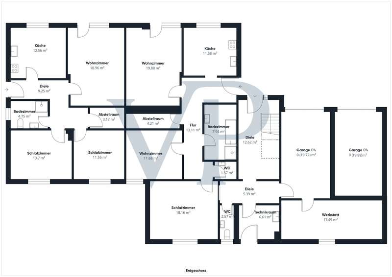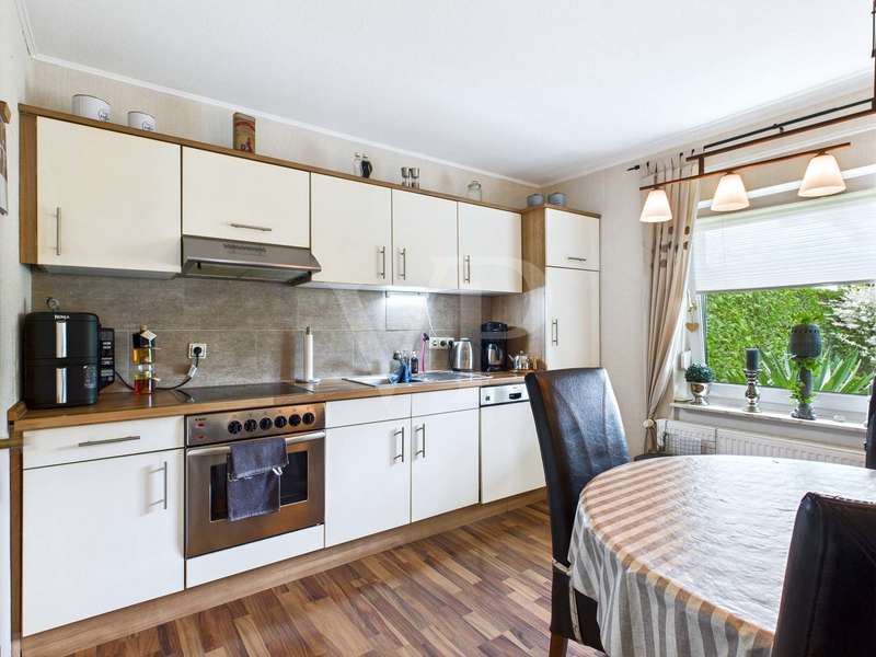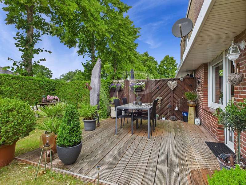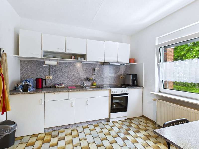 This well-kept apartment building, which was built in 1974, is located in a quiet yet centrally located residential area of Aurich. A total of four independent residential units are spread over two floors, which impress with their well thought-out floor plans, spacious outdoor areas and versatile usage options. Three rented residential units currently generate a total monthly rent of EUR 1,449. The residential unit that has not yet been let provides further potential in the basic rent. A reliable rental situation and the attractive location make the building equally interesting for owner-occupiers and landlords. Room layout at a glance: First floor: Two separate apartments, each with its own terrace and garden area. The apartments each have separate entrances, two bedrooms, a storage room, a kitchen and a bathroom. Unit two also has a guest WC. Access to the terraces is granted via the generously proportioned living rooms. Second floor: Above the garage is a single apartment that was subsequently built in 1990. In addition to the living rooms, bedroom and living room, it has a guest WC and a kitchen. The tenant has access to a private roof terrace via the shower room. The fourth residential unit extends over the entire top floor with a living space of approx. 150 sqm. This unit offers many possibilities, as it is currently unlet. Whether renovation or owner-occupation, there is plenty of room for redesign here. A large roof terrace extends the kitchen into a real lounge area. In addition to four bedrooms, this residential unit also stands out with a particularly spacious living room. Additional areas: There is a utility room on the first floor as well as direct access from one of the garages to the adjoining workshop. Three further garages are also available.