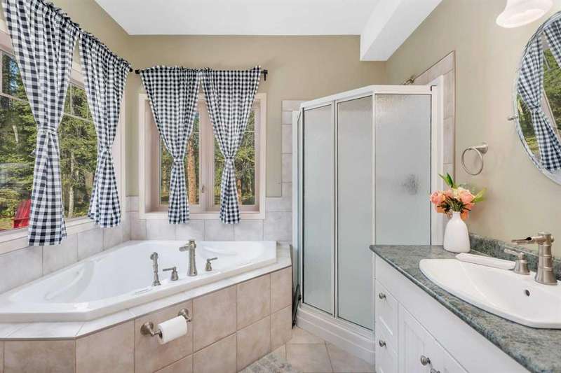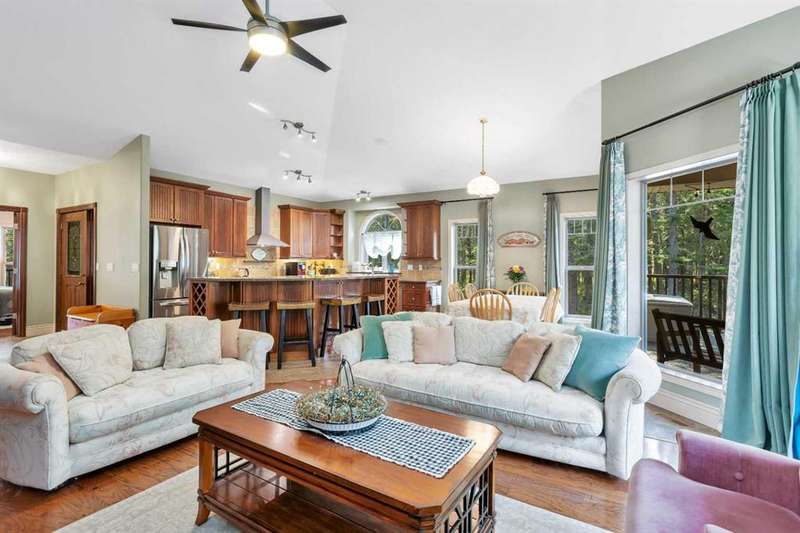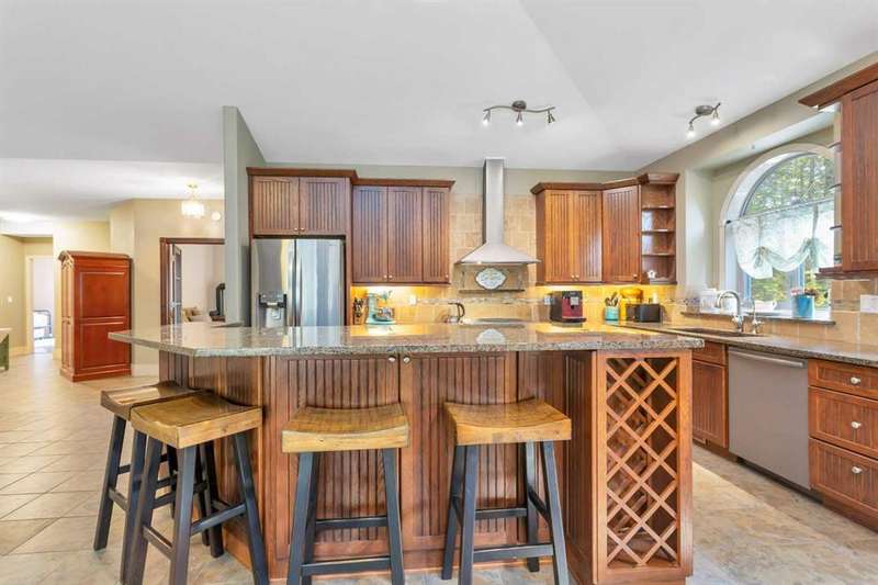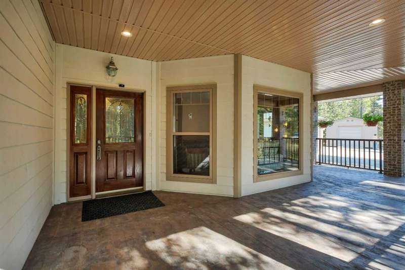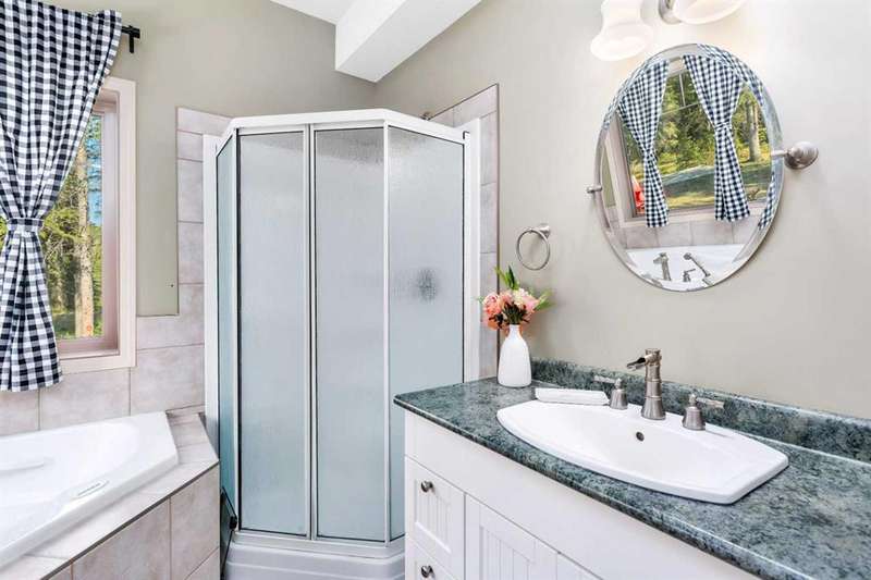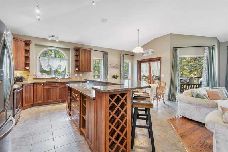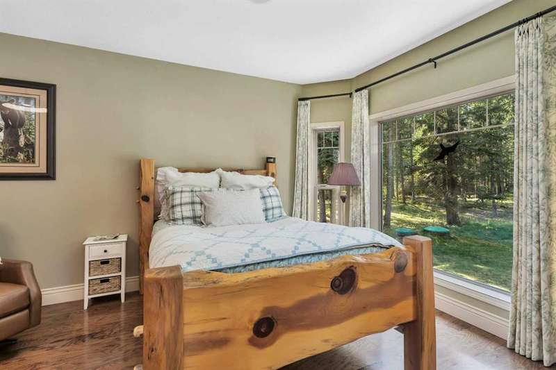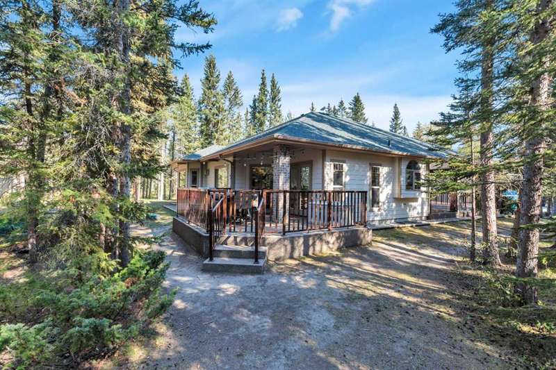 THIS COULD BE YOUR Very Own Private “Country Cottage” Inspired Oasis in the Woods! Nestled in a peaceful cul-de-sac where the only traffic is wildlife passing by, this 5.24-acre woodland retreat offers the perfect blend of rustic charm & modern comfort—all on one level, and not a single stair in sight! Step inside to YOUR year-round “Country Cottage” inspired dream, a 4-bedroom, 2-bathroom slab-on-grade bungalow with in-floor heating & perimeter forced air, designed to keep you warm and cozy through Alberta winters, & refreshingly cool in the summer—no central A/C required! The heart of the home is an open-concept Red Oak kitchen featuring soft-close drawers, a massive granite island with built-in storage, & a walk-in pantry with automatic lighting & custom storage, shelving & Decor. Flow seamlessly into the dining area & cozy living room, where a beautiful gas fireplace & wall-mounted TV create the perfect gathering space. Additional gas stove is located in the front bedroom, that can also be turned into a great home office! Throughout the home, enjoy engineered hardwood & porcelain tile flooring, extra-wide hallways & doorways, & a layout made for forever accessibility & easy living. Outside, the charm continues with a covered front porch, Hardie-Plank siding, & fibreglass shingles—durable, low-maintenance materials that offer peace of mind against hail & the elements. Off the dining room, the covered back deck with a natural gas BBQ hookup makes entertaining a breeze, while the firepit area invites summer nights under the stars. Birdwatchers & nature lovers will adore the frequent visits from songbirds, deer & the occasional moose! The 4-chamber aerobic septic system is a major upgrade—breaking down & filtering waste into clean water, offering efficiency & environmental benefits rarely found on acreage properties. For your toys & tools, the oversized 24x36 detached garage (with concrete floor and 220 wiring) fits up to four vehicles. It also houses the built-in generator & transfer switch, so you’re never without power. Round it all out with a charming greenhouse for your gardening needs, & endless possibilities for expanding your vision across this lightly developed, fully treed property. Just a short drive to Sundre, Olds, and Innisfail—this is not just a home, it’s a lifestyle. A storybook setting ready for your next chapter. “Home Is Where Your Story Begins!”