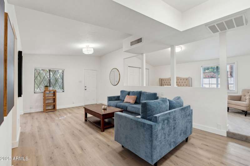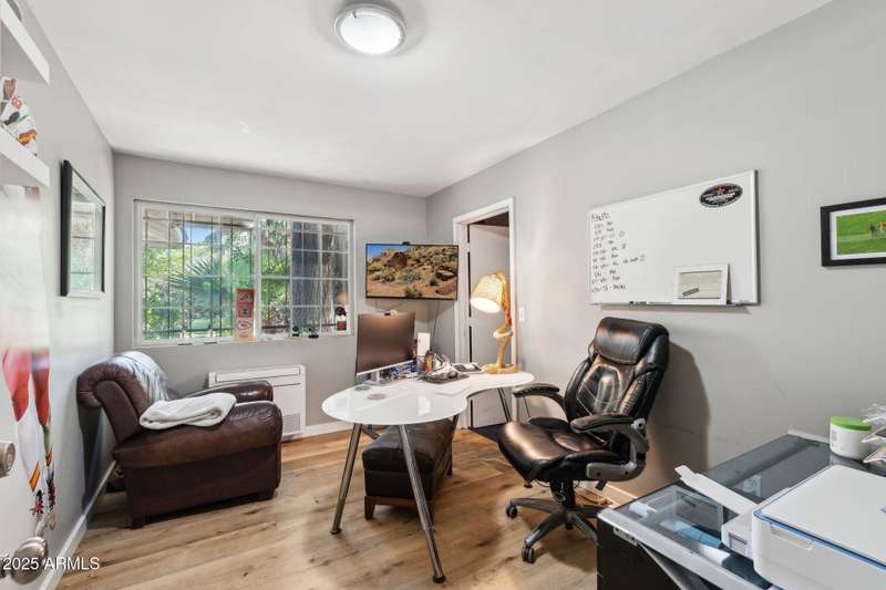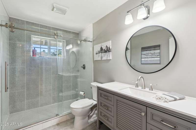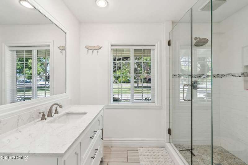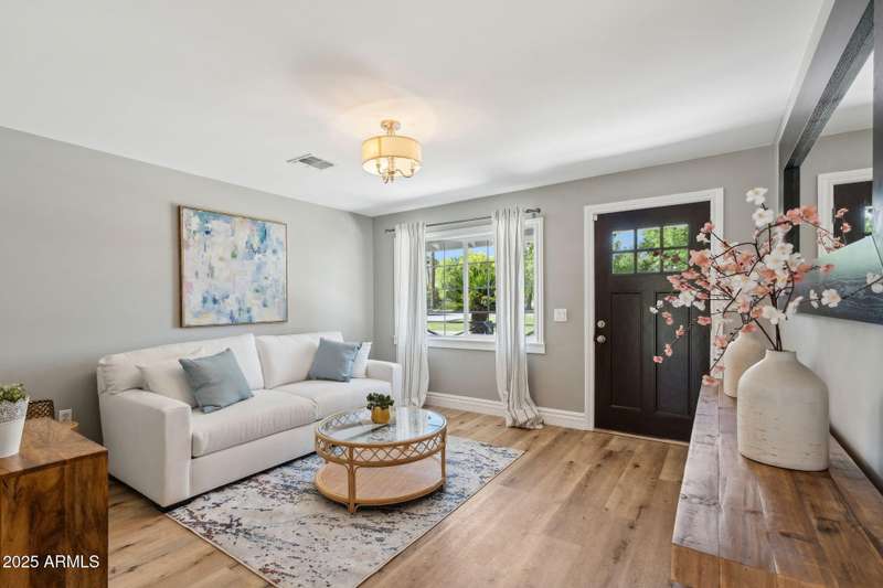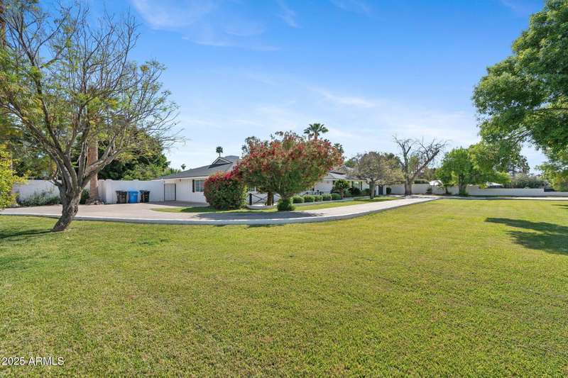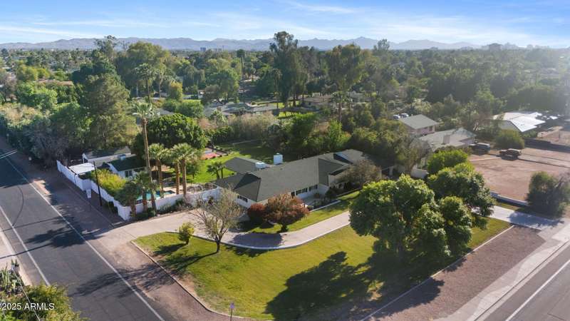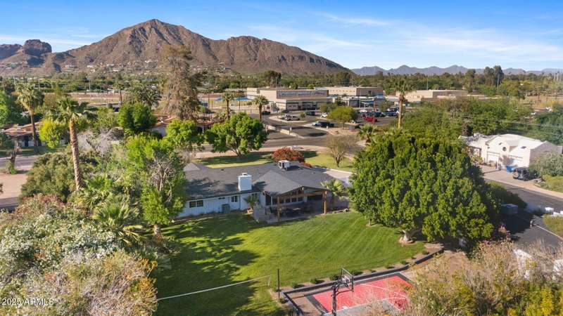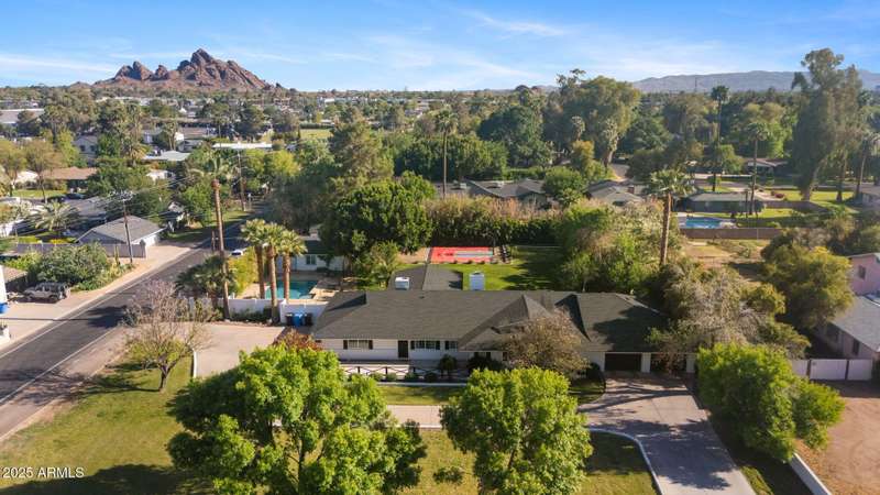 Perfectly positioned in the coveted Grove Park Estates, this timeless Arcadia property combines turn key comfort with exceptional opportunity for expansion. Set on nearly an acre with Camelback Mountain views, the estate offers both immediate livability and the rare space to reimagine, modernize, or add on to create a true legacy home. The main residence blends classic Arcadia ranch charm with thoughtful contemporary updates. It features three generous bedrooms, including two en suite, and two additional bathrooms. Expansive, bright living spaces open through accordion glass doors to a large covered patio that overlooks a backyard resort with a pool, sport court, and mature landscaping. Every space is designed for seamless indoor and outdoor living and year round enjoyment. A detached casita with its own entrance and single car garage provides ideal flexibility for guests, extended family, or a private workspace. The existing layout is thoughtful and functional, yet the generous lot size leaves ample room for future additions or architectural redesign. Move in and enjoy today, or take advantage of the unmatched location and scale to create the next great Arcadia estate. This property is both turn key and full of potential, a rare combination in one of Phoenix's most desirable neighborhoods.