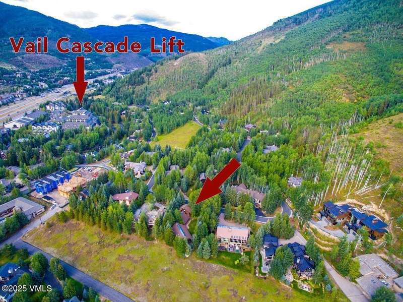 Unusual opportunity to purchase a family compound situated on a beautiful lot capturing stunning long views to the west over the upper bench of Donovan Park and on towards Beaver Creek mountain. The two single family homes are separate from each other but sold together along with a studio apartment over the 3 car garage. Both homes face the large flat grassy area surrounded by tall mature aspen trees with a manmade but natural looking stream water feature running alongside of the property. This property is within walking distance to the Cascade Ski Lift where you may join the Park Hyatt club offering a ski locker for skis and boots at the end of the day.