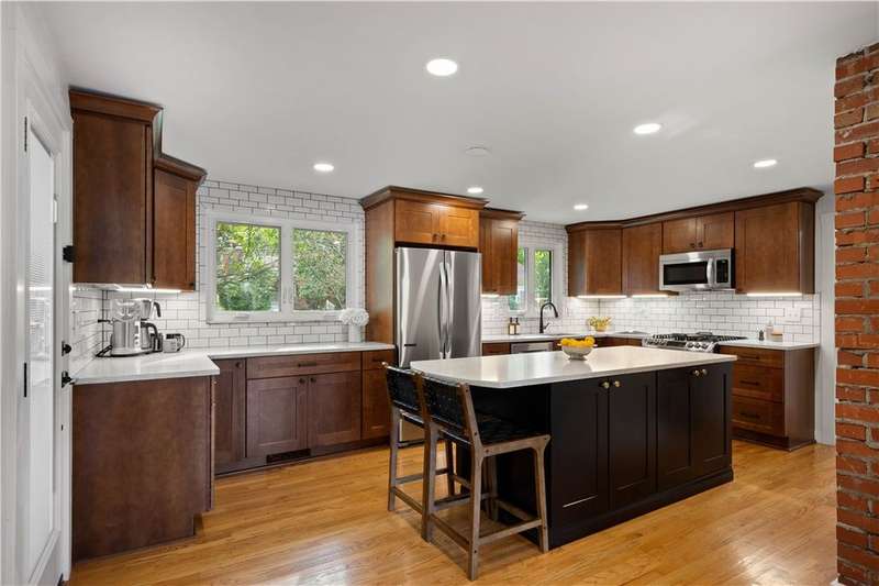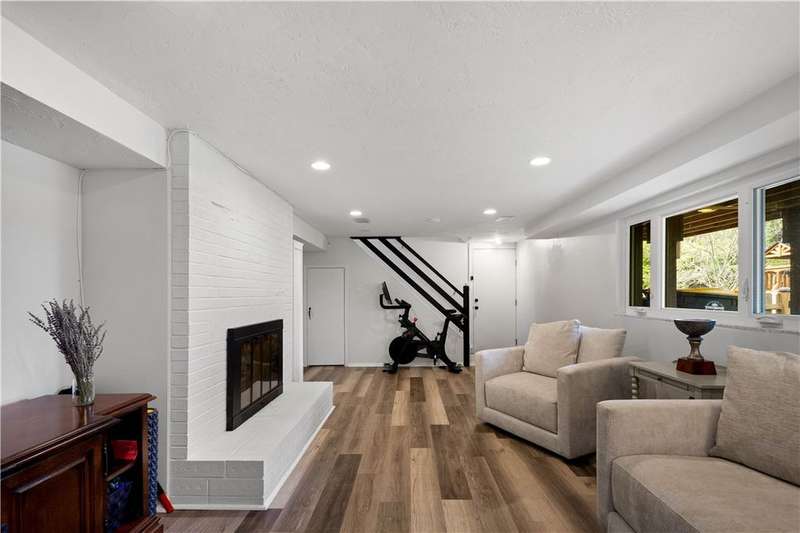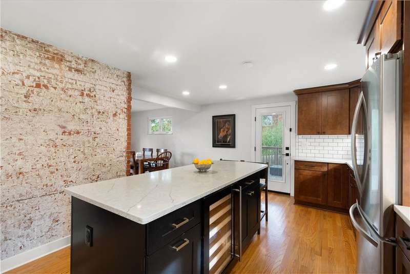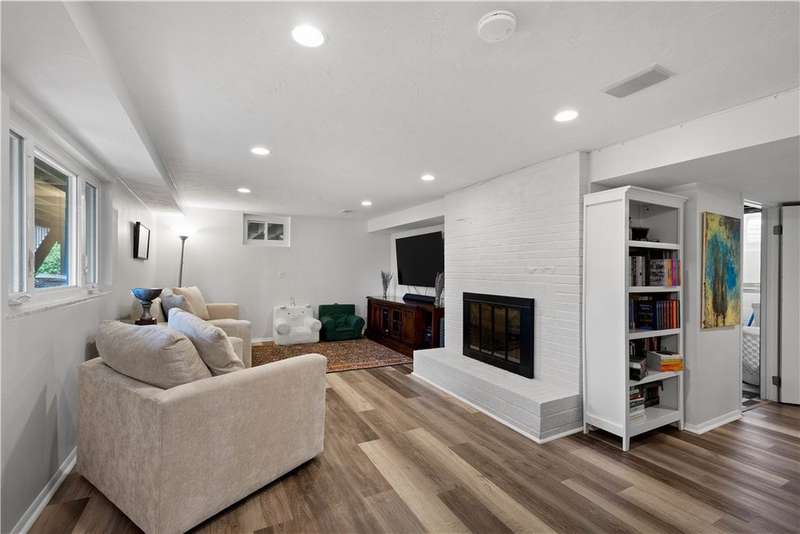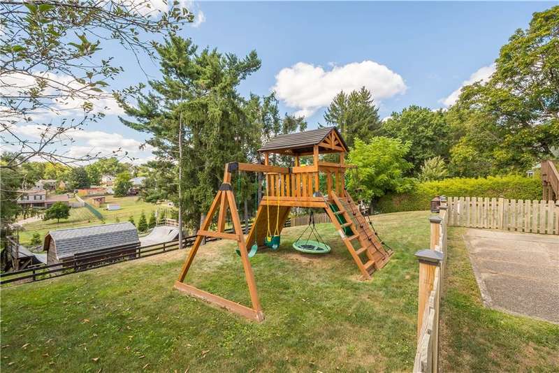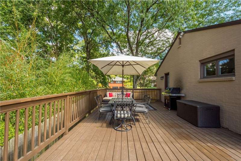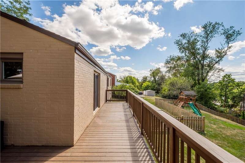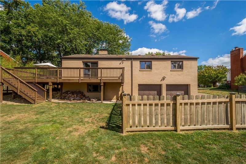 Discover this beautifully updated 3-bedroom, 3-bath ranch in Bethel Park. A welcoming open layout highlights gleaming hardwood floors, abundant natural light, mid century character & cozy fireplaces. The stunning kitchen is a showpiece with quartzite counters, an oversized island with seating, custom cabinetry, SS appliances including a wine/beverage center & an exposed brick accent wall. Seamless indoor-outdoor living awaits with a dining and living rooms that opens to a sprawling wraparound deck and expansive, fully fenced yard. Retreat to spacious bedrooms w/ walk-in closets & enjoy spa-like baths featuring designer tile & upscale finishes. A finished game room w/ another fireplace, full bath, tons of storage, expansive laundry room & oversized garage that could fit 4 cars add exceptional versatility. Modern updates, mid century character, incredible storage and a location that can't be beat, this home offers the perfect blend of function and style.