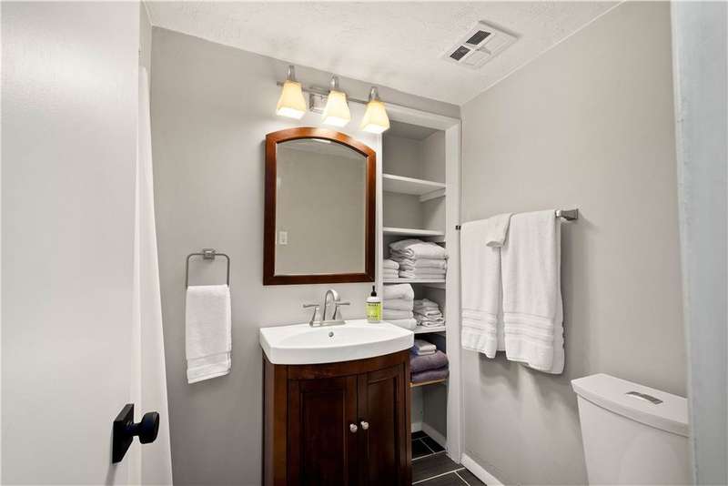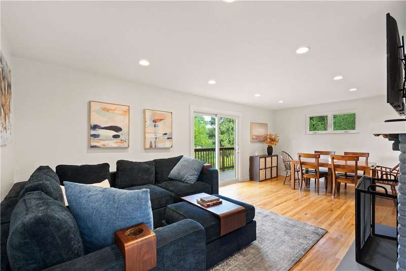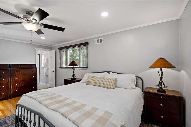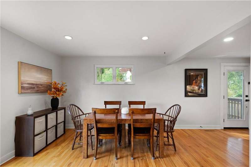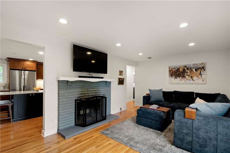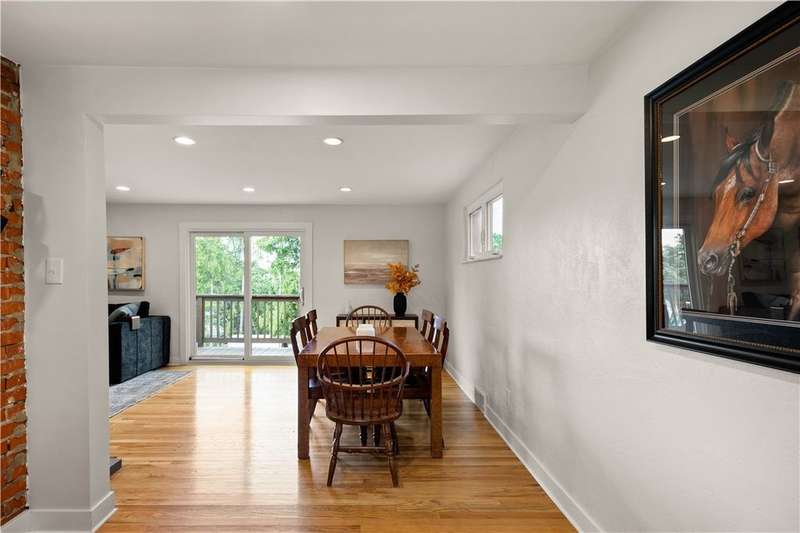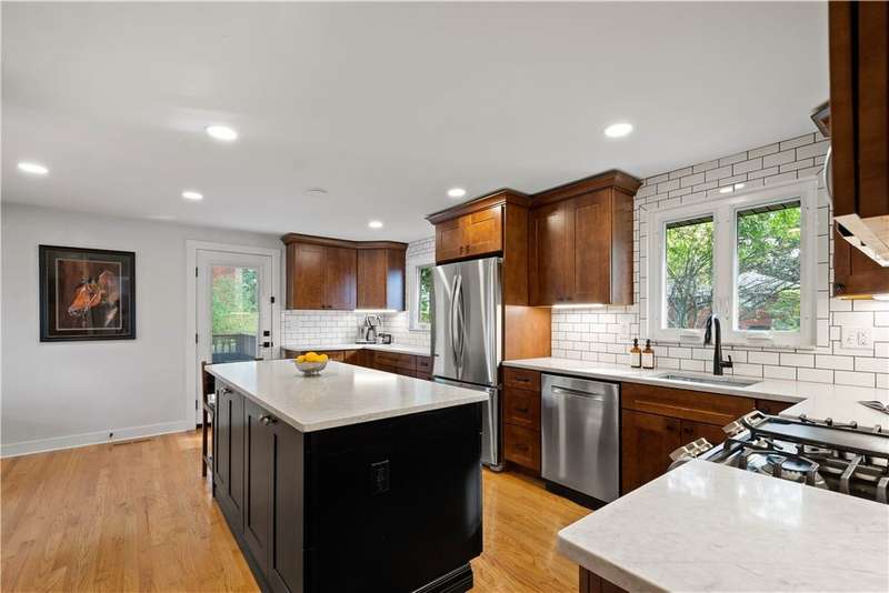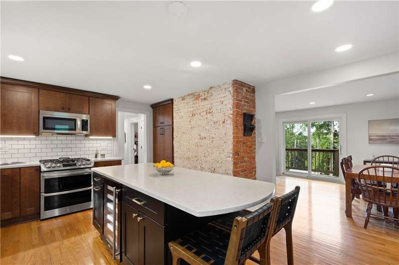 Discover this beautifully updated 3-bedroom, 3-bath ranch in Bethel Park. A welcoming open layout highlights gleaming hardwood floors, abundant natural light, mid century character & cozy fireplaces. The stunning kitchen is a showpiece with quartzite counters, an oversized island with seating, custom cabinetry, SS appliances including a wine/beverage center & an exposed brick accent wall. Seamless indoor-outdoor living awaits with a dining and living rooms that opens to a sprawling wraparound deck and expansive, fully fenced yard. Retreat to spacious bedrooms w/ walk-in closets & enjoy spa-like baths featuring designer tile & upscale finishes. A finished game room w/ another fireplace, full bath, tons of storage, expansive laundry room & oversized garage that could fit 4 cars add exceptional versatility. Modern updates, mid century character, incredible storage and a location that can't be beat, this home offers the perfect blend of function and style.