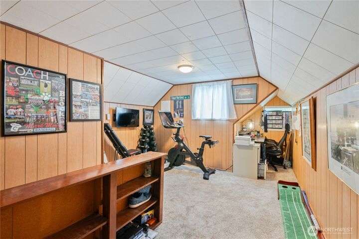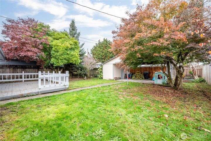 Super cute home, just a couple blocks from the Lake! 2 Beds with a Bathroom downstairs, and upstairs is another Bedroom, 1/2 Bath and Landing (for your Peleton and your work-from-home desk). There's a dedicated space for the dining room in front of the big picture window. The home stays warm and cool thanks to the ductless heat pump. The single garage is good for your car or lots of storage (you can literally stand up on the plywood-floored Garage attic!) ... and it's great to have driveway parking! Bonus area out back (deck, backyard, Shed, attached carport) has a cyclone fence lined with cedar fencing (it's total privacy for playing or relaxing!) Hurry and get in before Christmas; there's a great window waiting for your Tree!