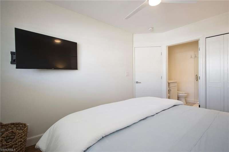 Available for 2026 Season! Location Location Location! Come enjoy your season just a short 1 block to 3rd Street and 2 more blocks to Naples beach and pier. This stunning open concept unit has been completely renovates. Great room with large center island, fully equipped kitchen, dining for 4, and living area with large screen TV. The primary bedroom features a king bed, TV, and ensuite bathroom with walk-in shower. The guest suite has two twin beds, TV, and guest bathroom room is the hall. This unit does come with WIFI and there is a common laundry room in the building. Boniare Club has an active community center completely remodeled to the latest standards with Pool area, outdoor patio with grilling and dining areas, all new bathrooms, showers, library, Bocce ball, shuffleboard and community party room. A wonderful place to create memories. This is a 30 day required stay. NO pets.