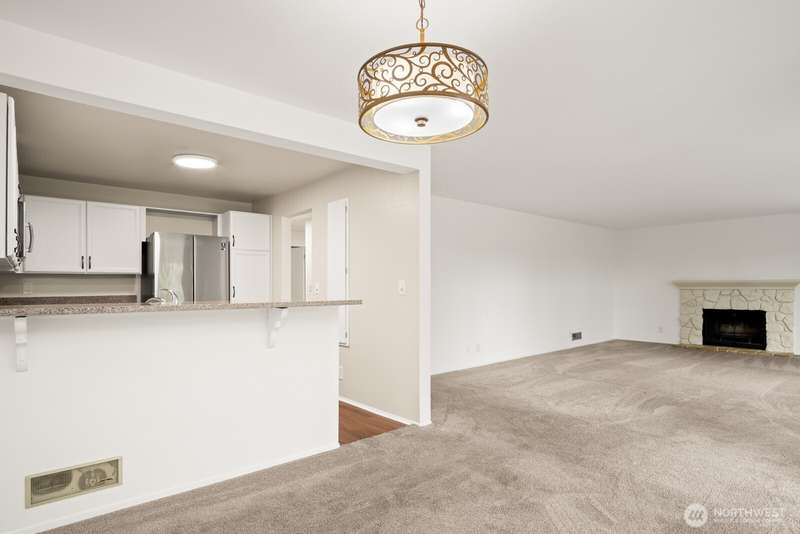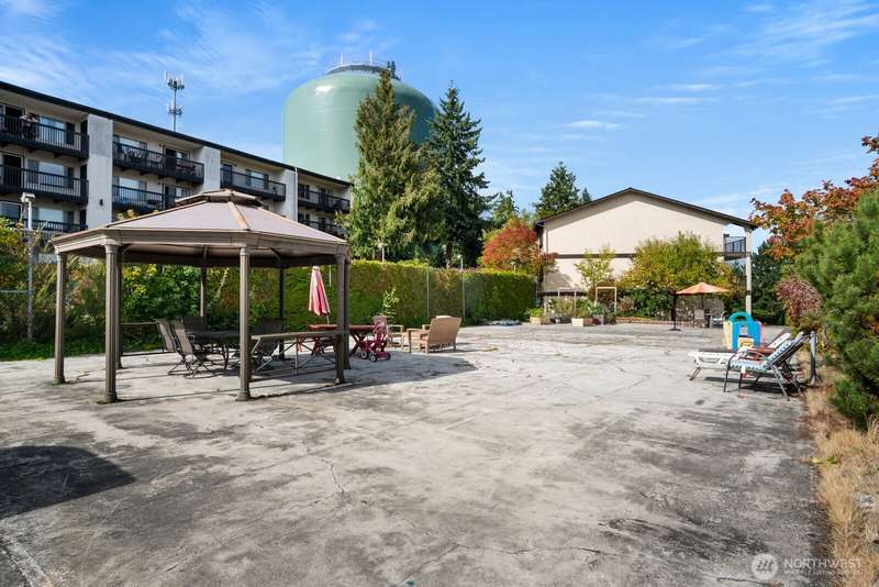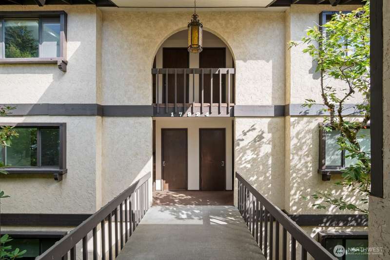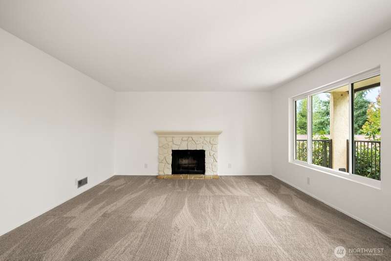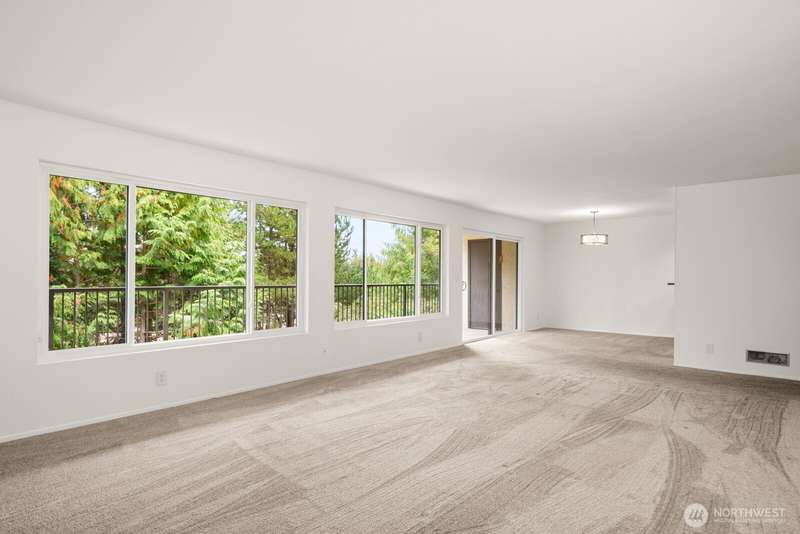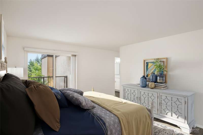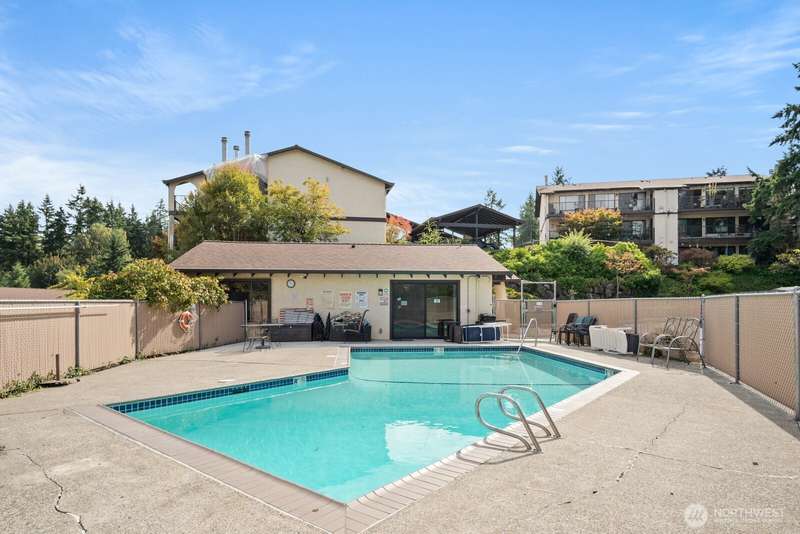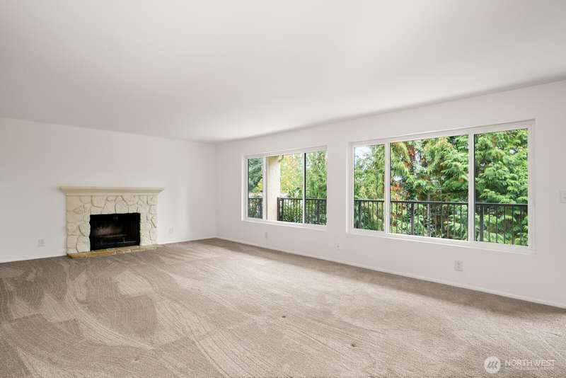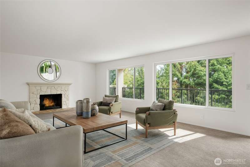 This light-filled condo offers it all!! The sun-drenched living space boasts a stone, wood-burning fireplace, open floor plan, & sprawling windows, perfect for entertaining. Right off the dining area you’ll find an impressively large, secluded balcony equipped w/ additional storage closet & wooded view. All three bedrooms as well as the rest of the unit are highlighted by fresh paint & LVP floors. The primary suite is your own personal oasis w/ ensuite bathroom, walk-in closet & a second, private balcony. Just steps away from the unit is access to the outdoor pool, common garden space & a renovated club house for large gatherings. This quiet complex is located in a quiet, dead end street conveniently close to I-5 and common amenities!