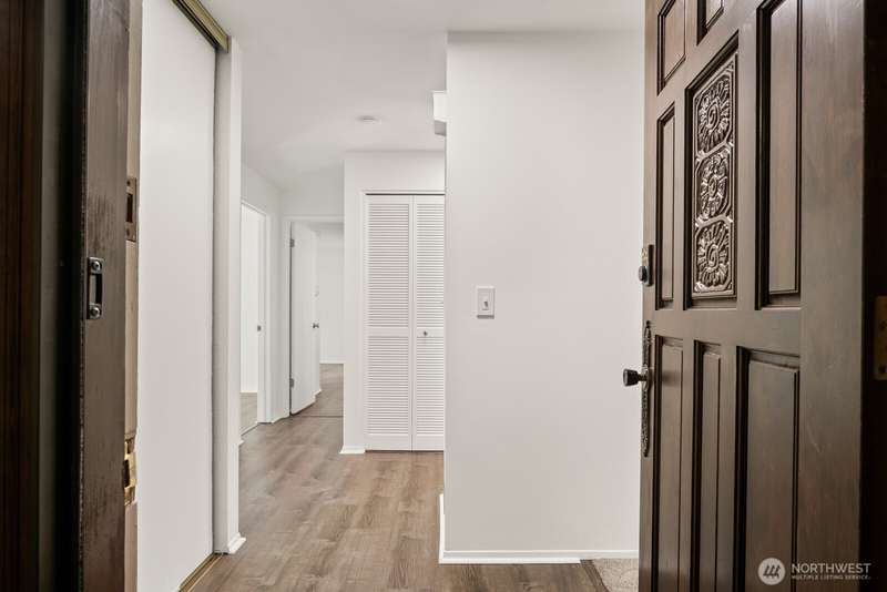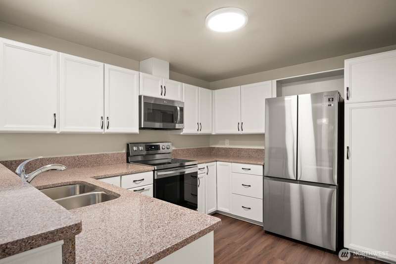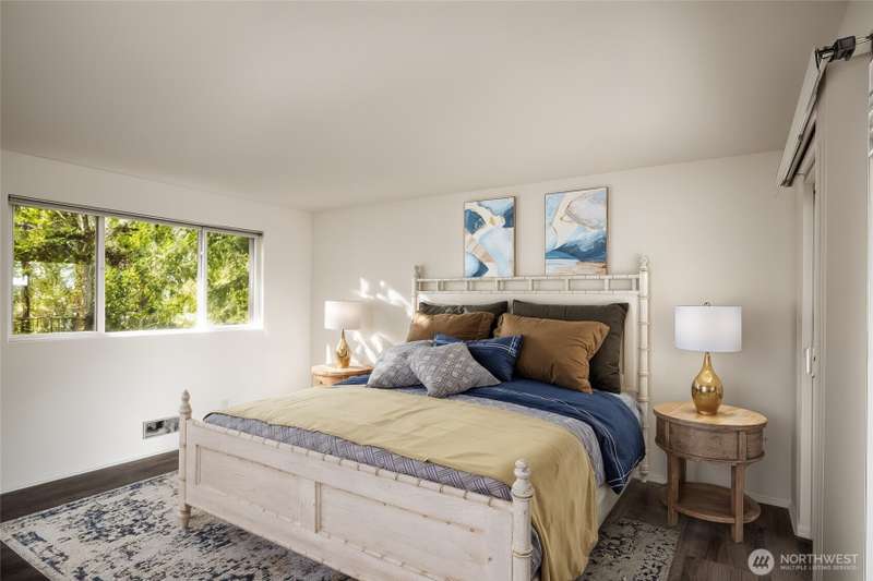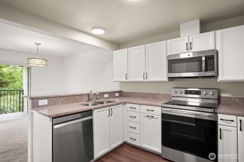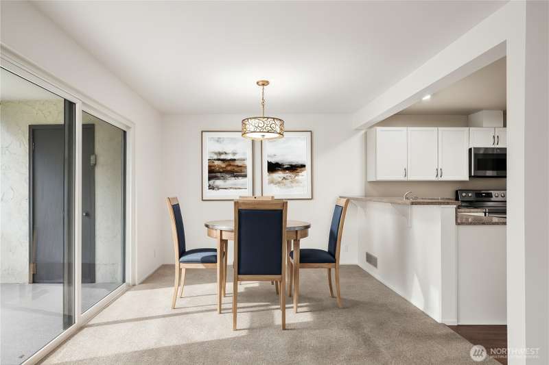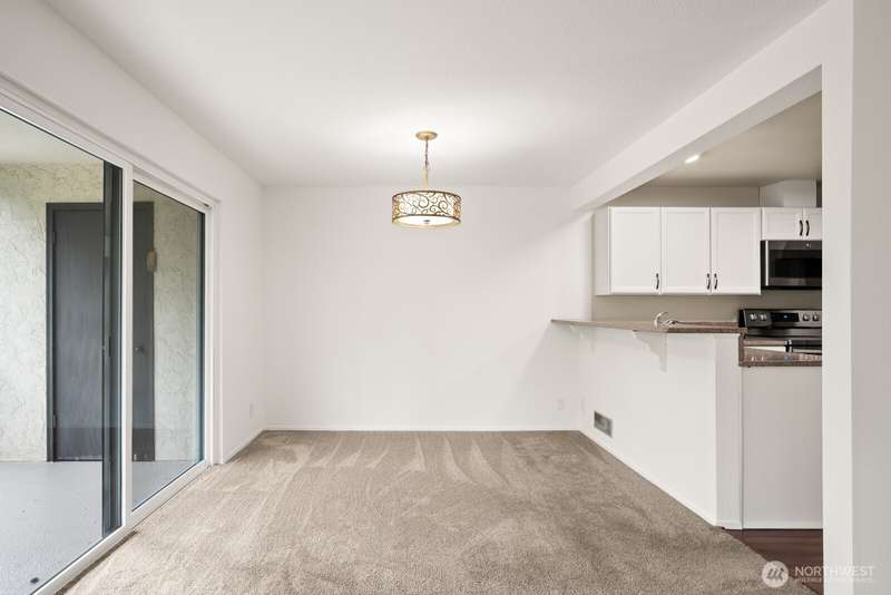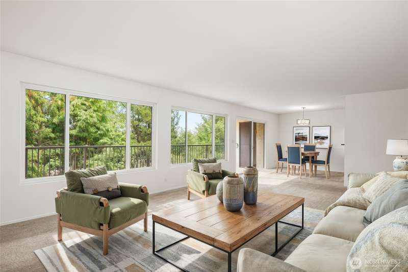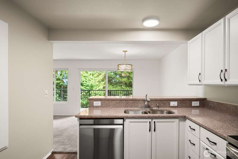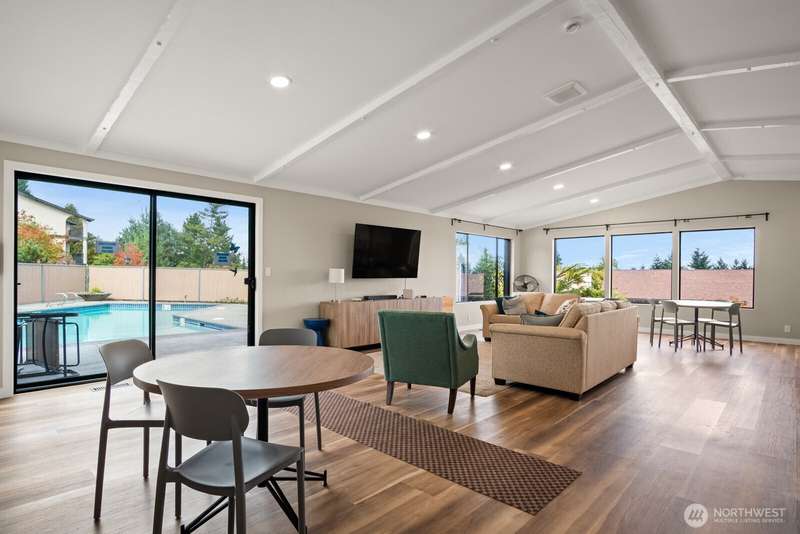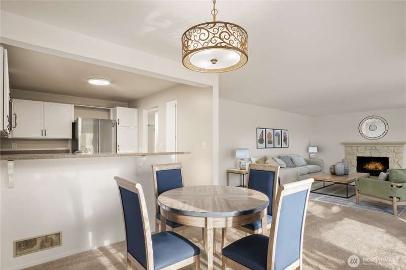 This light-filled condo offers it all!! The sun-drenched living space boasts a stone, wood-burning fireplace, open floor plan, & sprawling windows, perfect for entertaining. Right off the dining area you’ll find an impressively large, secluded balcony equipped w/ additional storage closet & wooded view. All three bedrooms as well as the rest of the unit are highlighted by fresh paint & LVP floors. The primary suite is your own personal oasis w/ ensuite bathroom, walk-in closet & a second, private balcony. Just steps away from the unit is access to the outdoor pool, common garden space & a renovated club house for large gatherings. This quiet complex is located in a quiet, dead end street conveniently close to I-5 and common amenities!