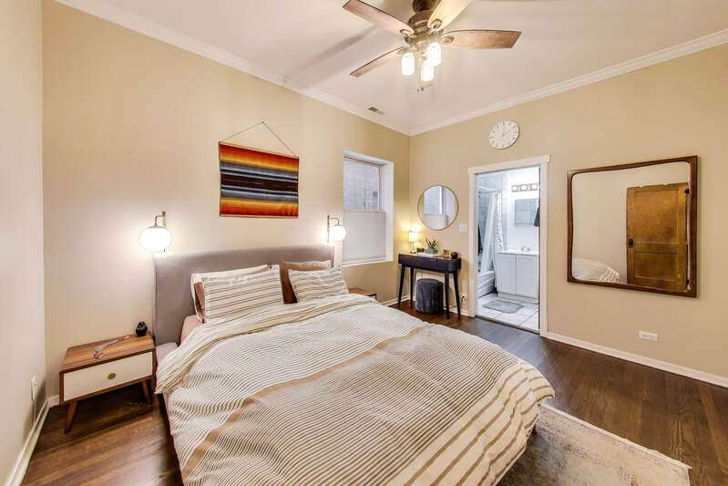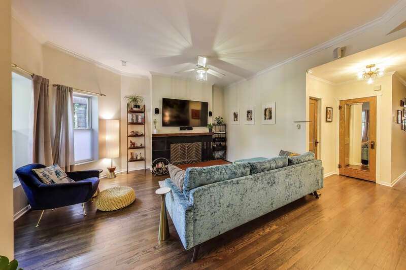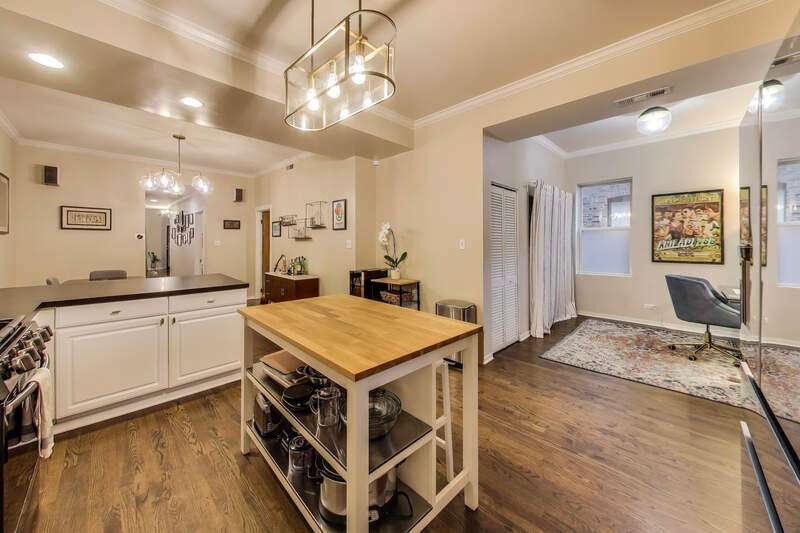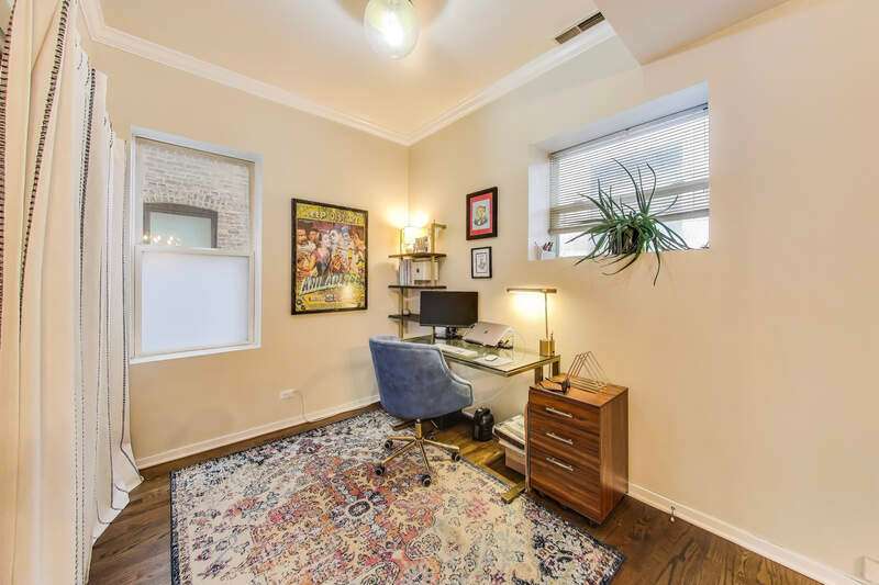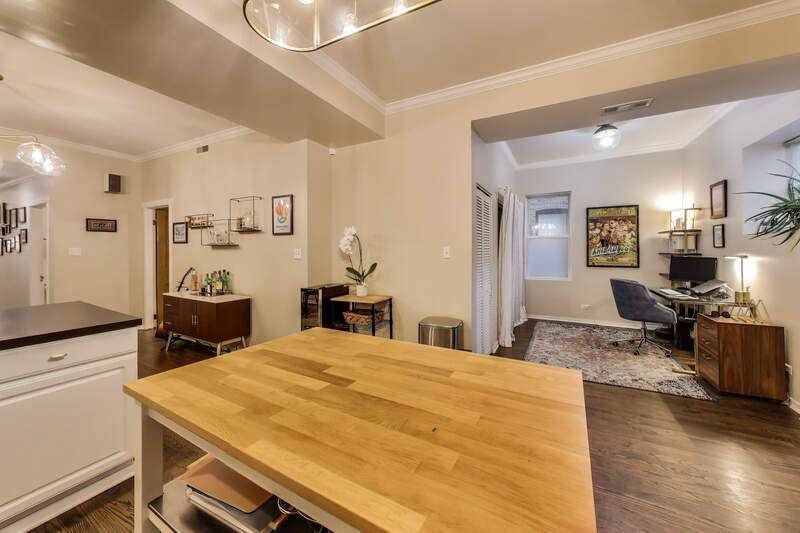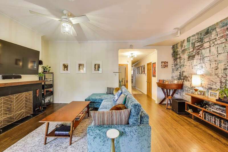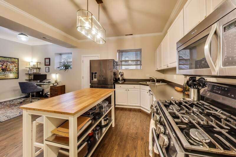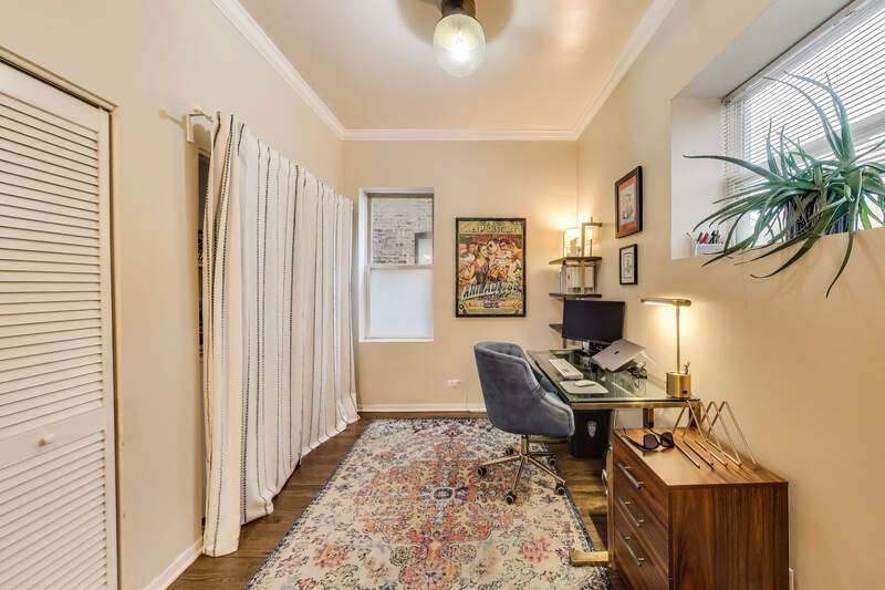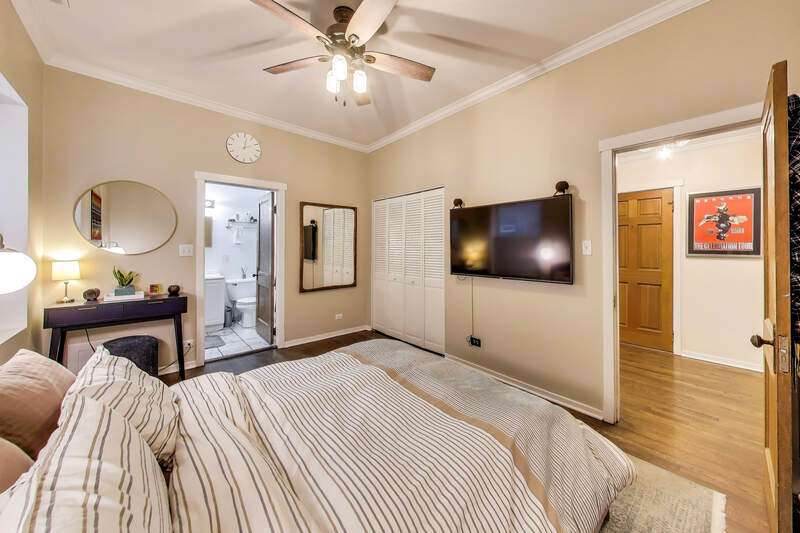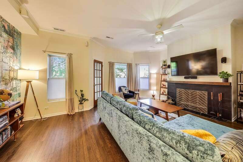 Expansive 2 bed plus den/2 bath unit is a perfect combination of vintage charm and modern amenities in the heart of Sheridan Park. Far from your cookie cutter condo, this space features unique features such as a wood-burning fireplace, separate living and kitchen/dining spaces, a rare private front entrance and two private outdoor spaces. Generous sized kitchen with attached dining offers the perfect open concept space to entertain. Modern essentials include primary ensuite, full size in-unit laundry, central HVAC and hard-wired speaker system for multi-room audio throughout. The den space is both spacious and versatile offering options for a home office, play room or breakfast area. Amazing location in rapidly appreciating Sheridan Park, close to Red Line and a quick hop to nearby Andersonville, Ravenswood and the lake. Super easy street parking and additional storage included. Welcome home!