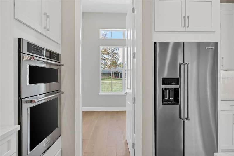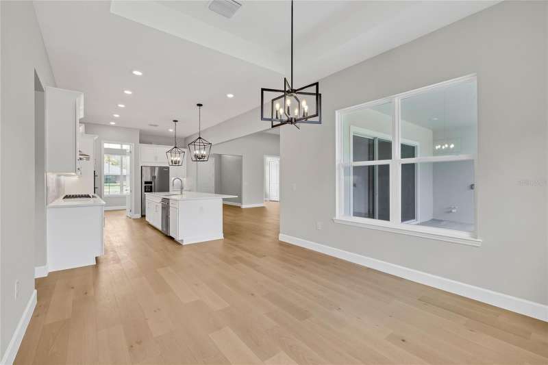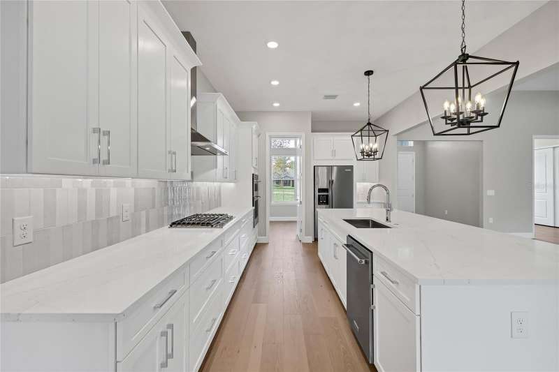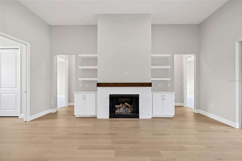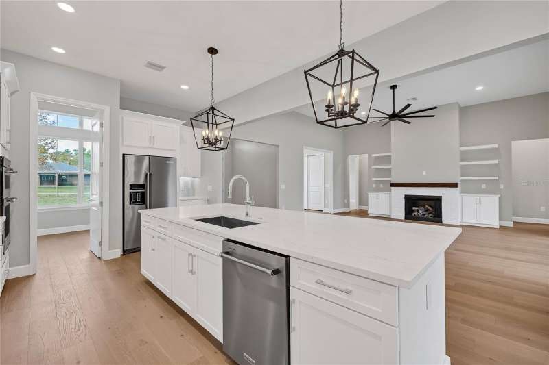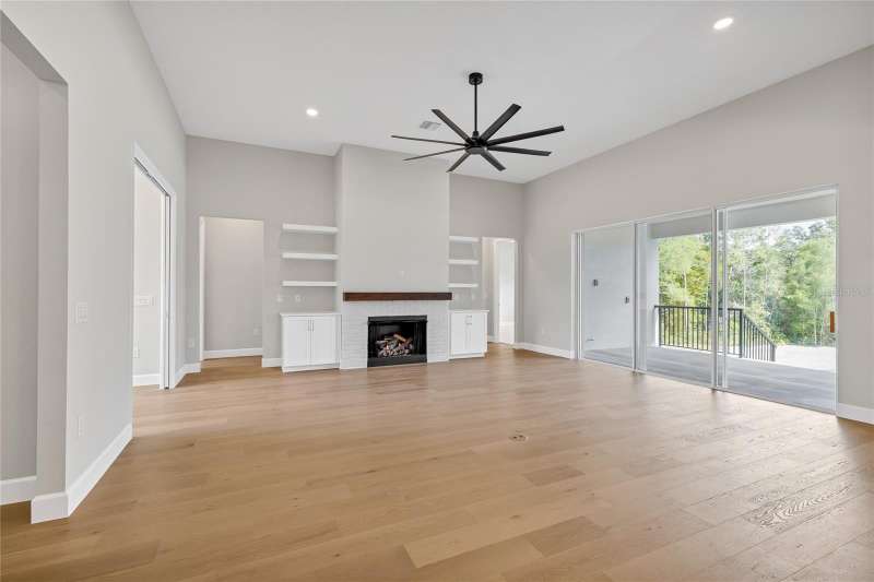 Welcome to 55 Hazlewood Road, a stunning custom-built home completed in 2025 and perfectly situated on 1.47 acres in the highly sought-after Orlandia Heights neighborhood of Debary. This property offers the perfect blend of modern luxury and private, tranquil living. Step inside this 4-bedroom, 3.5-bathroom home boasting 2,898 sq. ft. of thoughtfully designed living space. The open floor plan features a ventless gas fireplace, engineered hardwood floors, and an abundance of natural light. The gourmet kitchen is a true showstopper—complete with quartz countertops, a large island, premium KitchenAid appliances, an oversized pantry, and ample cabinetry. The luxurious primary suite includes a spacious walk-in closet and a spa-like bathroom with elegant finishes. Two additional bedrooms are ensuite, offering comfort and privacy, while the fourth bedroom provides flexibility as a home office or guest space. Enjoy peaceful views from the covered back patio, overlooking the cleared lot and surrounding trees—the perfect setting for relaxing or entertaining. An oversized 1,100 sq. ft. three-car garage provides plenty of room for vehicles, storage, or hobbies. The home is pre-plumbed for an outdoor kitchen and pool/spa and pre-wired for an outdoor barn, offering endless possibilities for future outdoor living. Every detail has been carefully considered in this one-of-a-kind home. Experience serene living in one of Debary’s most desirable communities—55 Hazlewood Road is truly a place to call home.