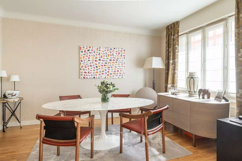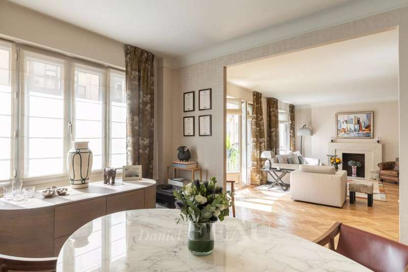 Off Market. Quai d’Orsay. This tastefully renovated apartment offering 94.13 sqm of living space in mint condition is on the 3rd floor of a luxurious mid 20th century building with a lift. Benefiting from a compact floor plan, it includes a 30 sqm living/reception room opening onto a fully south-facing balcony, a 14 sqm dining room, a kitchen, a bedroom, a shower room with a wc, and a guest wc. The dining room could create a second bedroom if required. With a cellar. Residents benefit from access to a roof-terrace commanding a stunning view of the capital.