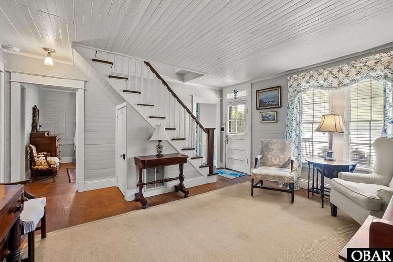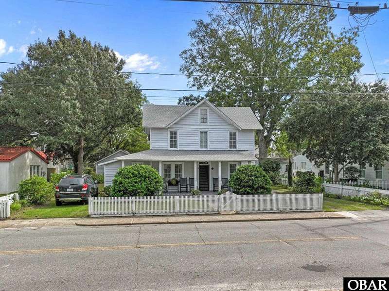Historic Manteo home with over 100 years of memories. Originally a small Victorian home that has evolved with the years. The garage was added to the east side of the property in 1925. The later the home had an extension off the back (1997). This allowed for a modern kitchen with open living and dining area. The property extends to Agona St. This provides a garden escape with a fire pit sitting area and plush grass lawn for privacy and relaxation. All of this combines the old an new seamlessly. The interior finishes are done to keep the historic feel with the modern convenience. with one bedroom down and three up there is room for the family and guest. If you are looking for a home with character, look no more.