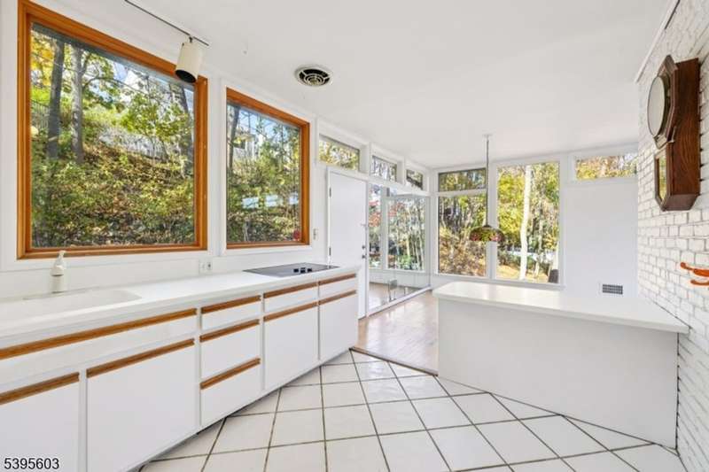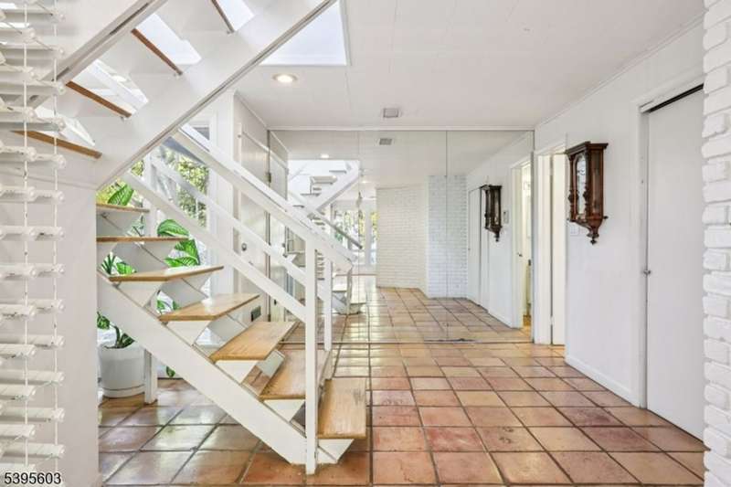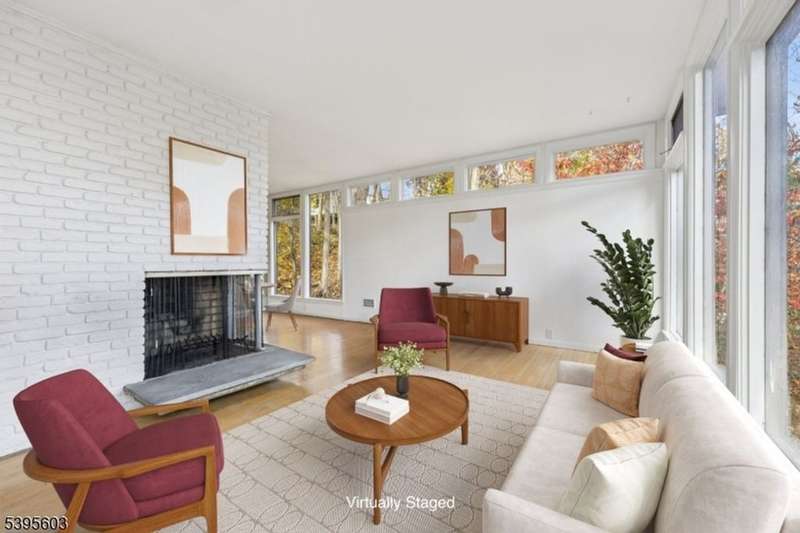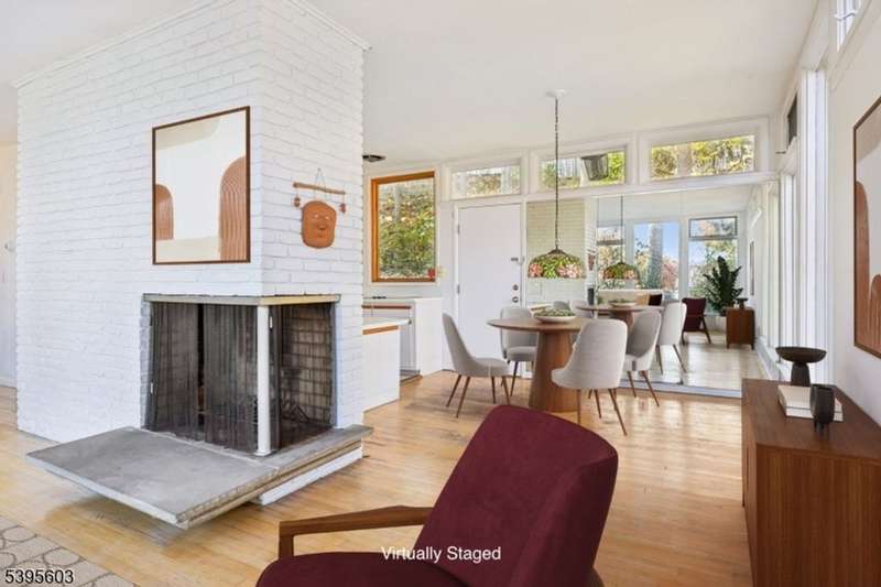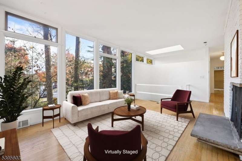 This striking custom-designed residence offers an exceptional blend of architectural character and modern potential, all on an oversized lot! The main level features soaring windows in the living room, dining room, and kitchen, filling the home with natural light and seamless connection to the outdoors. The spacious primary suite includes a large walk-in closet and custom shutters and built-in makeup vanity for both comfort and privacy. With two fireplaces one on each level and full bathrooms on both floors, the home is perfectly suited for entertaining. The walkout lower level opens to a patio and expansive yard, creating an ideal setting for gatherings. A covered carport adds convenience, while the large lot provides both privacy and space. This home is ready for a buyer's finishing touches to perfect its unique details and finishes. Conveniently located near restaurants, shopping, schools, public transportation, houses of worship, and jitney service, this property offers both style and practicality in a prime location.