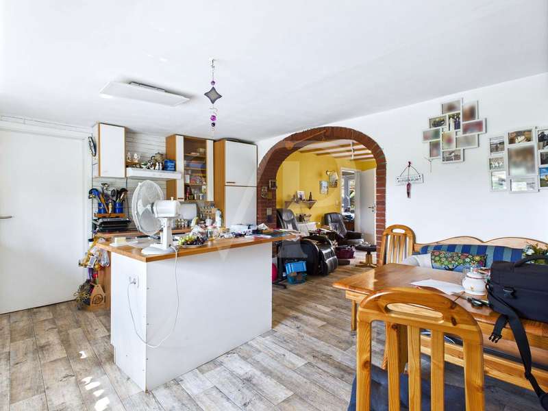 This charming home in Großefehn not only offers plenty of space in the house itself, but also in the countryside if desired: there is also the option of acquiring a directly adjacent pasture area of approx. 13,480 m² for €25,000. This opens up ideal conditions for animal husbandry, garden projects or simply spacious living with a view. The house was originally built in solid construction and extensively modernized in 2018. Among other things, a new gas heating system was installed, power lines and sockets were renewed, a cement floor was poured over freshly laid pipes and doors, frames and some of the floors were renewed. A lot was also invested in the outside area: a spacious three-part carport was built, drainage pipes were laid and the paths and forecourt were paved. Particularly noteworthy is the conversion of the former hayloft with six Velux windows - there is still room for design here, while the roof and floor have already been insulated. The house is divided into two residential units, which allow both communal living and a possible rental. On the first floor, you will find a cozy living unit with two bedrooms, a bathroom and an open kitchen that flows seamlessly into the bright living room. From here you can access the summer garden, which is a place to relax at any time of year. The pantry adjacent to the kitchen is practical, as is another small bathroom, which is directly connected to one of the bedrooms. The entrance area also leads into a workshop with direct access to the adjoining barn - ideal for craftsmen or hobby projects. A laundry room completes the space on this level. A staircase on the right-hand side of the house takes you to the upper floor, which is currently being renovated and therefore offers plenty of space for individual ideas. A spacious area for the kitchen and living room opens up here and leads to a bedroom and a bathroom. Thanks to the already installed skylights and the existing insulation, a bright and expandable living area is created, which can be designed according to your ideas. The outdoor area impresses with a spacious garden that offers plenty of room for families, leisure activities and relaxing hours in the countryside. The property is complemented by the practical driveway, the carport and the covered connection to the stables. This house combines living quality on the first floor with design freedom on the upper floor, offering an ideal blend of comfort, individuality and potential.