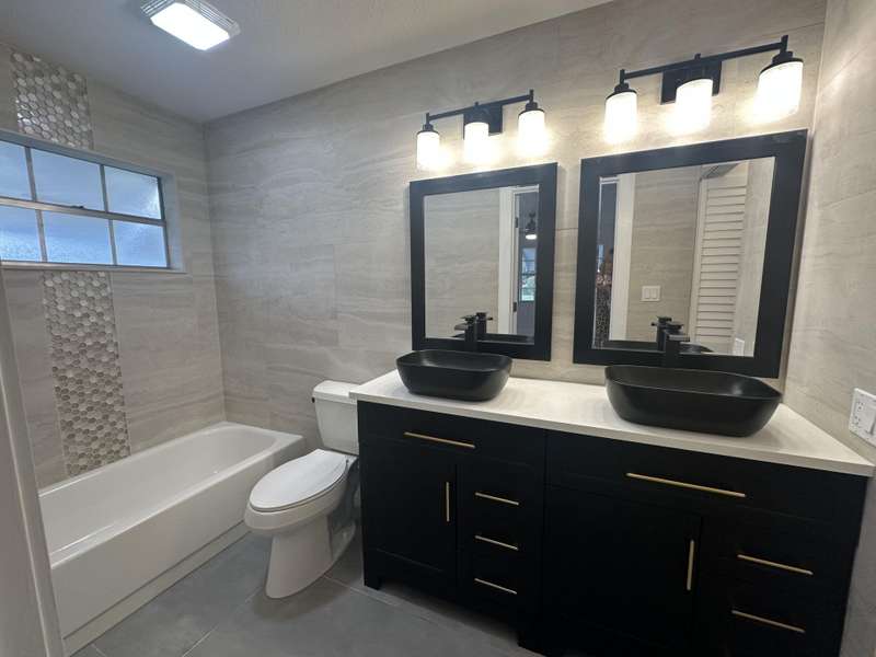 SPECTACULAR BRAND-NEW TOP QUALITY EVERYTHING RENOVATION. THIS END UNIT HOME WITH TONS OF NATURAL LIGHT, WAS REMODELED FOR FAMILY, WHOM BECAUSE OF HEALTH REASONS CANNOT MOVE IN. STEP INTO UBER-LUXURY WITH A 19 KITCHEN, WHIRLPOOL APPLIANCES, QUARTZ COUNTERS, TILE BACKSPLASH, FLOATING SHELVES & MUCH MORE! PORCELAIN 2X2 TILE EVERYWHERE INCLUDING2X4 TILES ON EVERY WALL IN BOTH BATHROOMS! IN UNIT WASHER/DRYER VESSEL SINKS DECOR TILES. FRONT & BACK ENTRY DOOORS NEW. FRESH PAINT THROUGHOUT. PICS DO NOT DO THIS STUNNING HOME JUSTICE! REPLACED IN LAST 2-3 YEARS:A/C, HEAT, ROOF, HOT WATER HEATER EVERYTHING ELSE BRAND NEW! DONT WAIT, THIS WILL SELL VERY FAST. NOTHING OF THIS QUALITY ANYWHERE NEAR THIS PRICE!HOA FEE 569.00 COVERS WATER, TRASH ,EXTERIOR & ROOF MANT., & GUARD GATE. NEW ROOF-2023!