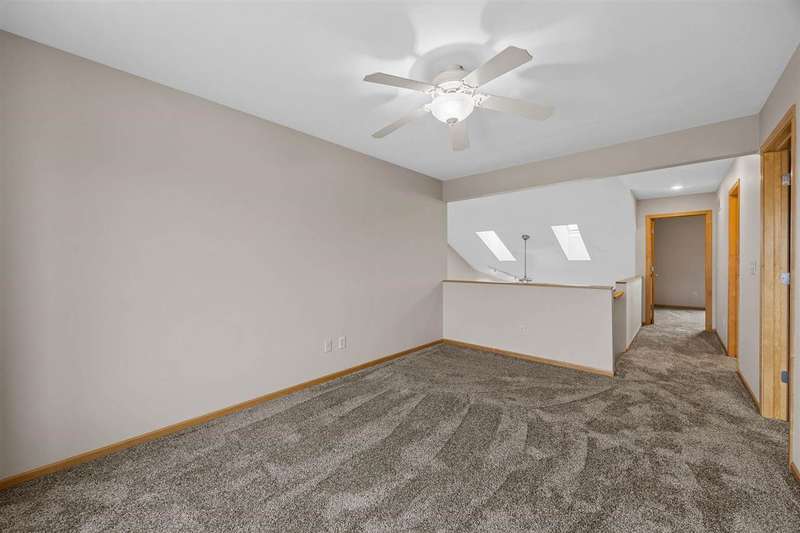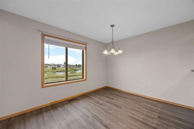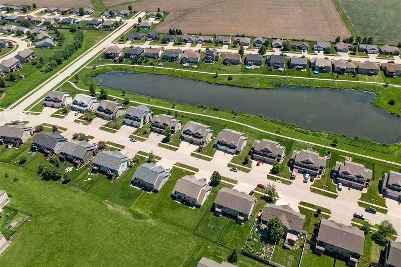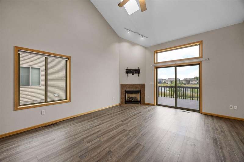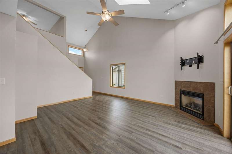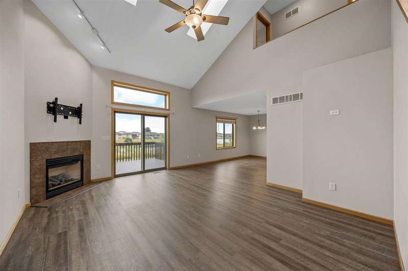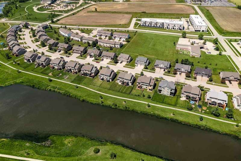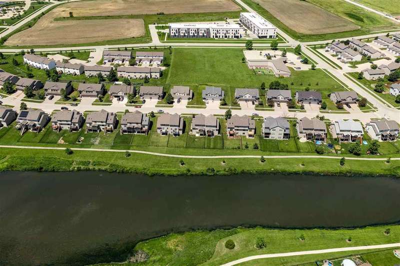 Zero-lot home with over 2,000 sq ft in a desirable neighborhood overlooking West Lake in North Liberty. Main level features vaulted ceilings, abundant natural light, LVP flooring, gas fireplace, and access to a composite deck with stairs to the yard. Upstairs offers 2 bedrooms plus an office/nook area, with new carpet on the stairs, hallway, and nook. Home includes 3.5 bathrooms and blinds throughout. The walkout lower level provides an electric fireplace, freshly professionally cleaned carpet, and access to the fenced yard. Outdoor highlights include raised garden beds, firepit, and composite decking. Additional features: 2-car garage, water softener, and a roof approximately 4 years old.
