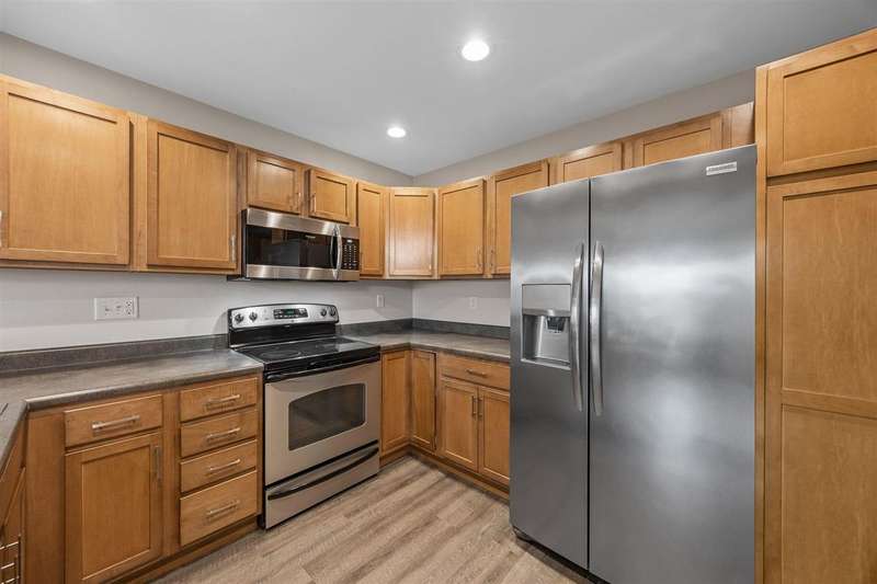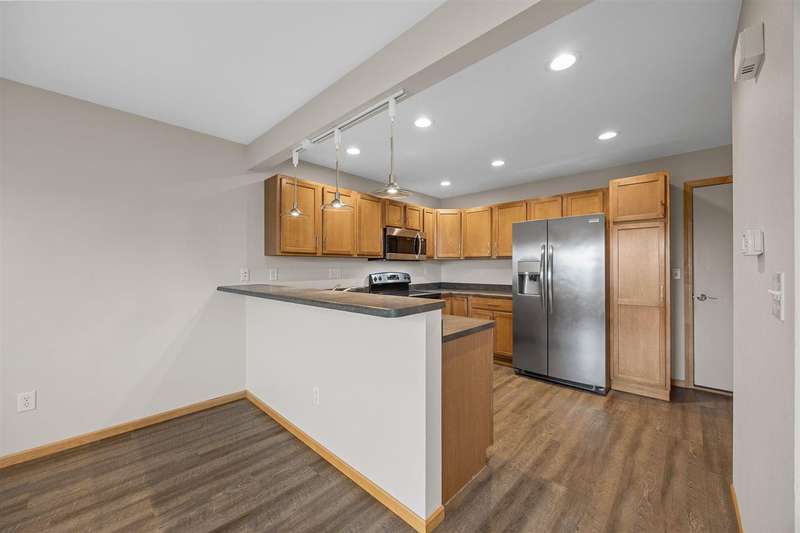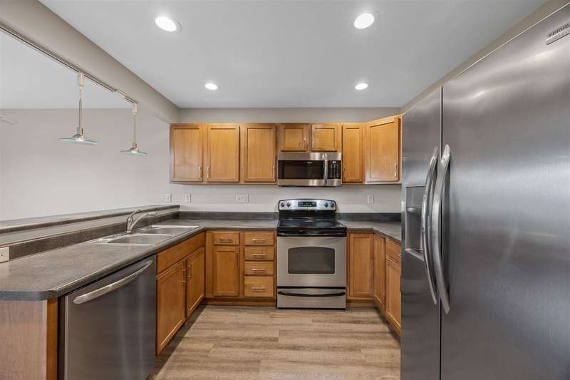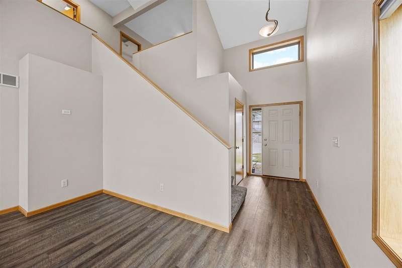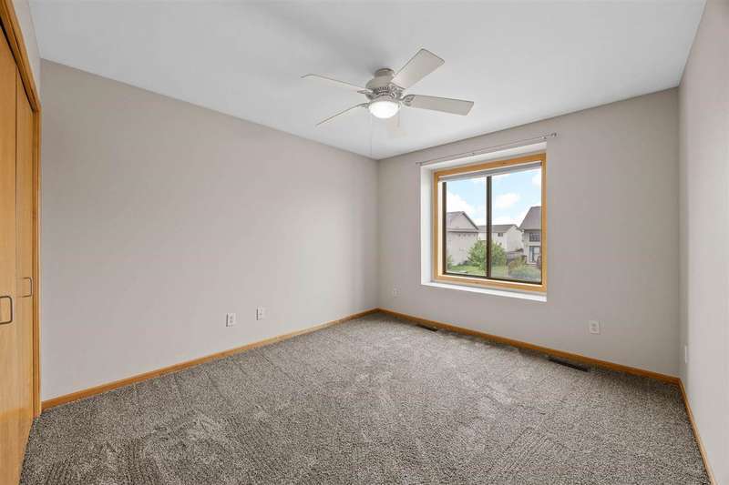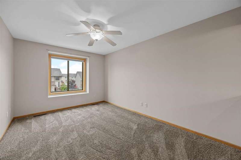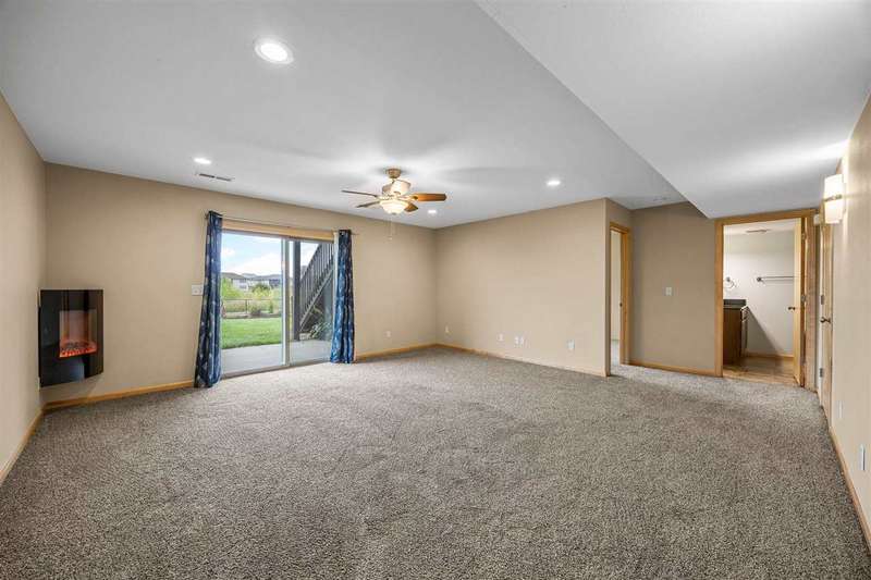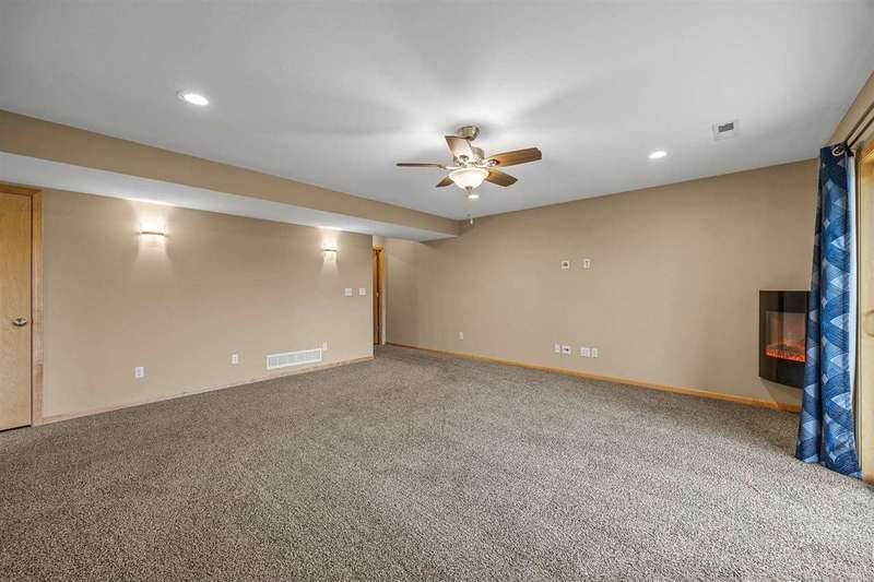 Zero-lot home with over 2,000 sq ft in a desirable neighborhood overlooking West Lake in North Liberty. Main level features vaulted ceilings, abundant natural light, LVP flooring, gas fireplace, and access to a composite deck with stairs to the yard. Upstairs offers 2 bedrooms plus an office/nook area, with new carpet on the stairs, hallway, and nook. Home includes 3.5 bathrooms and blinds throughout. The walkout lower level provides an electric fireplace, freshly professionally cleaned carpet, and access to the fenced yard. Outdoor highlights include raised garden beds, firepit, and composite decking. Additional features: 2-car garage, water softener, and a roof approximately 4 years old.