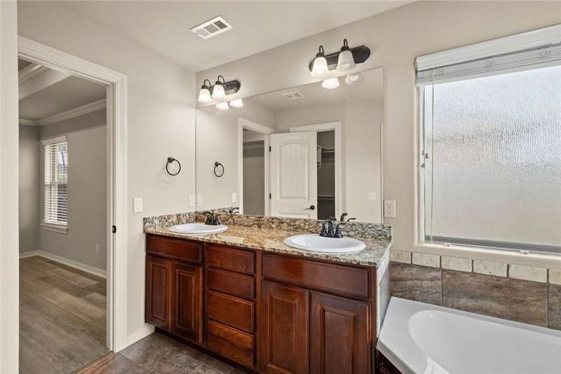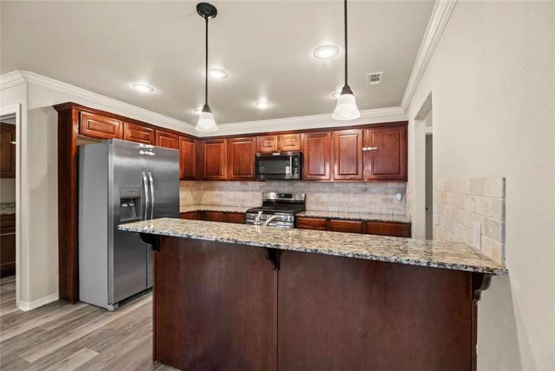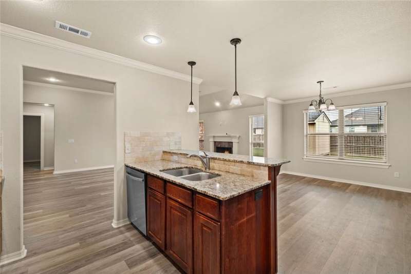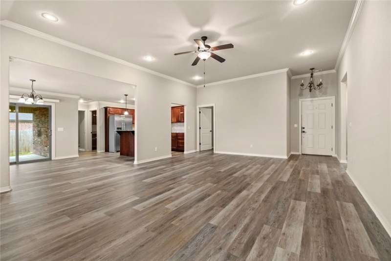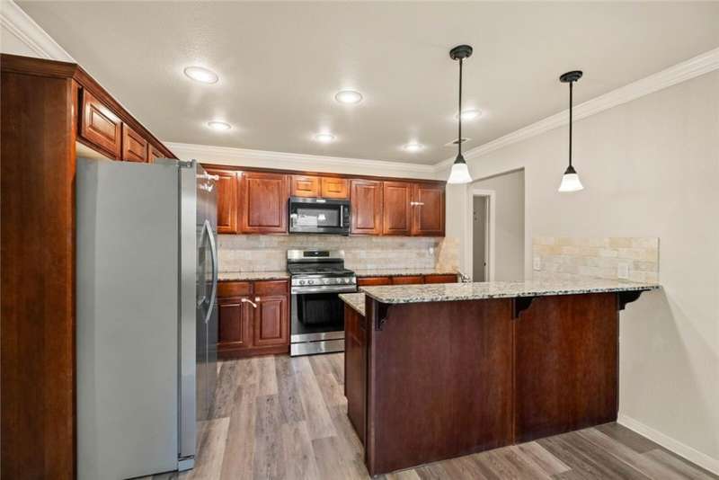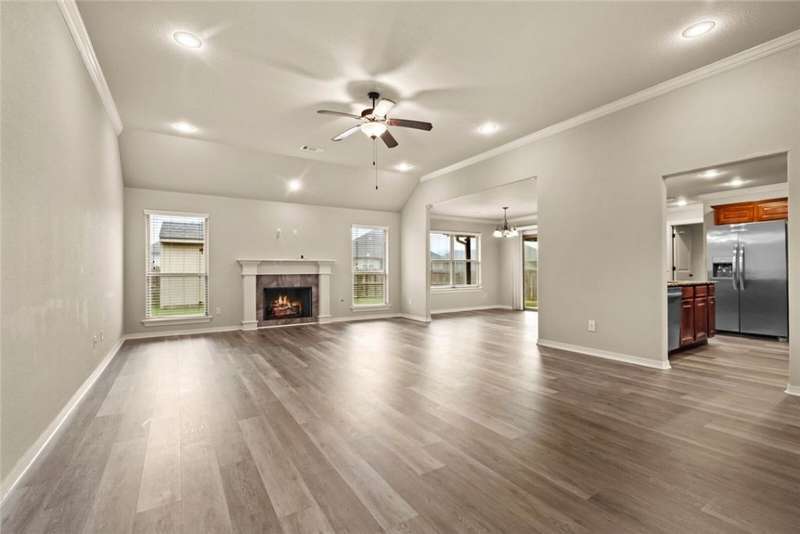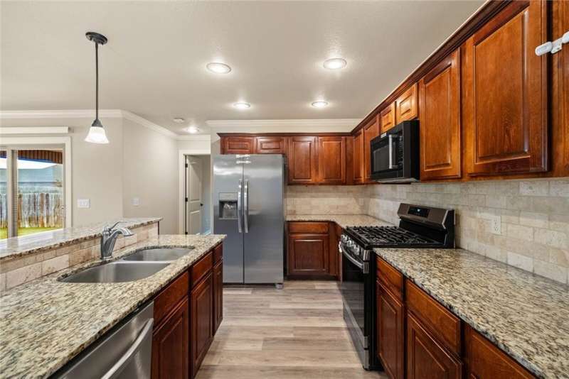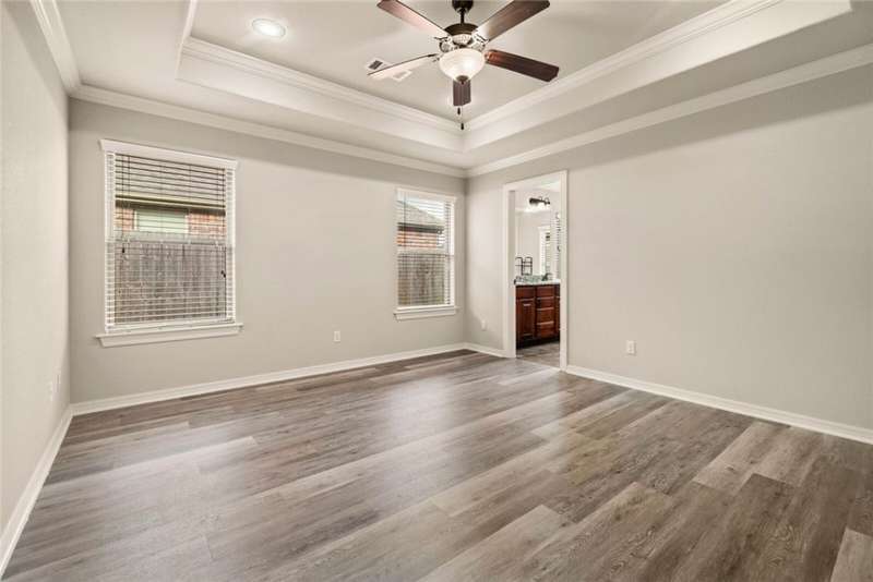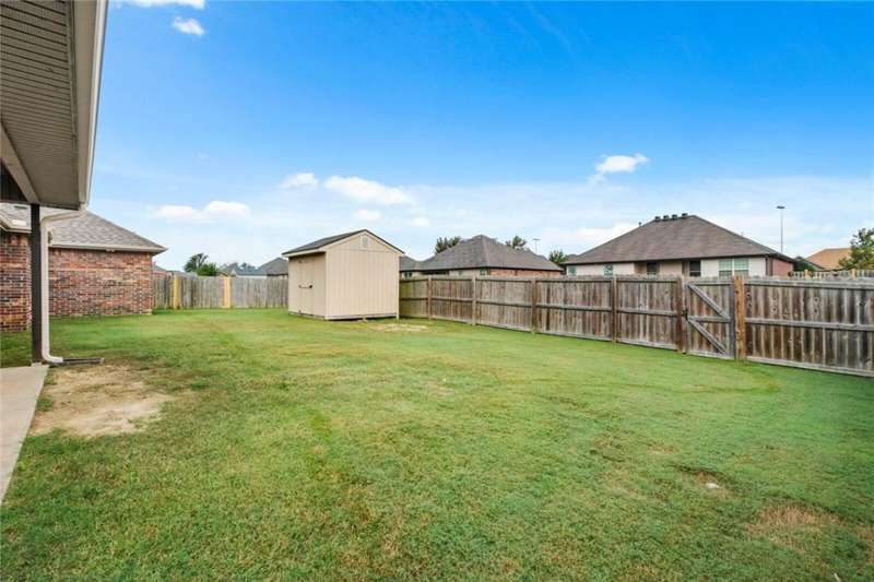 Location Location Location! Welcome home to this rare find of a 5 bedroom full brick home with a three car garage! All new paint in Oct 2025, New LVP flooring throughout Oct 2025. New Roof! Living room boasts soaring ceilings with recessed lighting, spaciously accented with gas log fireplace brick,and crown molding trim. Large Kitchen with Granite countertops framed with elevated bar seating. Stainless appliances: Range includes gas cooktop with convection oven, microwave above stove. Primary suite has dual vanity, corner whirlpool, walk in separate shower. large lot with covered patio and wood privacy fencing. Conveniently located near Har Ber High school, multiple restaurants, pharmacy, Tontitown winery and more. Priced to sell Washer, Dryer, Refrigerator can be negotiable with a full price offer.