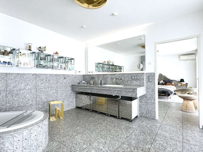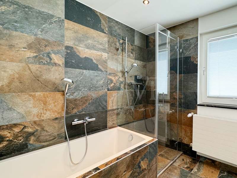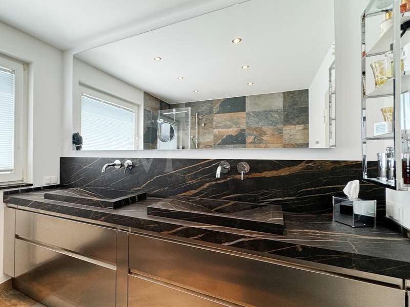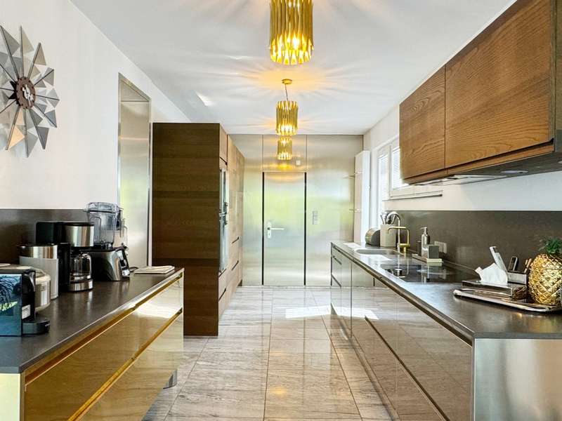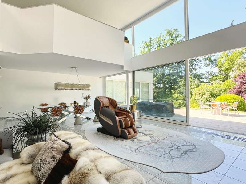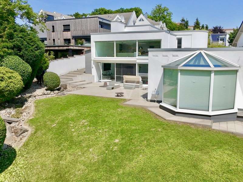 A rarity in the first row above the Bottigtal - Friedrichsdorf-Seulberg! Precious natural materials and modern building technology form an incomparable symbiosis in this impressive Bauhaus-style villa, whose architecture conveys lightness and a floating effect. The result: a luxurious home to feel at home in, equipped with every conceivable detail to make living an experience. Large glass fronts, granite stone and stainless steel - these are the basic elements that are stylishly reflected in and throughout the house and create a unique atmosphere reminiscent of a vacation in a luxury hotel. As soon as you enter the property, you can see the perfect staging of the various areas - the entrance in absolute privacy, the various entrances to different living areas, the park-like outdoor area with several terraces and a beautiful view directly into the Bottigtal nature reserve and, of course, a very spacious interior with various possible uses. The cozy lounge area with fireplace in front of the open-plan living and dining area and the versatile seating on the various terrace areas impress with their spaciousness, as the floor-to-ceiling, large windows facing the garden allow the indoor and outdoor areas to merge seamlessly. The modern designer kitchen with adjoining cold room and dining area in front leaves nothing to be desired, even for professional chefs, while also providing a cozy atmosphere for social gatherings with family and friends. The high-quality granite floors, which are not only found in the living area, are of timeless elegance and the best workmanship. Other areas on the garden level can be used in a variety of ways, including an indoor pool and whirlpool that have since been built over and could be reactivated with a little effort. A spacious home office or guest room with en-suite bathroom and the utility rooms are also located on this level. Another highlight on this floor is the inviting wellness area with sauna and floor-level rain shower. Two separate staircases lead to the second floor, where the gallery area and various bedrooms, offices, guest rooms and sports rooms with various bathrooms are spread over two wings. One of the bathrooms is adjoined by another sauna with a walk-in rain shower. Two staircases lead to the second floor, where various bedrooms, work and sports rooms with various bathrooms are spread over two wings. This underlines once again the versatility of the house, e.g. also as a two-family house (the individual living areas are already legally divided by a declaration of division). High hedges and walls all around the property ensure sufficient privacy and focus the view on the nature reserve directly in front of it with a magnificent view of the Bottigtal valley. The spacious double garage with adjoining parking spaces provides dry access directly into the house. This house can hardly be described, when would you like to experience it?