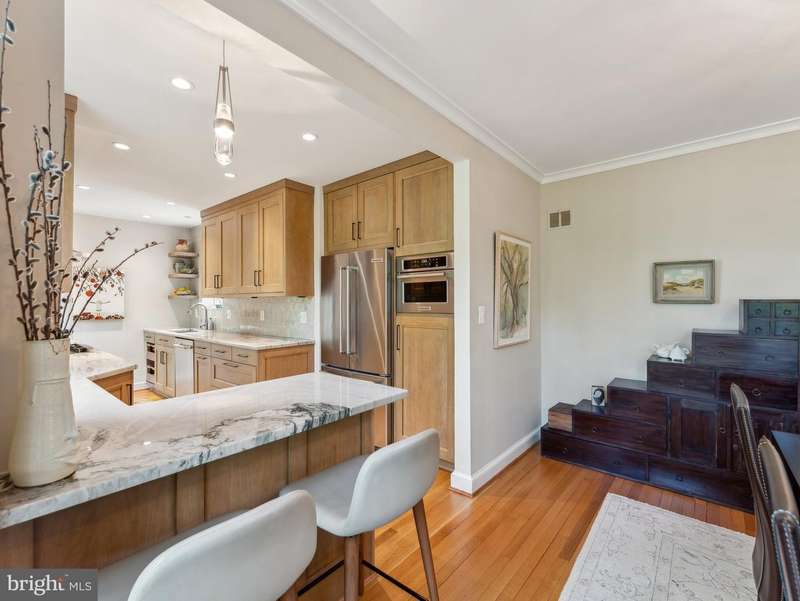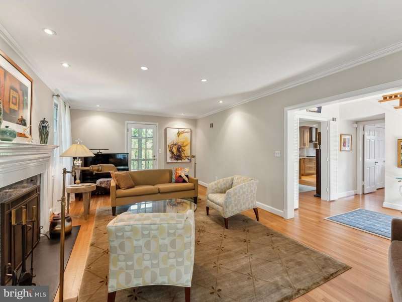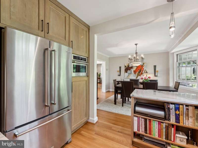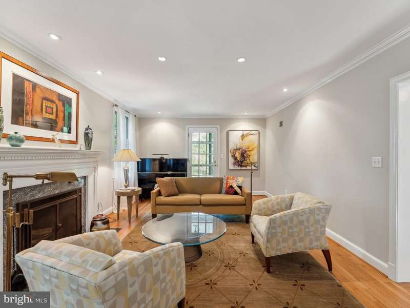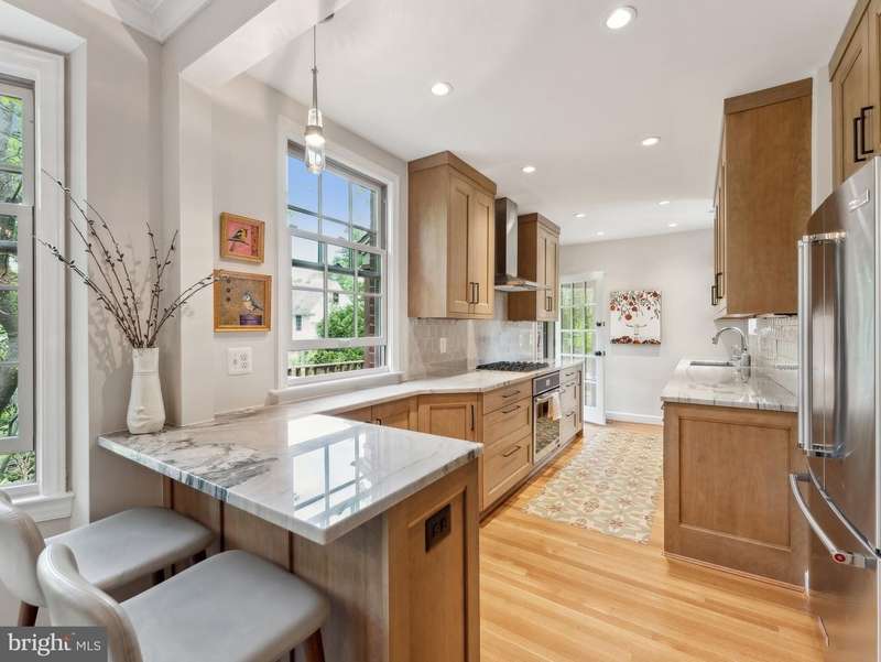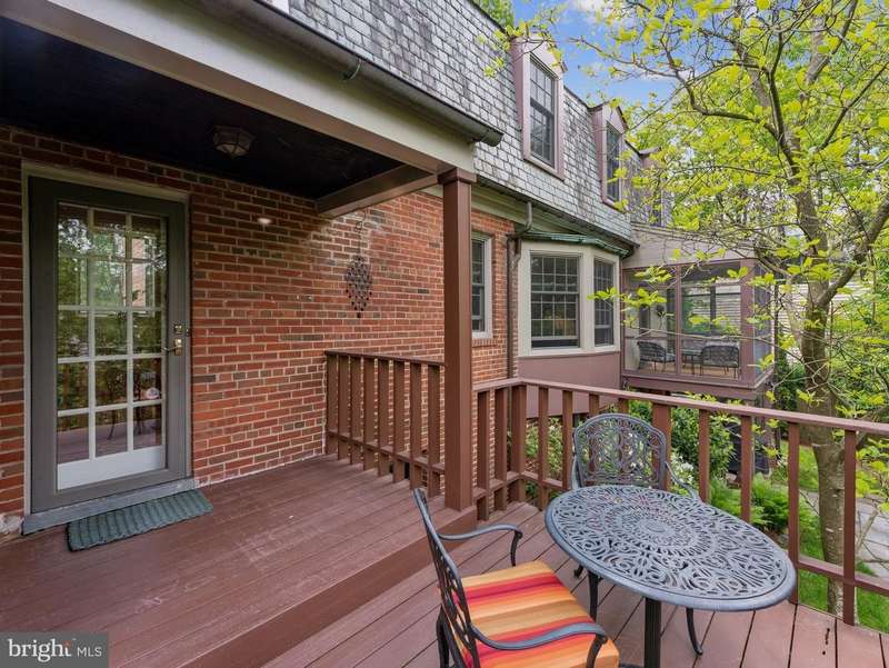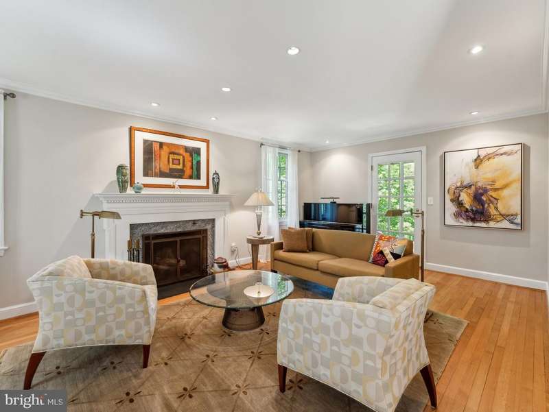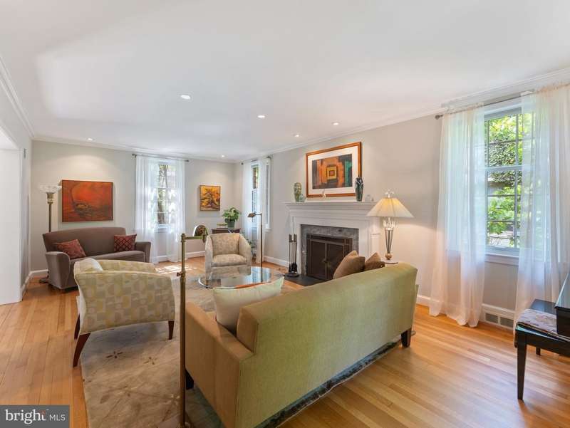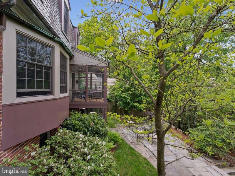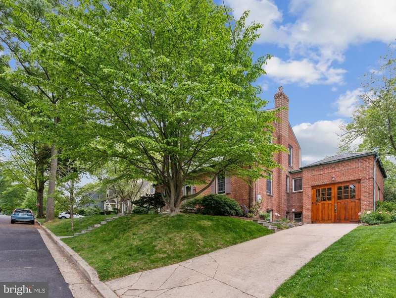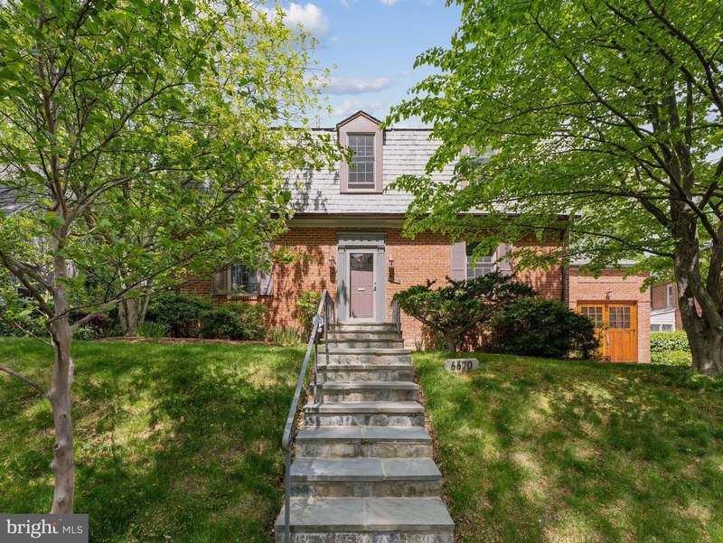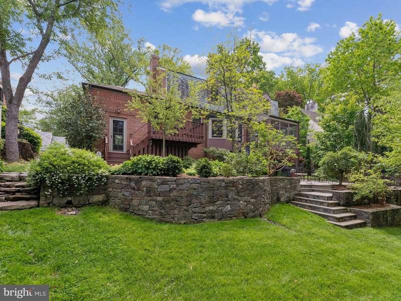 Nestled in the heart of picturesque Barnaby Woods, just steps from a tranquil Rock Creek Park tributary, this gorgeous 1939 Dutch Colonial perfectly blends timeless charm with modern comfort. Set on a quiet, tree-lined street, the home welcomes you with classic curb appeal and thoughtful updates throughout. Step inside the inviting entry foyer with coat closet and discover a spacious living room featuring a wood-burning fireplace and access to a serene rear screened porch, an ideal spot for morning coffee or evening relaxation. The dining area opens seamlessly to a chef's kitchen boasting custom walnut cabinetry, Brazilian quartzite countertops, a suite of stainless steel KitchenAid appliances, and a casual counter for two. A den or home office with powder room complete the main level. Upstairs, find three generous bedrooms and two full baths, including a renovated primary bath en suite with modern finishes. Pull-down attic stairs provide easy access to additional storage. The walk-out lower level offers a recreation room with a second fireplace, laundry area, storage/utilities, a fourth bedroom, and an additional powder room, perfect for guests or flexible living. Outside, the private rear yard is an oasis of calm with a deck, stone patio, lush lawn, and terraced stone walls. Adding to the home's appeal is the garage-turned-artist studio, featuring cathedral ceilings, abundant natural light, barn doors, and its own heating and cooling system; a dream space for creatives, remote work, or hobbies. A rare find in one of Northwest DC's most sought-after neighborhoods, 6670 32nd Street NW offers timeless architecture, versatile living, and a peaceful setting just moments from parks, shops, and city conveniences.