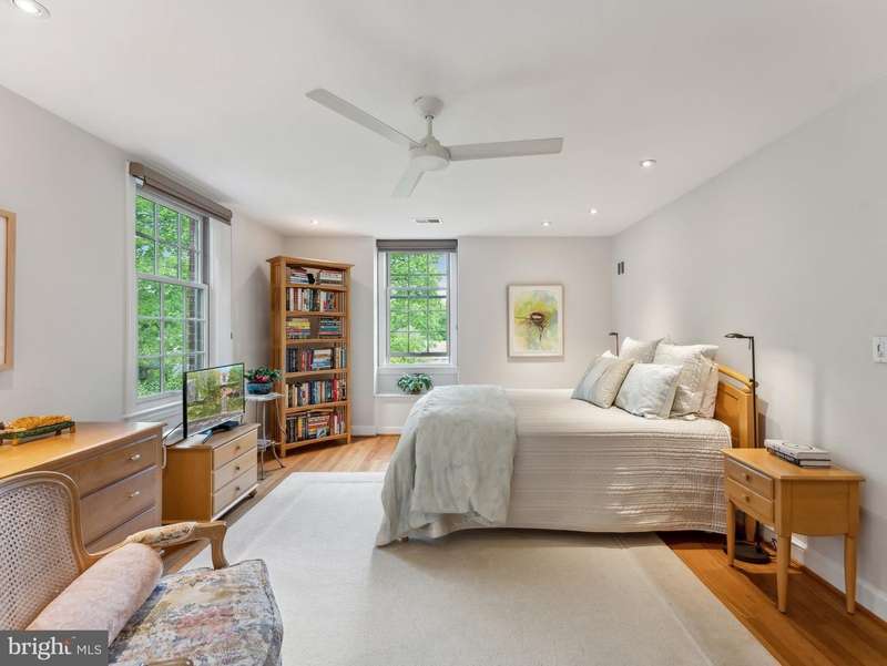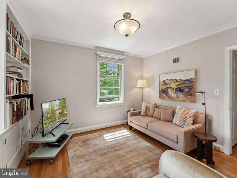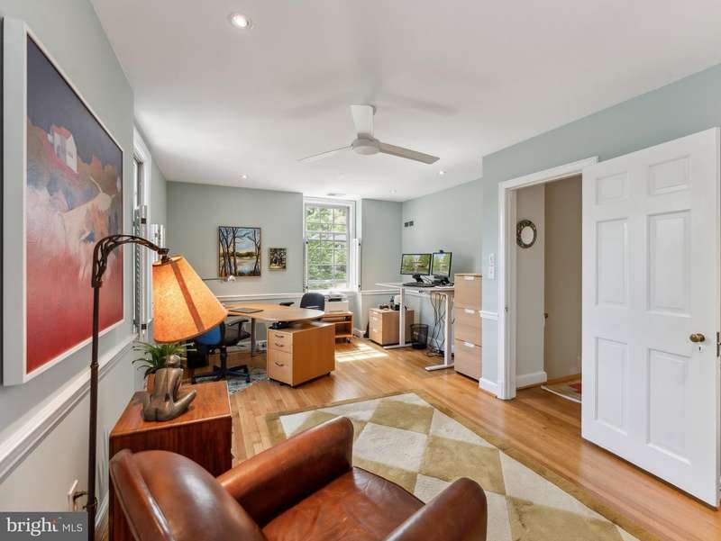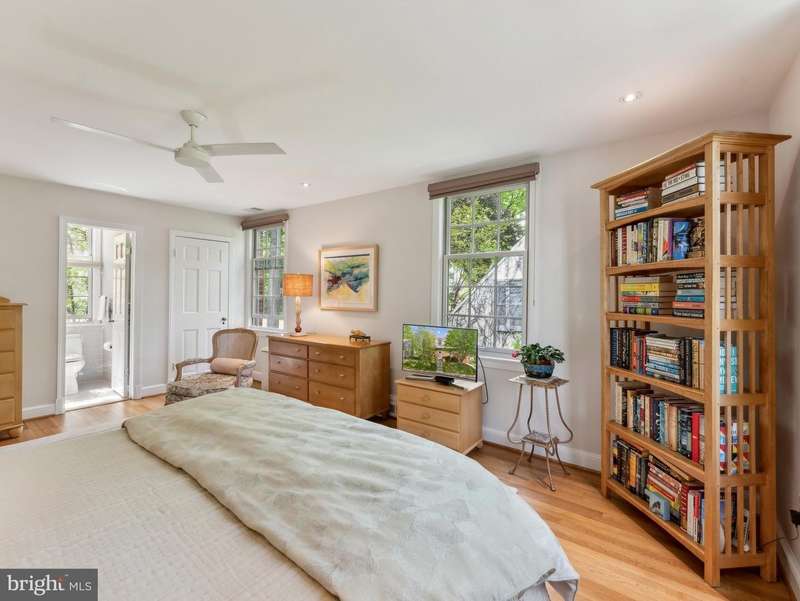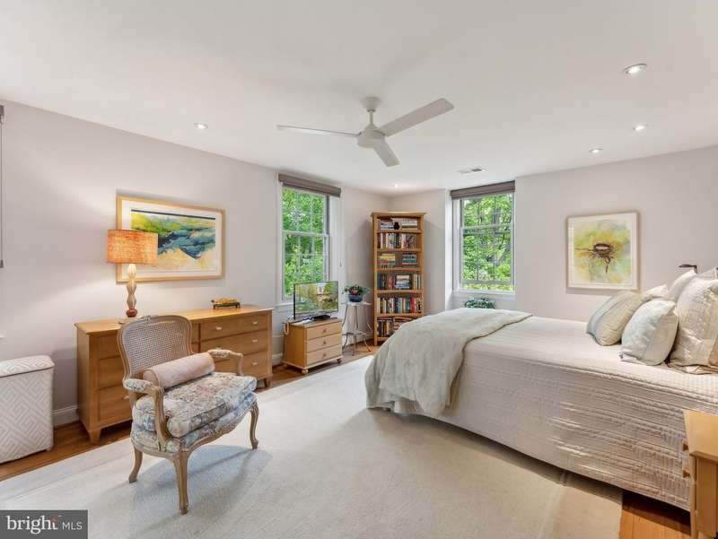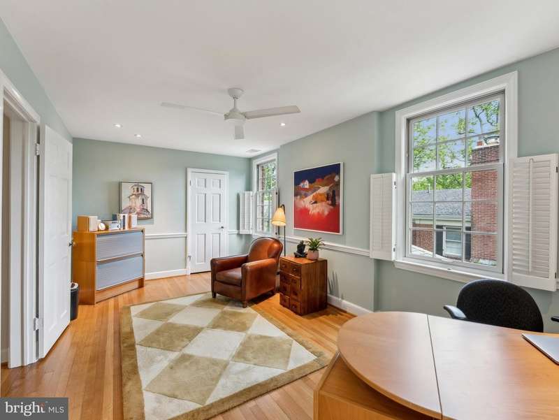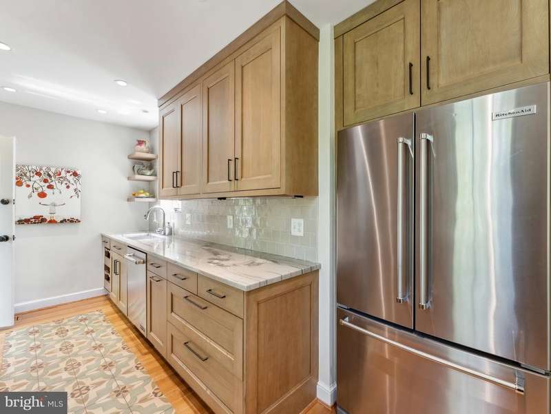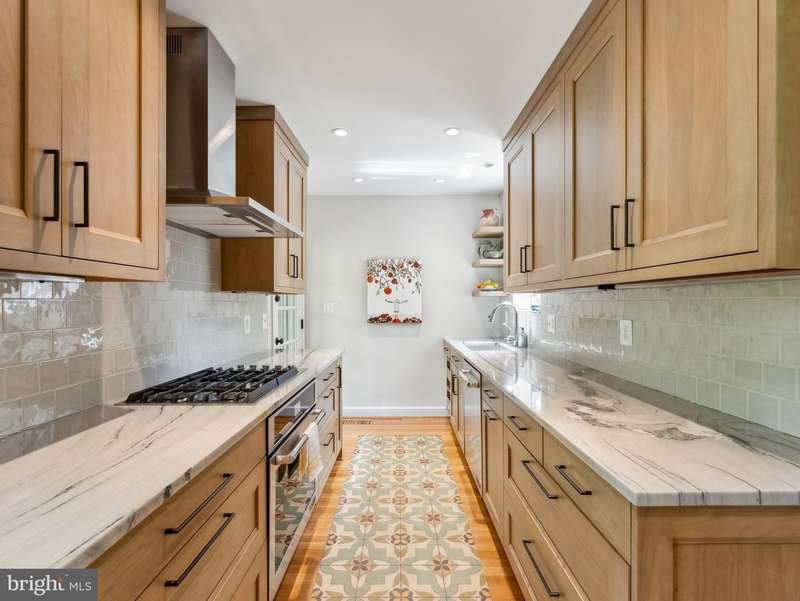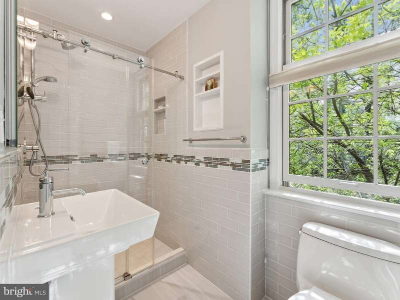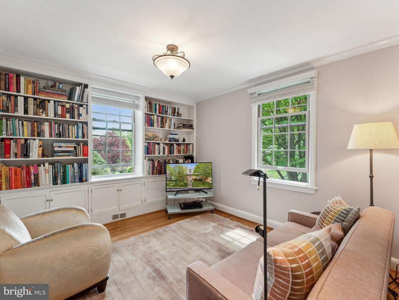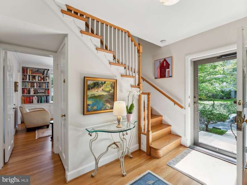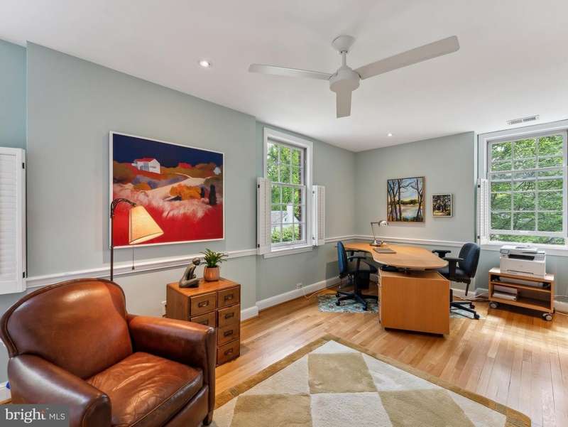 Nestled in the heart of picturesque Barnaby Woods, just steps from a tranquil Rock Creek Park tributary, this gorgeous 1939 Dutch Colonial perfectly blends timeless charm with modern comfort. Set on a quiet, tree-lined street, the home welcomes you with classic curb appeal and thoughtful updates throughout. Step inside the inviting entry foyer with coat closet and discover a spacious living room featuring a wood-burning fireplace and access to a serene rear screened porch, an ideal spot for morning coffee or evening relaxation. The dining area opens seamlessly to a chef's kitchen boasting custom walnut cabinetry, Brazilian quartzite countertops, a suite of stainless steel KitchenAid appliances, and a casual counter for two. A den or home office with powder room complete the main level. Upstairs, find three generous bedrooms and two full baths, including a renovated primary bath en suite with modern finishes. Pull-down attic stairs provide easy access to additional storage. The walk-out lower level offers a recreation room with a second fireplace, laundry area, storage/utilities, a fourth bedroom, and an additional powder room, perfect for guests or flexible living. Outside, the private rear yard is an oasis of calm with a deck, stone patio, lush lawn, and terraced stone walls. Adding to the home's appeal is the garage-turned-artist studio, featuring cathedral ceilings, abundant natural light, barn doors, and its own heating and cooling system; a dream space for creatives, remote work, or hobbies. A rare find in one of Northwest DC's most sought-after neighborhoods, 6670 32nd Street NW offers timeless architecture, versatile living, and a peaceful setting just moments from parks, shops, and city conveniences.