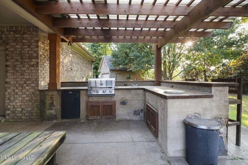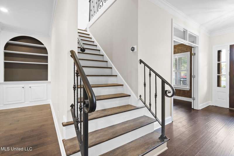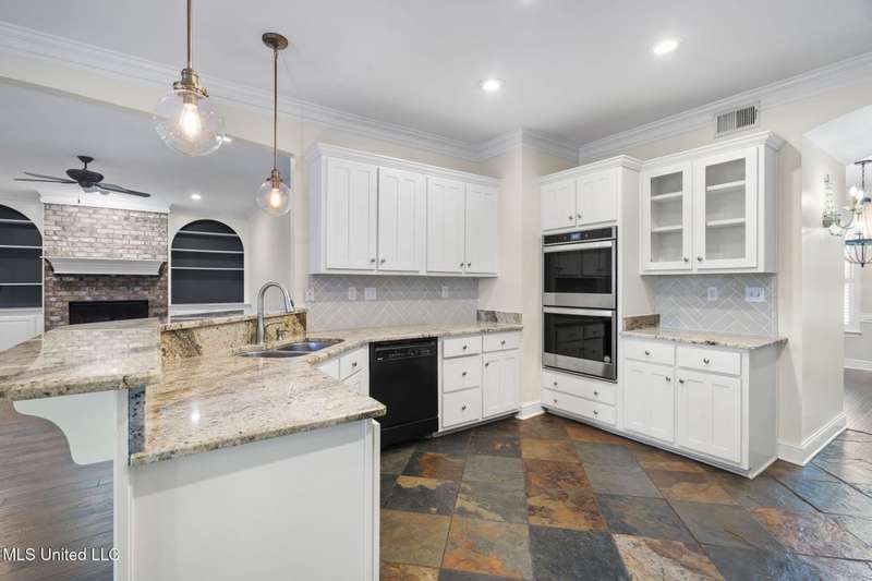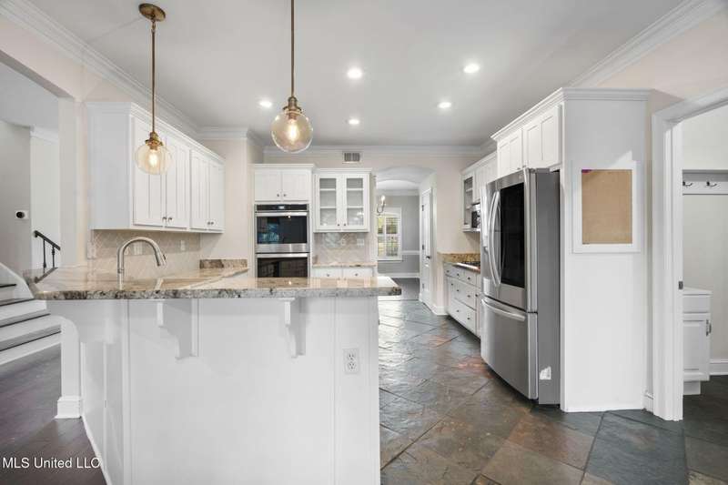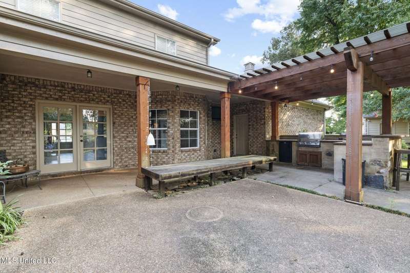 Beautifully updated home at the end of a quiet cul-de-sac! It's timeless curb appeal immediately draws you in with its large front porch, NEW ROOF, professional landscaping with irrigation system, and stacked-stone flower beds that frame the front of the home. Step inside and discover a floor plan that blends elegance with function. A private office with French doors makes a warm first impression, complete with a transom window, large built-in bookshelf, and upgraded light fixtures. A formal dining room with chair rail and trim work is ready for holidays or dinner parties, while a guest bath with custom wallpaper and a handy hall closet add thoughtful touches. The living room is the true heart of the home, anchored by a floor-to-ceiling brick fireplace flanked by custom bookshelves with graceful arch details. The open layout connects seamlessly to the kitchen and breakfast area, where you'll find granite countertops, custom white cabinets, new stainless steel double ovens, built-in gas cooktop, microwave, dishwasher, and a beautiful tile backsplash. A pantry and breakfast bar make this space as practical as it is inviting, The large laundry has a sink. Out back, entertaining is a breeze with a fully equipped outdoor kitchen featuring a built-in grill, bar, refrigerator, and cooler drawer. The fenced backyard, shaded with mature trees, offers privacy and plenty of room to relax. There is also a door to the garage from the patio. The primary suite also has a private entrance to the backyard, and is a retreat of its own, with hardwood floors and crown molding. The en-suite bath includes dual vanities (one with a makeup nook), a jetted tub, separate tiled shower, and dual walk-in closets, all highlighted by 10-foot ceilings with recessed lighting. Upstairs, a spacious living area offers flexibility for a playroom, media room, or hangout space. Three bedrooms share a Jack-and-Jill bath with two vanities, and a large storage closet with French doors adds function. Throughout the home, you'll find fresh paint, fresh carpet, wrought-iron stair railing, hardwood floors, crown molding, and abundant natural light from the many windows dressed in plantation shutters. Practical features include an attached 2-car garage plus a detached garage with electric--ideal for storage, projects, or a workshop. Recent updates like the new AC unit and new stove provide peace of mind. This home isn't just beautiful on its own--it's part of a sought-after neighborhood with sidewalks and several lakes. Known as one of the best places for trick-or-treating and Christmas lights, the community is also zoned for the award-winning Hernando School District. With 4 bedrooms, 2.5 baths, and 3,134 square feet, this home combines timeless design, modern updates, and community charm--all in one of Hernando's most desirable locations.