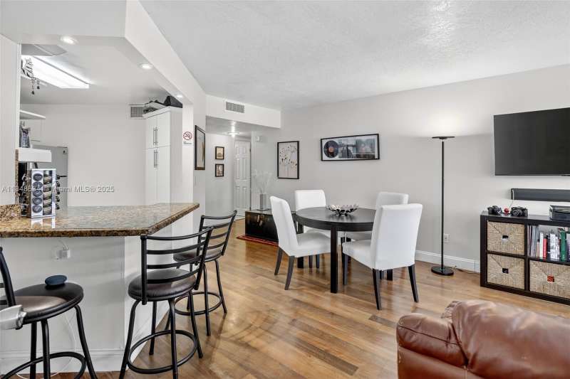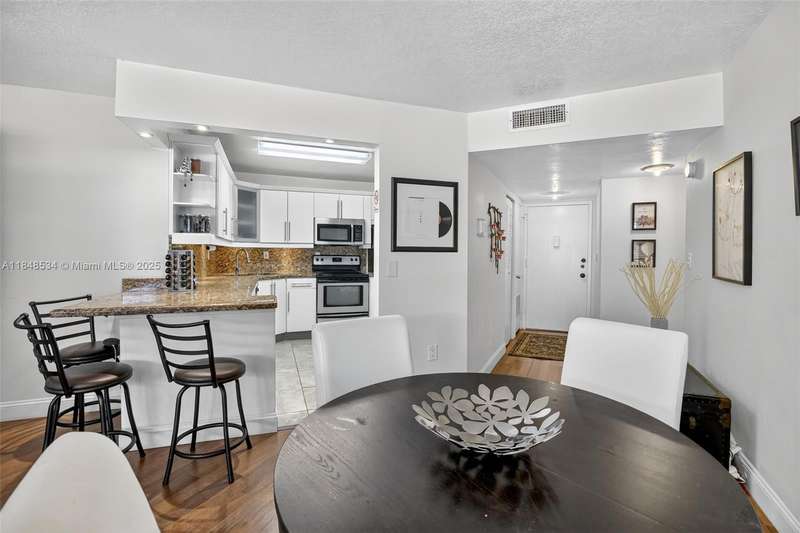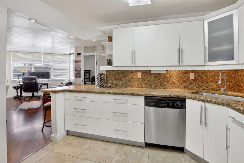 Enjoy comfortable living in this well-maintained 1-bedroom, 1 ½-bath condo featuring a versatile den—perfect for a home office or guest space. The updated kitchen boasts granite countertops and ample cabinetry, while the open living and dining area flows seamlessly to a private balcony. Laminated floors throughout add a modern touch, and the unit offers generous closet spaces for extra storage. Unit has a storage space.Located in a secure, guard-gated community in the heart of Aventura, just minutes from Aventura Mall, fine dining, shops, supermarkets, and pristine beaches. Community amenities include an attended lobby, 2 pools, tennis courts, fitness center, library and marina.This is an excellent opportunity to live in a prime location close to everything Aventura has to offer.