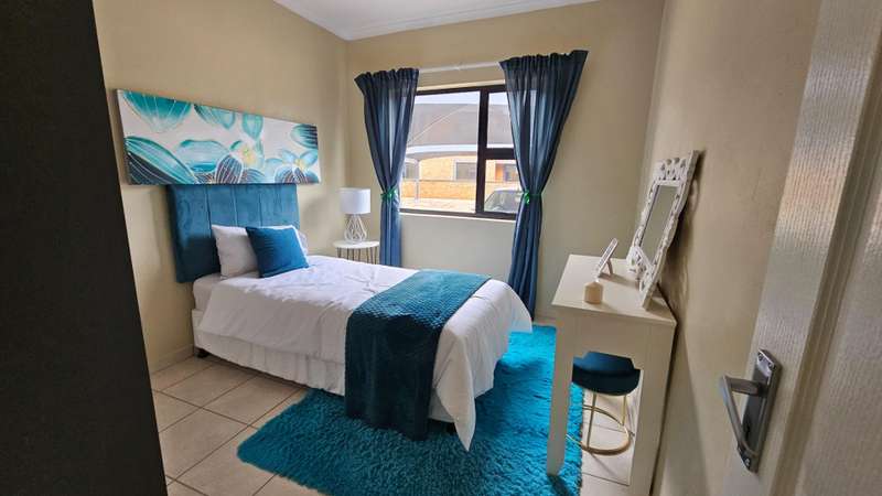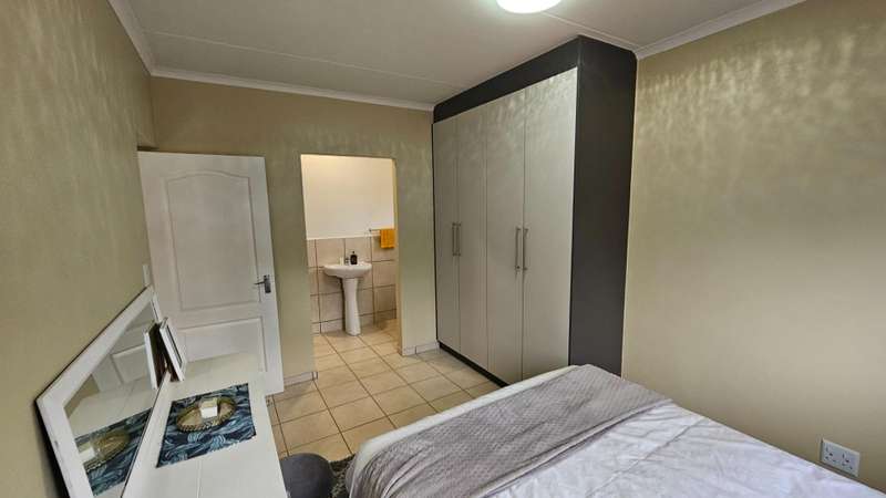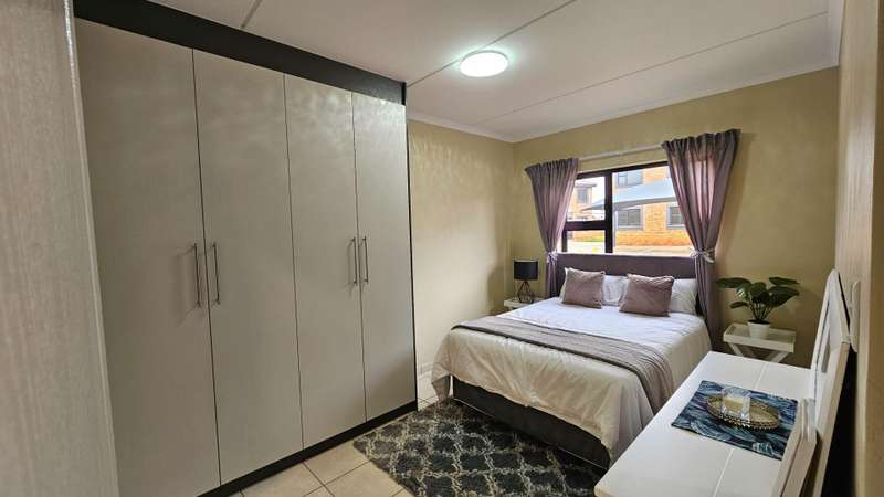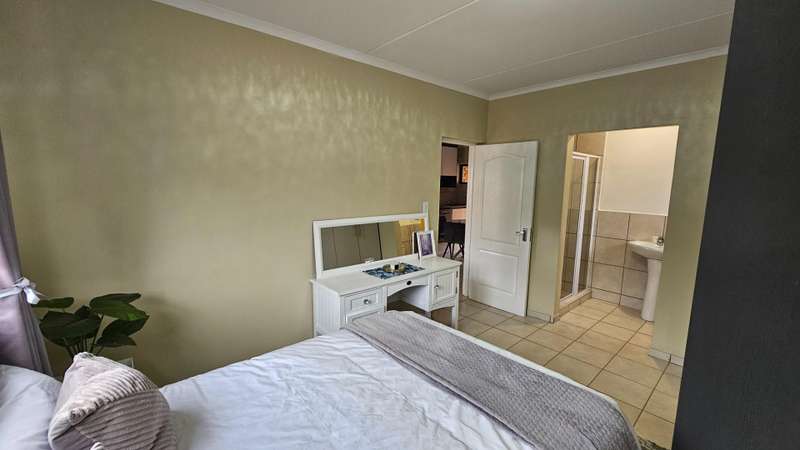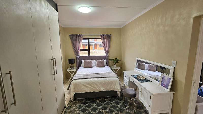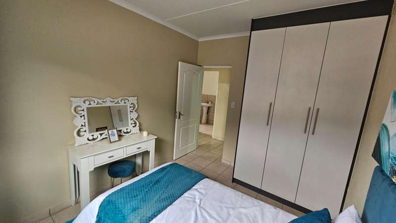 Welcome to this inviting sanctuary nestled within a secure and vibrant community. This charming property offers the perfect blend of comfort, convenience, and security, making it an ideal place to call home. Step inside to discover three generously sized bedrooms and two modern bathrooms, ensuring ample space and privacy for you and your loved ones. Two covered parking spaces provide shelter for your vehicles, while 24-hour security, an access gate, and a security post offer peace of mind around the clock. The home is adorned with built-in cupboards throughout, providing plenty of storage space for your belongings. The well-appointed kitchen is perfect for culinary endeavors, while the open-plan lounge creates a cozy space for relaxation and entertainment. Outside, the property features a fenced garden area, offering a private oasis for outdoor activities and relaxation. Enjoy delightful al fresco dining experiences with the built-in braai on the patio, perfect for entertaining friends and family. Additional features include an intercom system for seamless communication, allowing you to easily welcome guests. Pets are welcome to roam freely within the confines of the property, adding to the warmth and vibrancy of this inviting home. Don't miss out on the opportunity to make this charming property your own, where comfort, security, and tranquility await.