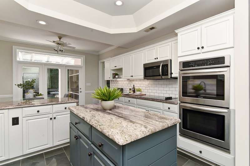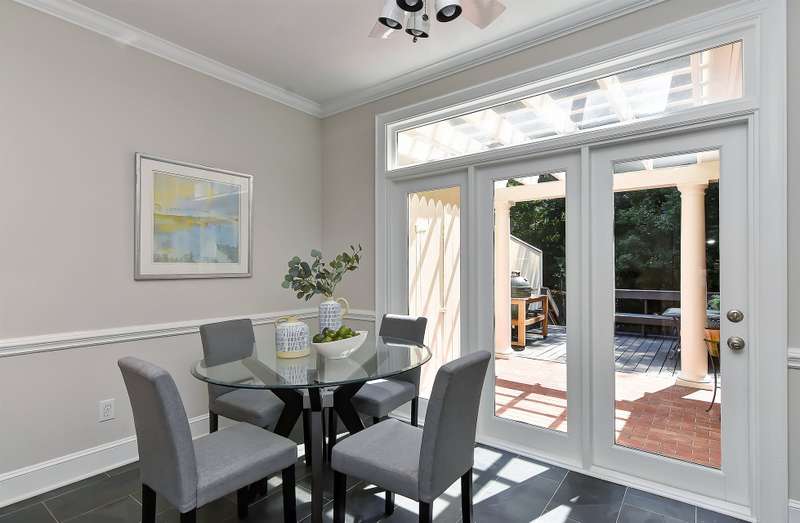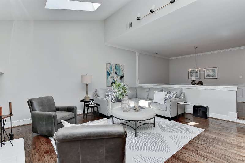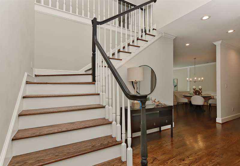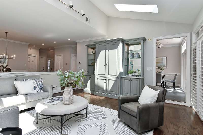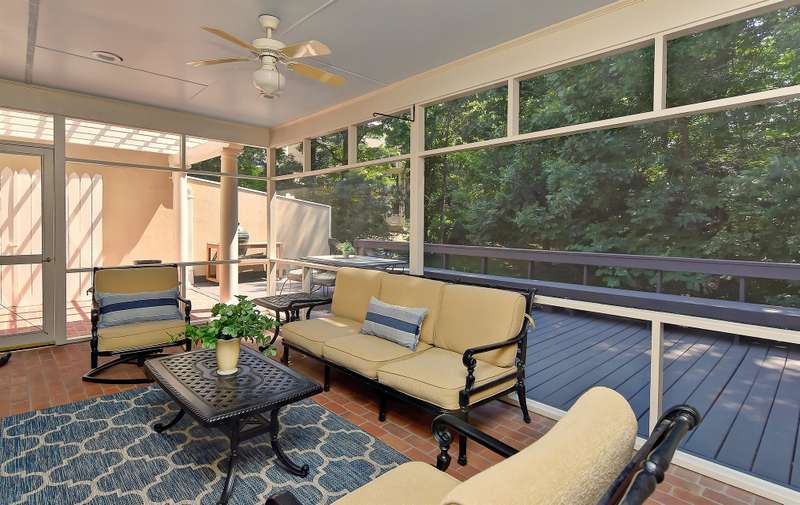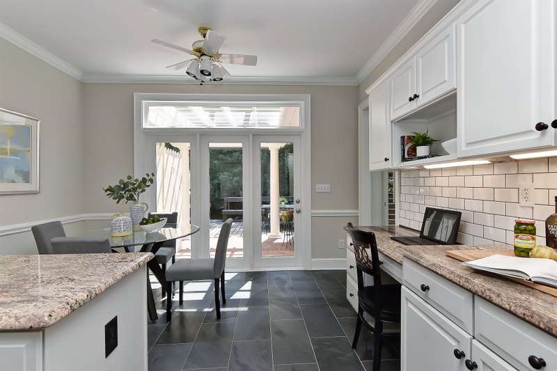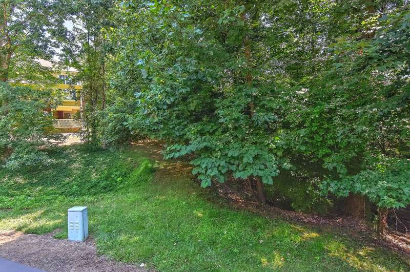 Move-in ready Southpark area townhome nestled in a private, quiet setting with mature landscaping and neutral paint throughout! Gated courtyard entrance welcomes you into a 2-story foyer open to large dining room and great room with vaulted ceiling, built-in cabinets, and gas log fireplace. Updated kitchen features granite countertops, subway tile backsplash, tile floor, stainless steel double ovens and breakfast room. Site finished hardwood floors throughout the main level, stairs, upstairs landing & primary closet. Large primary suite w/ vaulted ceiling, plantation shutters, updated bathroom and large walk-in closet. 2 additional large bedrooms and 2nd full bath complete the upper level. Screen porch and large, well-maintained deck overlook wooded and private common area. 2 car garage. Roof replaced in June 2025. HOA includes exterior building & landscaping maintenance as well as water and sewer.